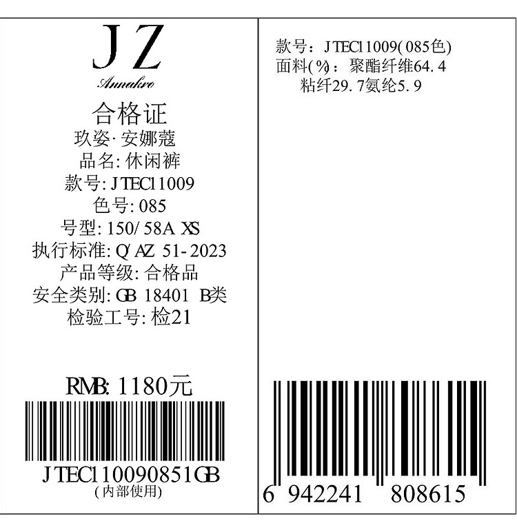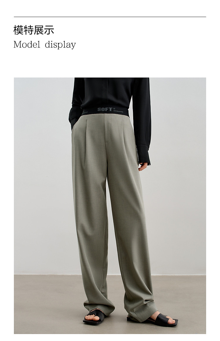 商品名称:玖姿旗下安娜蔻系列通勤绣花压褶阔腿裤休闲裤春季 876748
