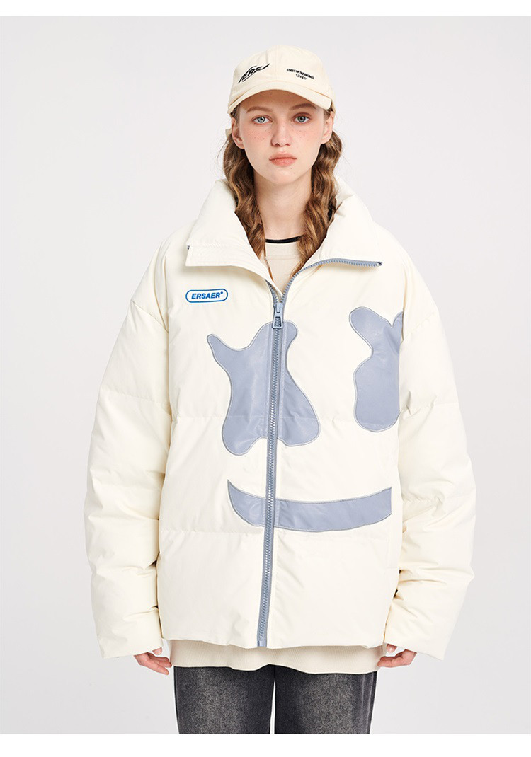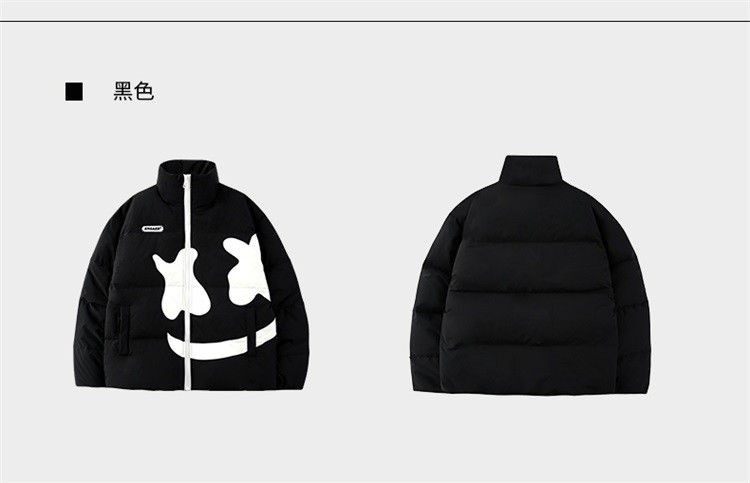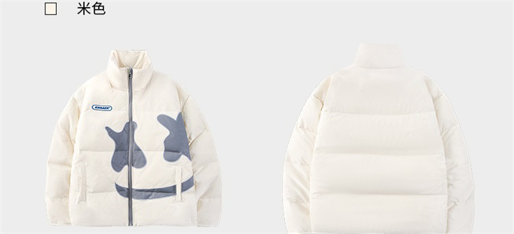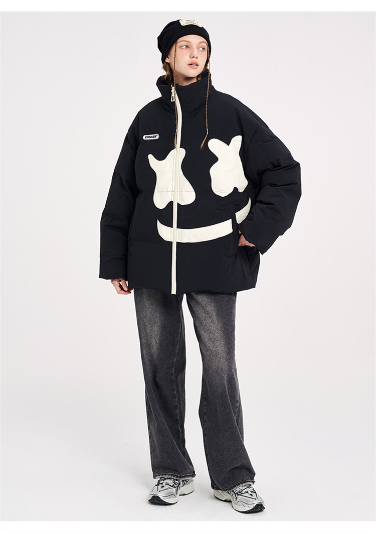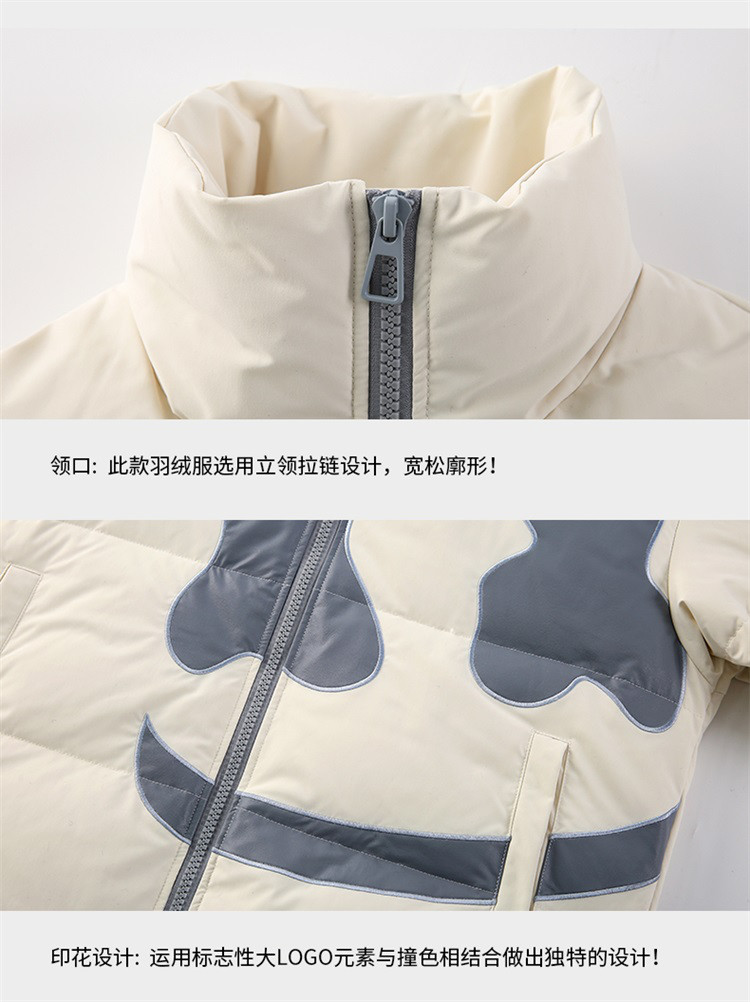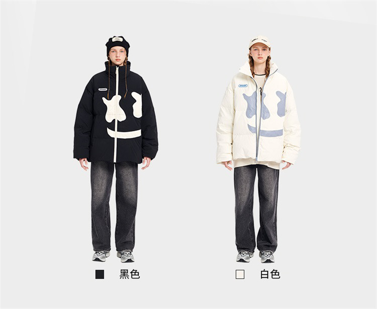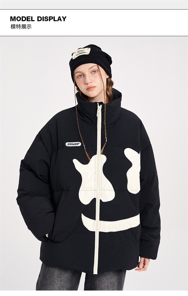 商品名称:大笑脸立领羽绒服男女同款冬季潮牌短款情侣外套保暖鸭绒面包服 762583