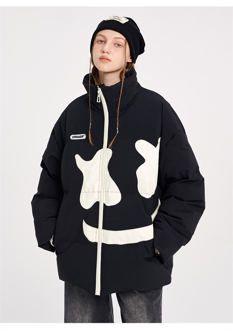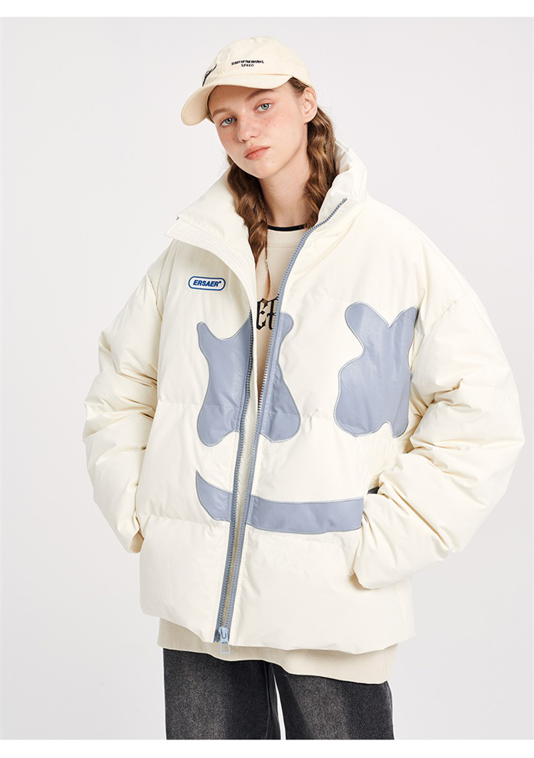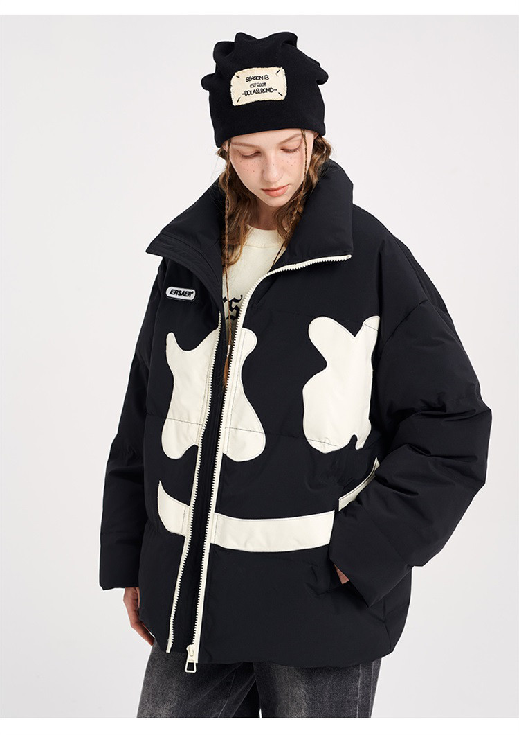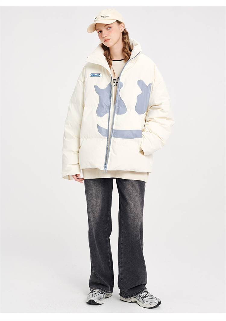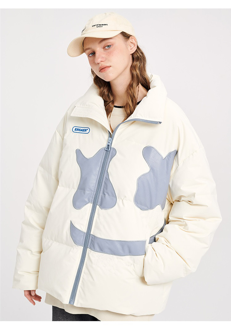 商品名称:大笑脸立领羽绒服男女同款冬季潮牌短款情侣外套保暖鸭绒面包服 762583