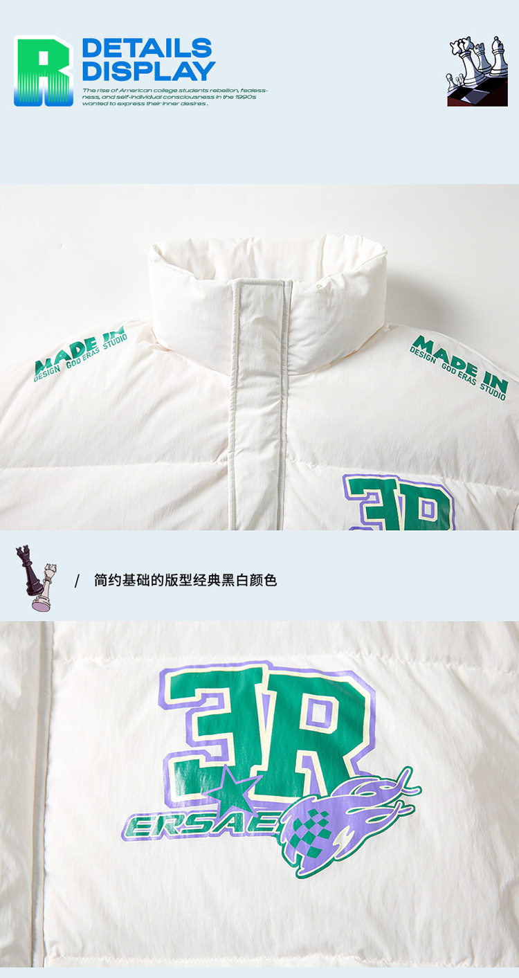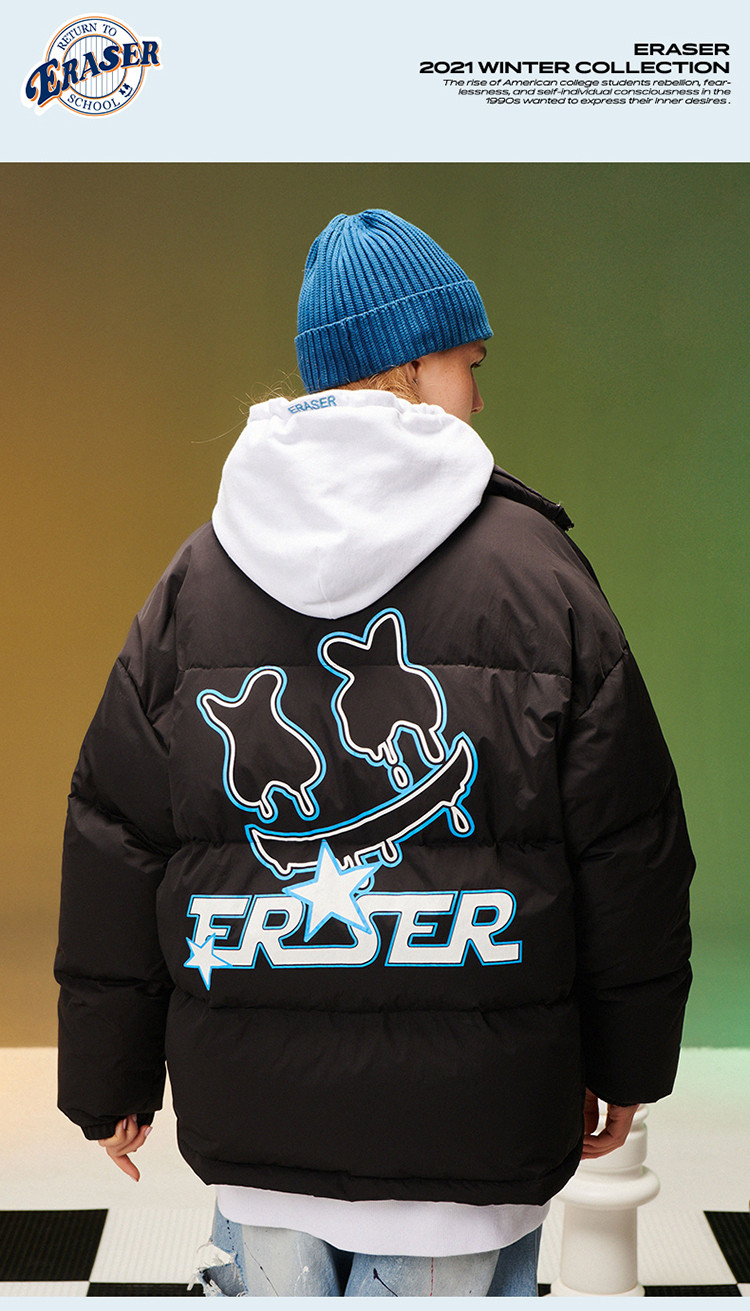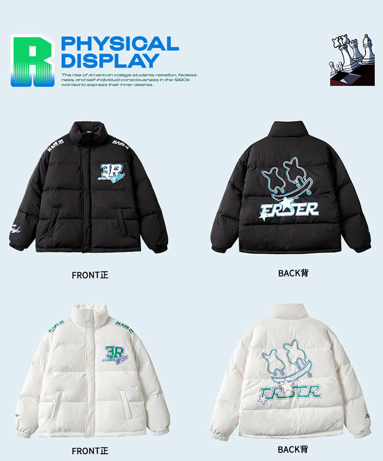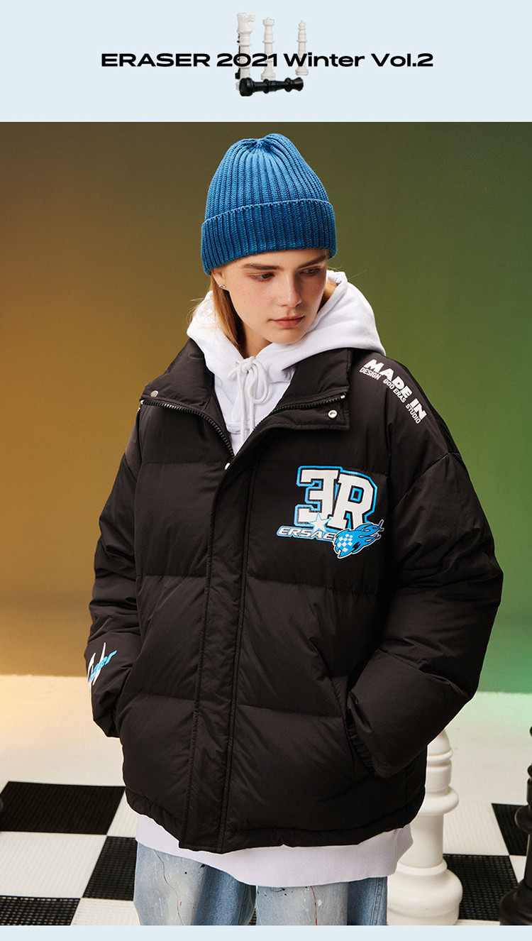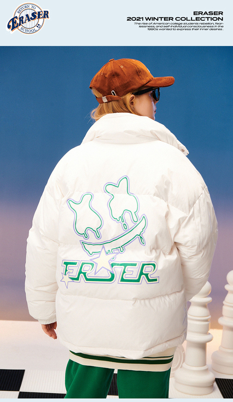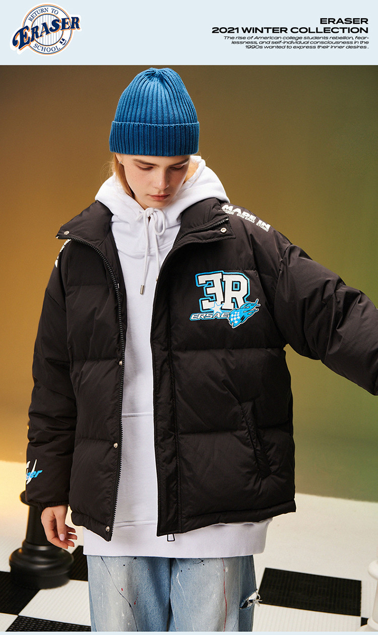 商品名称:字母印花羽绒服男女同款保暖宽松街头保暖情侣90鸭绒外套 245207