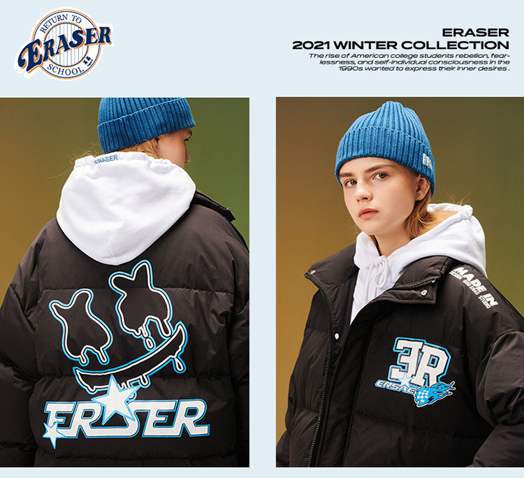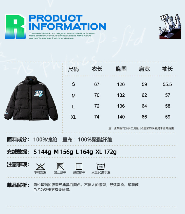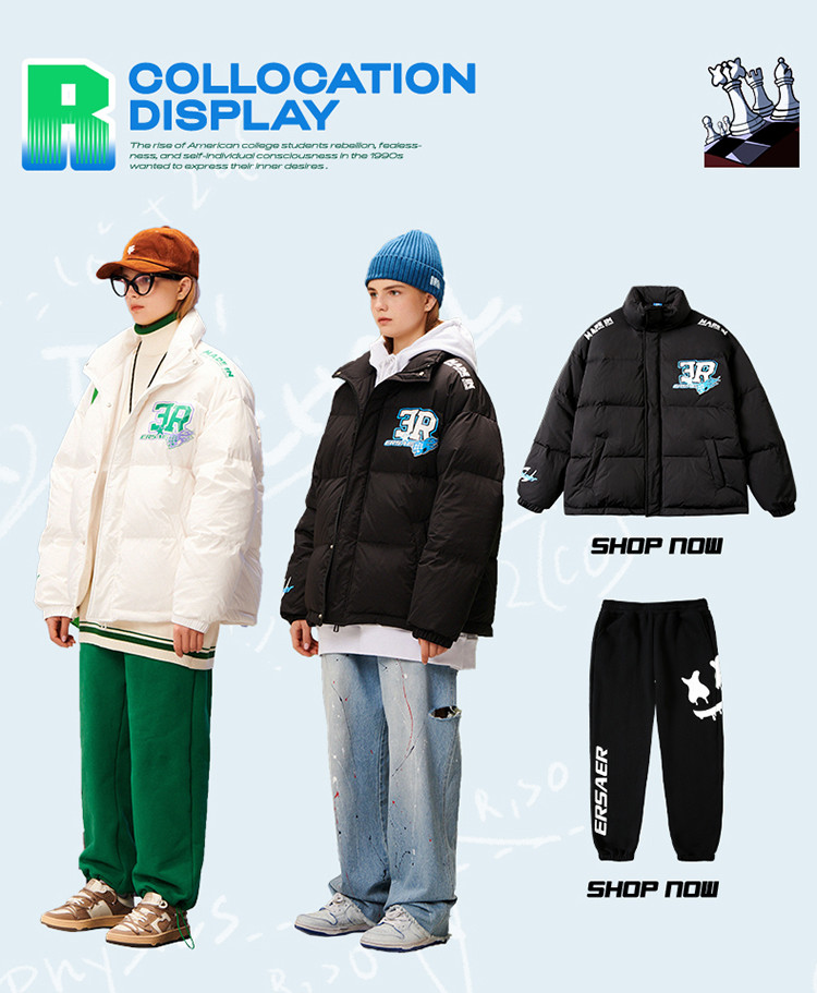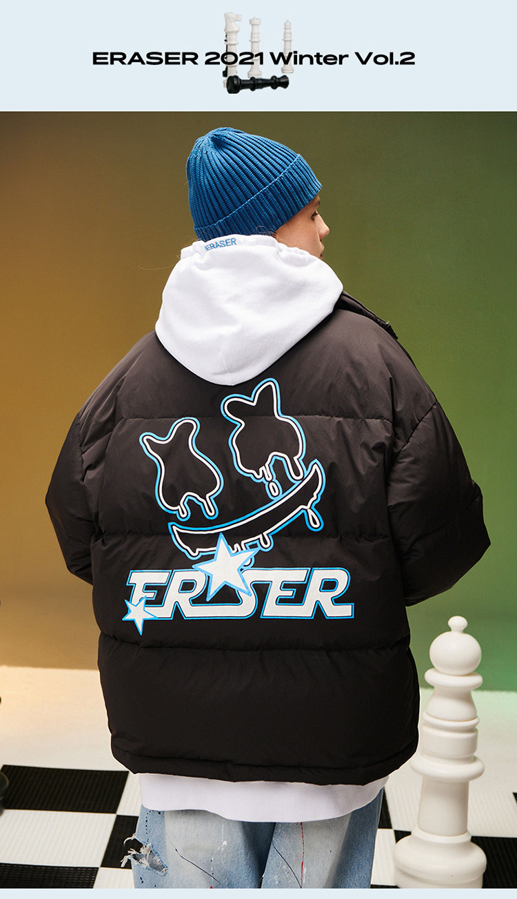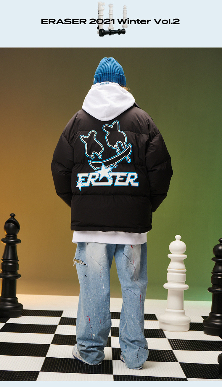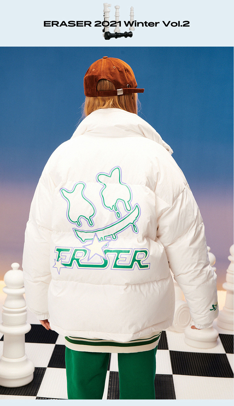 商品名称:字母印花羽绒服男女同款保暖宽松街头保暖情侣90鸭绒外套 245207