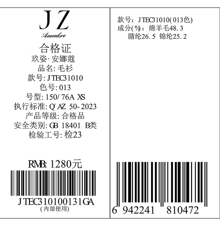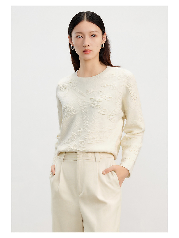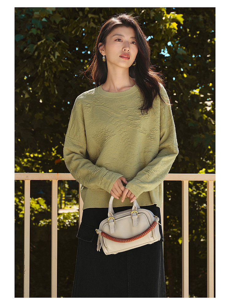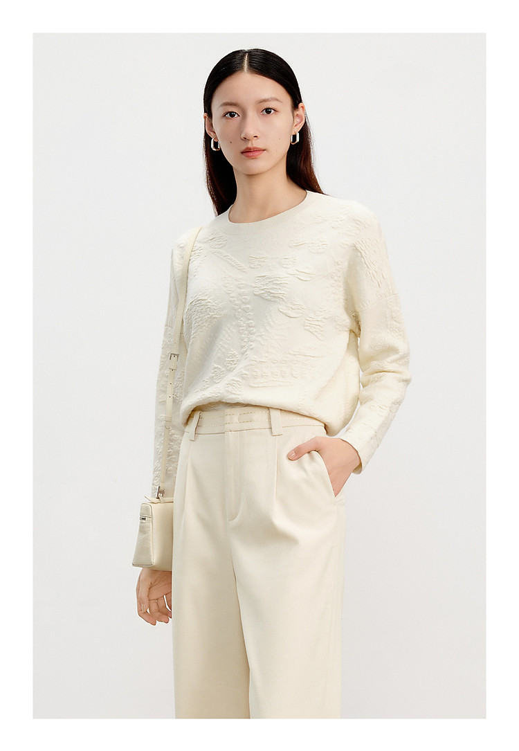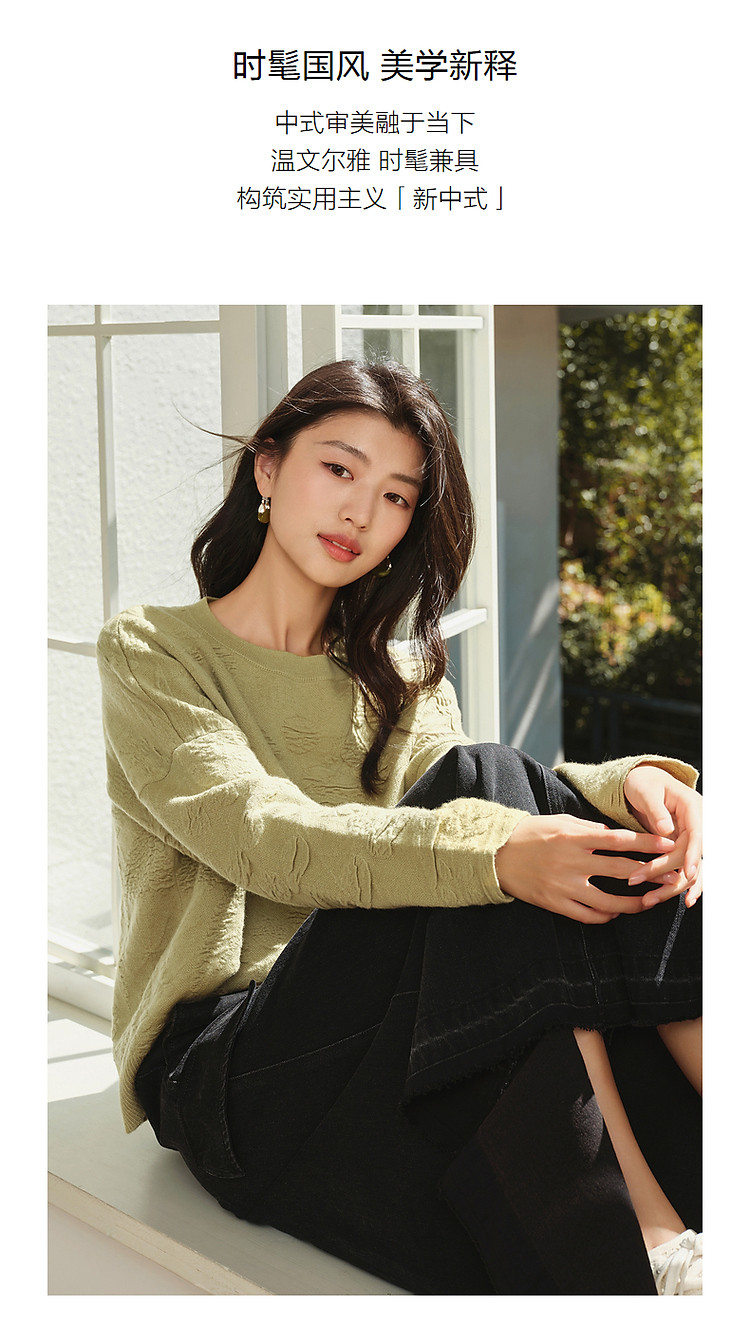 商品名称:【东方意蕴】玖姿旗下安娜蔻系列国风提花简约宽松毛衫女春季 317708