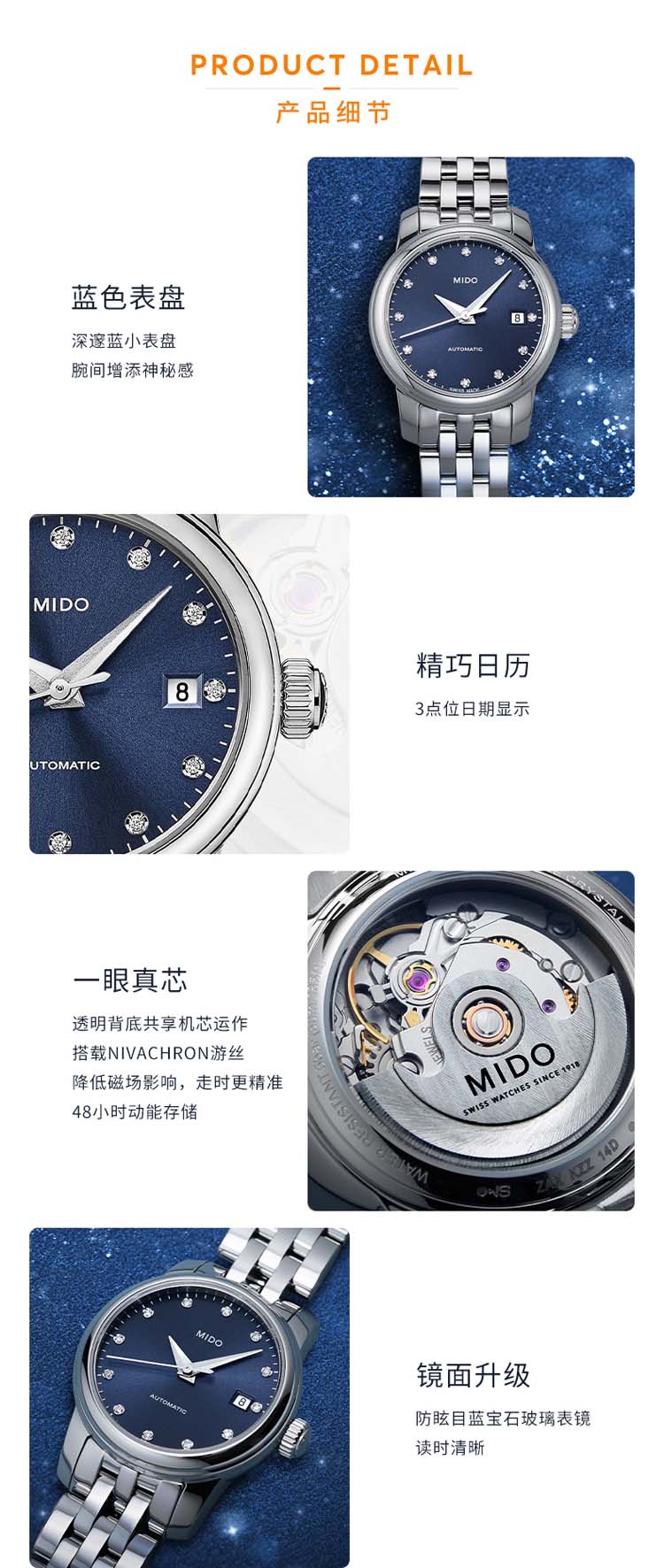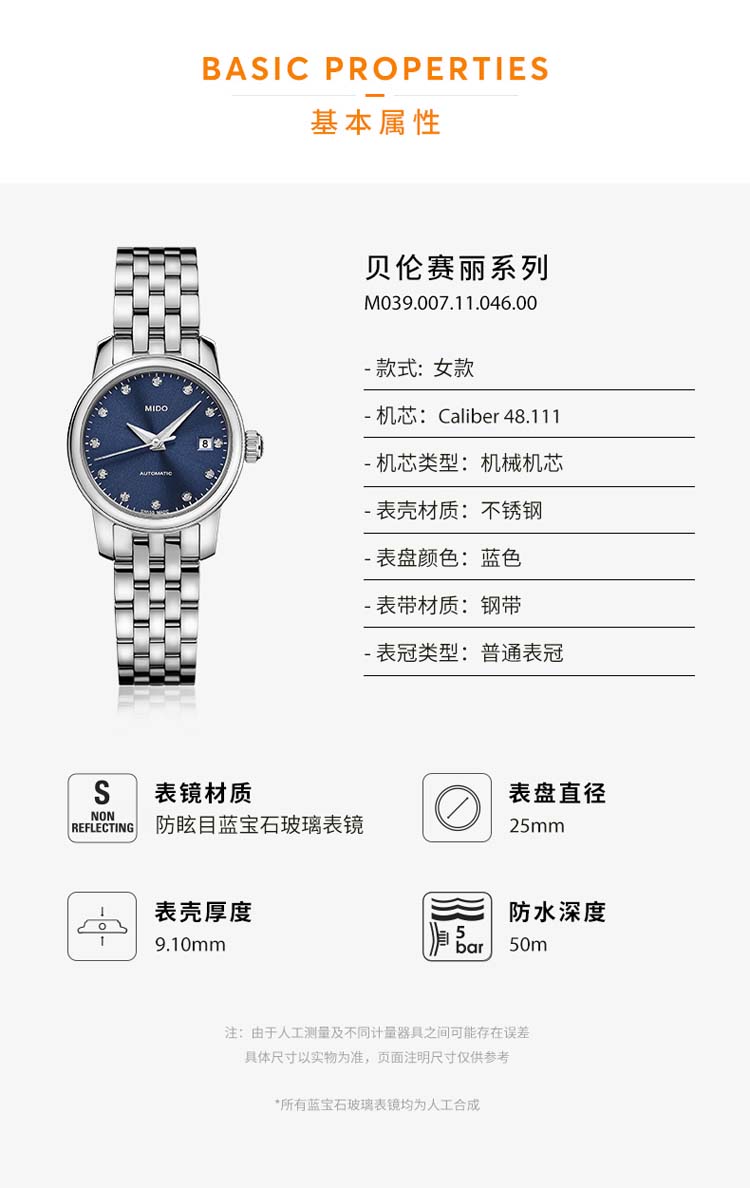 商品名称:Mido美度 贝伦赛丽系列新款小表盘机械女士腕表