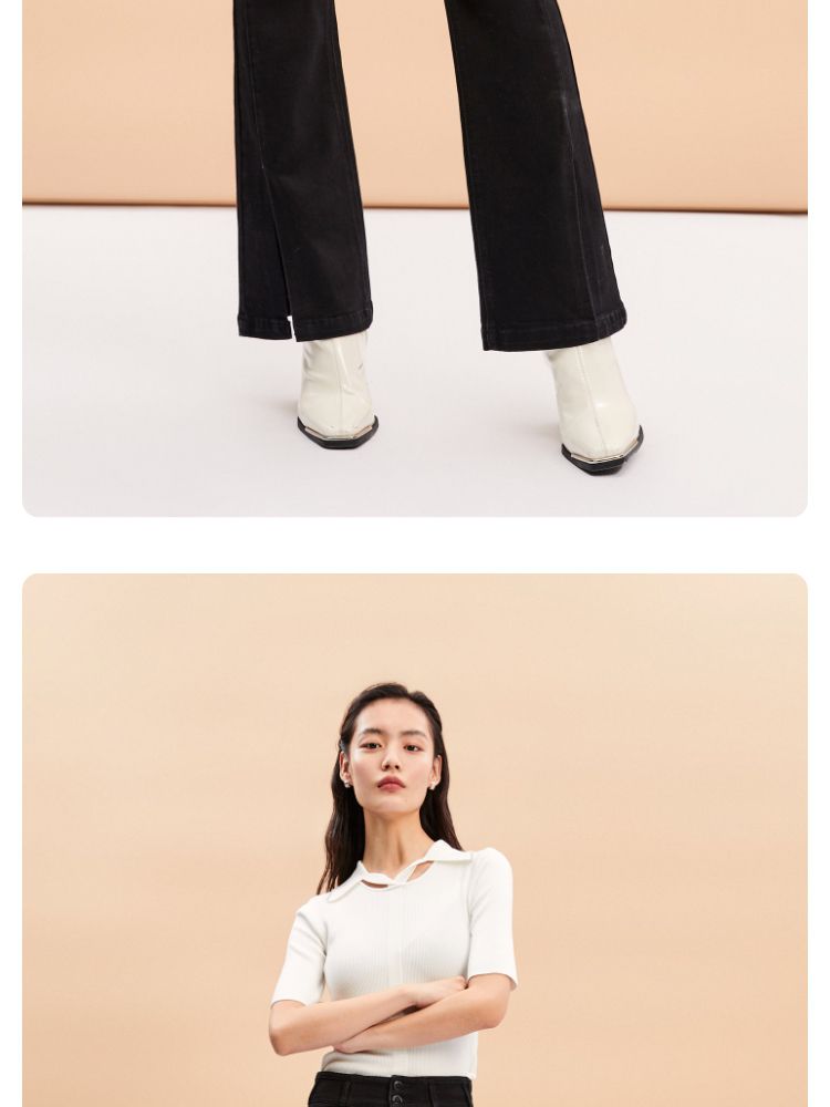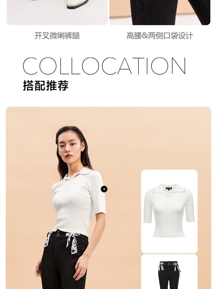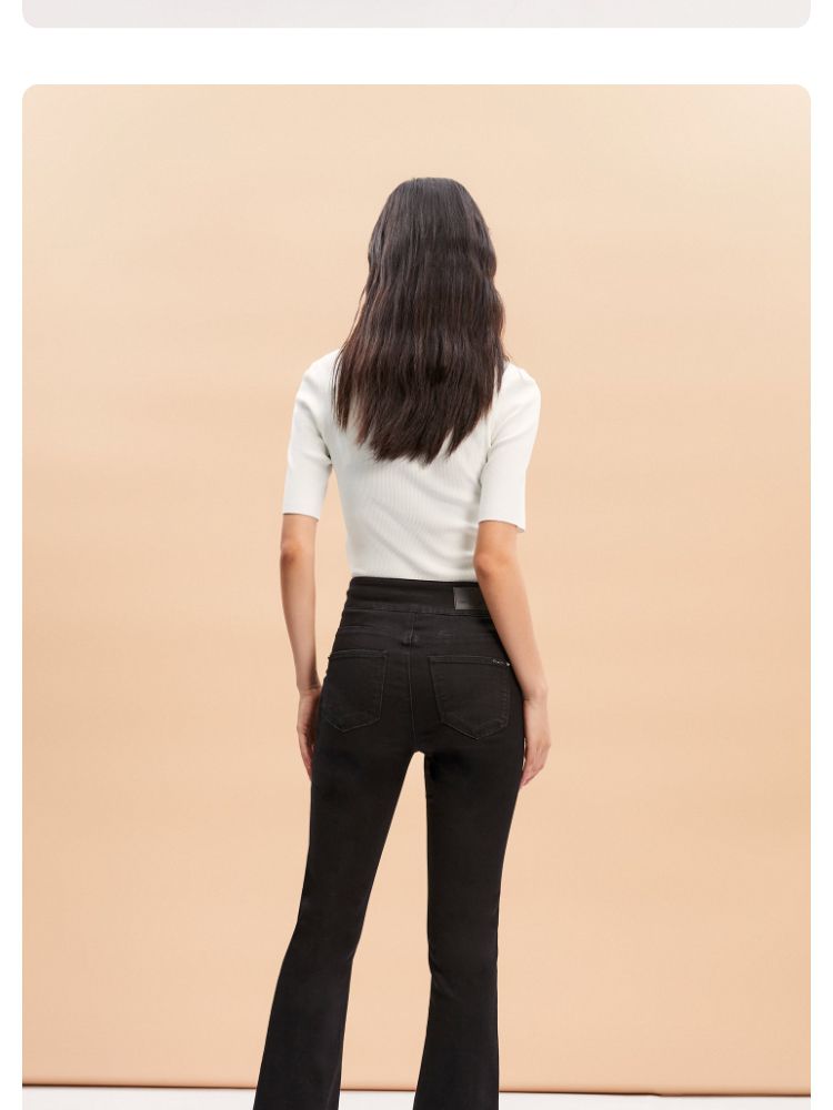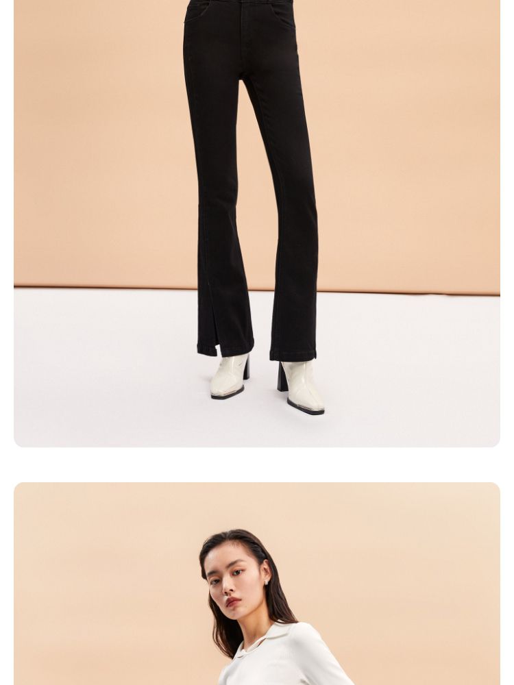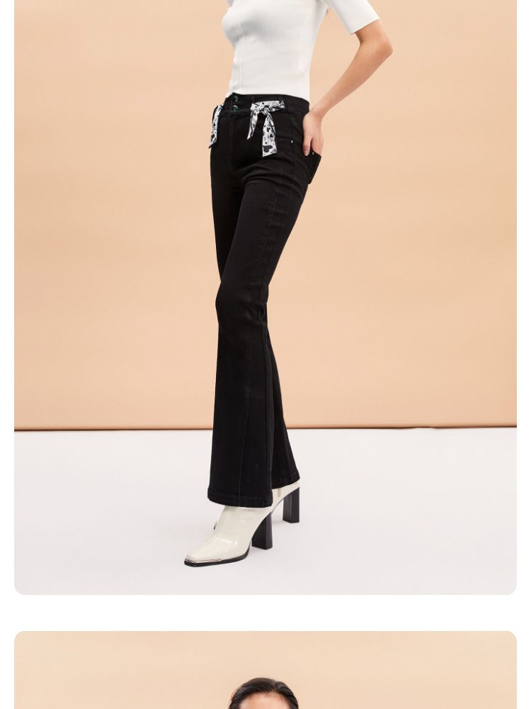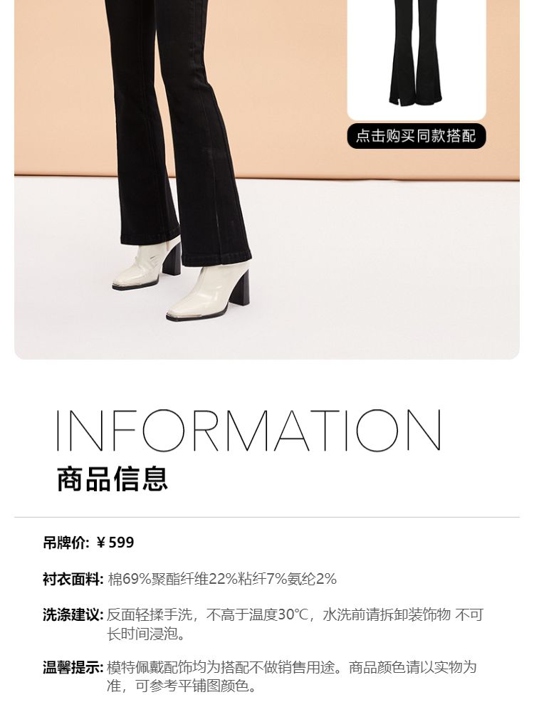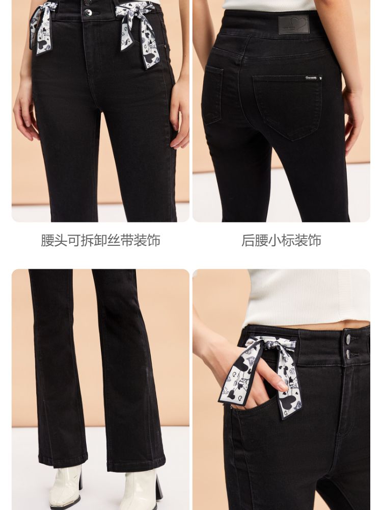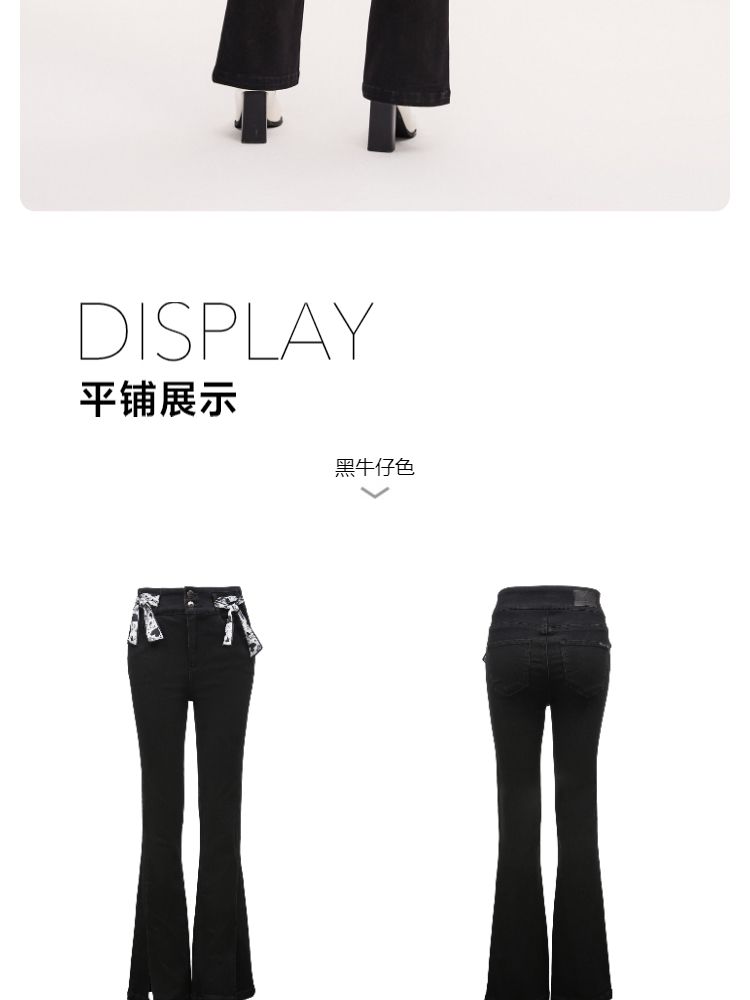商品名称:【后腰小标装饰】春秋牛仔裤中厚款开叉高腰丝带百搭牛仔裤女 127185