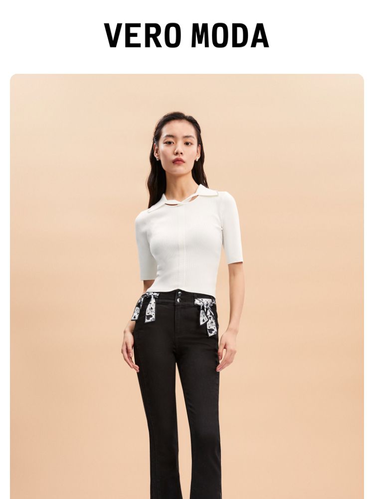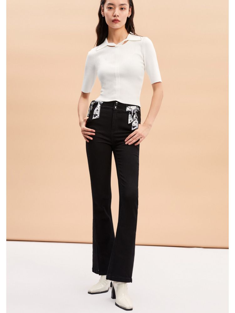 【后腰小标装饰】春秋牛仔裤中厚款开叉高腰丝带百搭牛仔裤女 127185