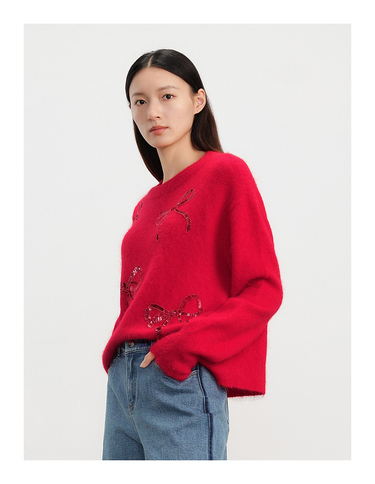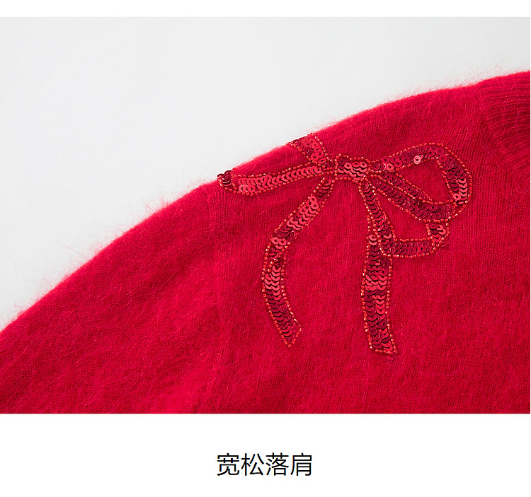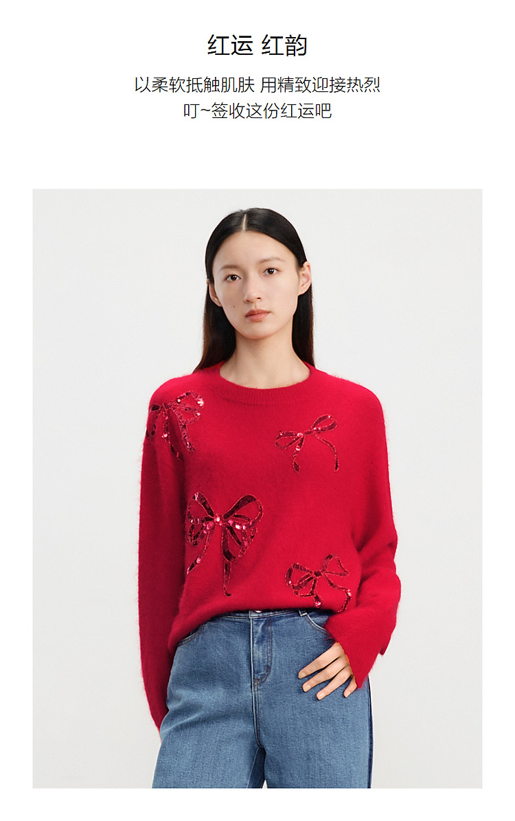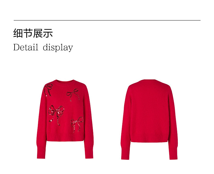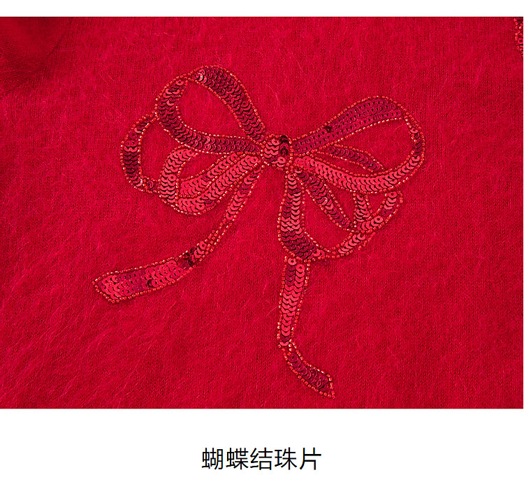 商品名称:【红运红韵】玖姿旗下安娜蔻系列亮片装饰蝴蝶结毛衫女春季 360204
