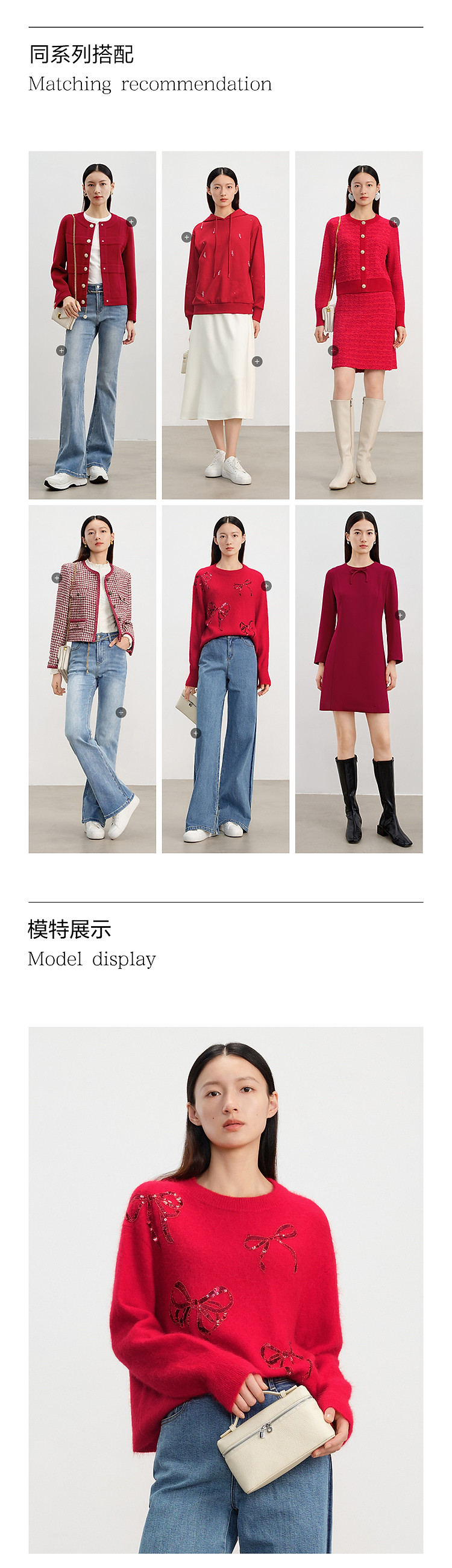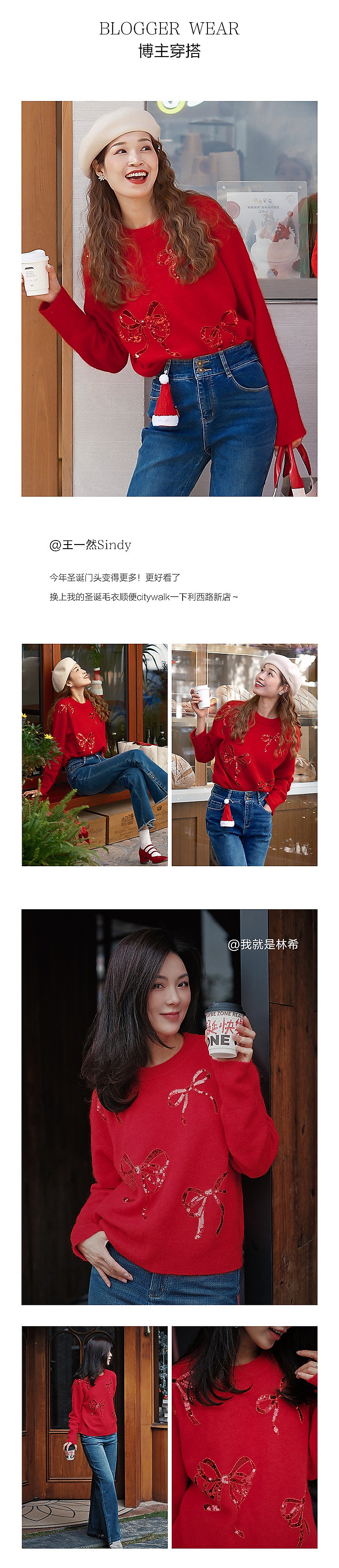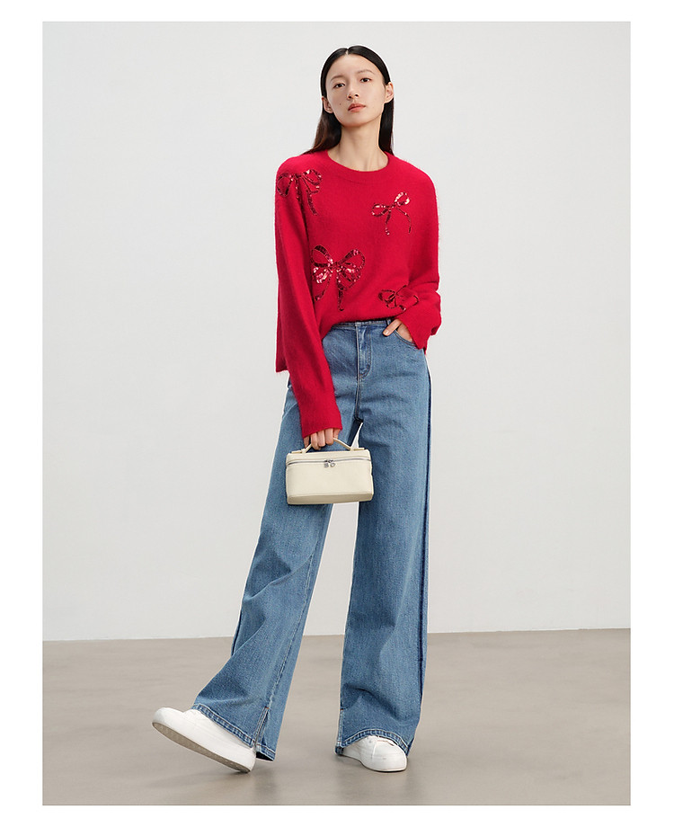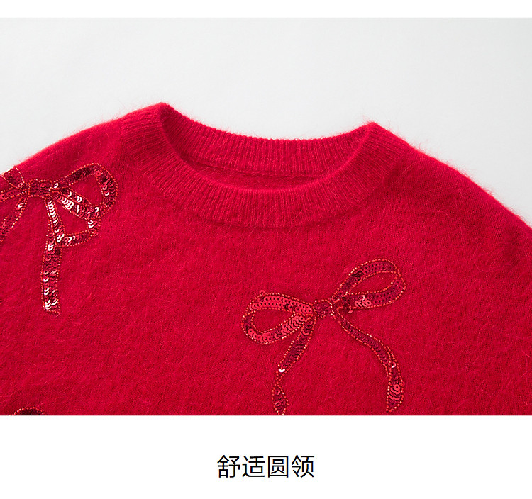 商品名称:【红运红韵】玖姿旗下安娜蔻系列亮片装饰蝴蝶结毛衫女春季 360204