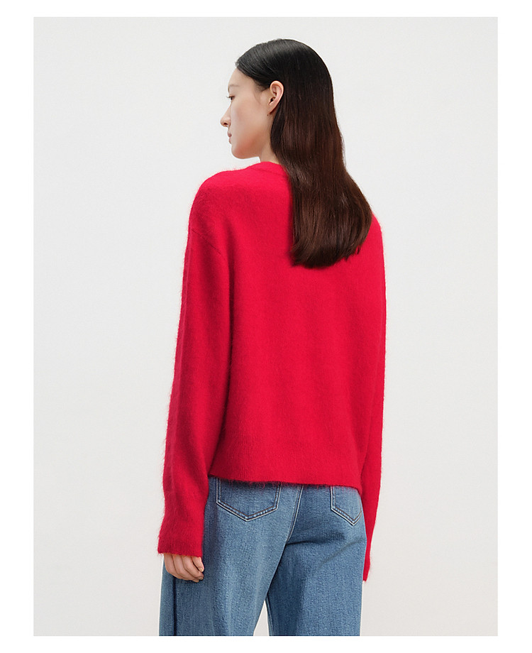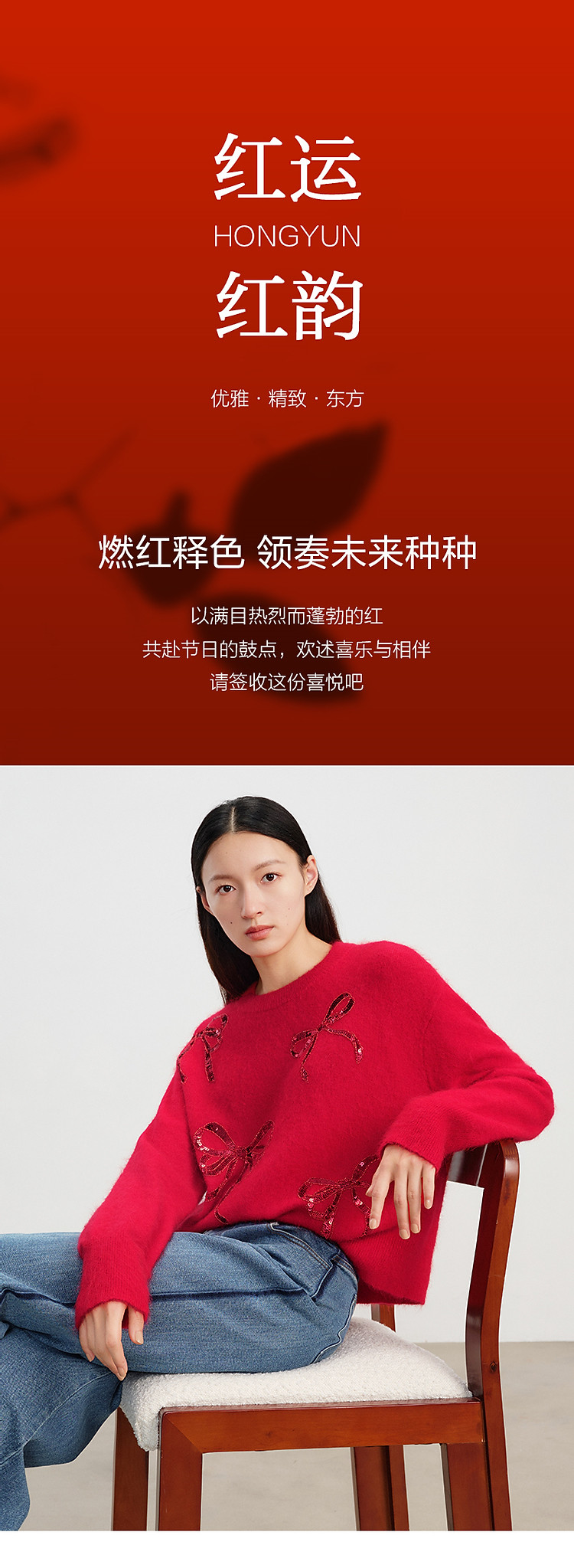 【红运红韵】玖姿旗下安娜蔻系列亮片装饰蝴蝶结毛衫女春季 360204