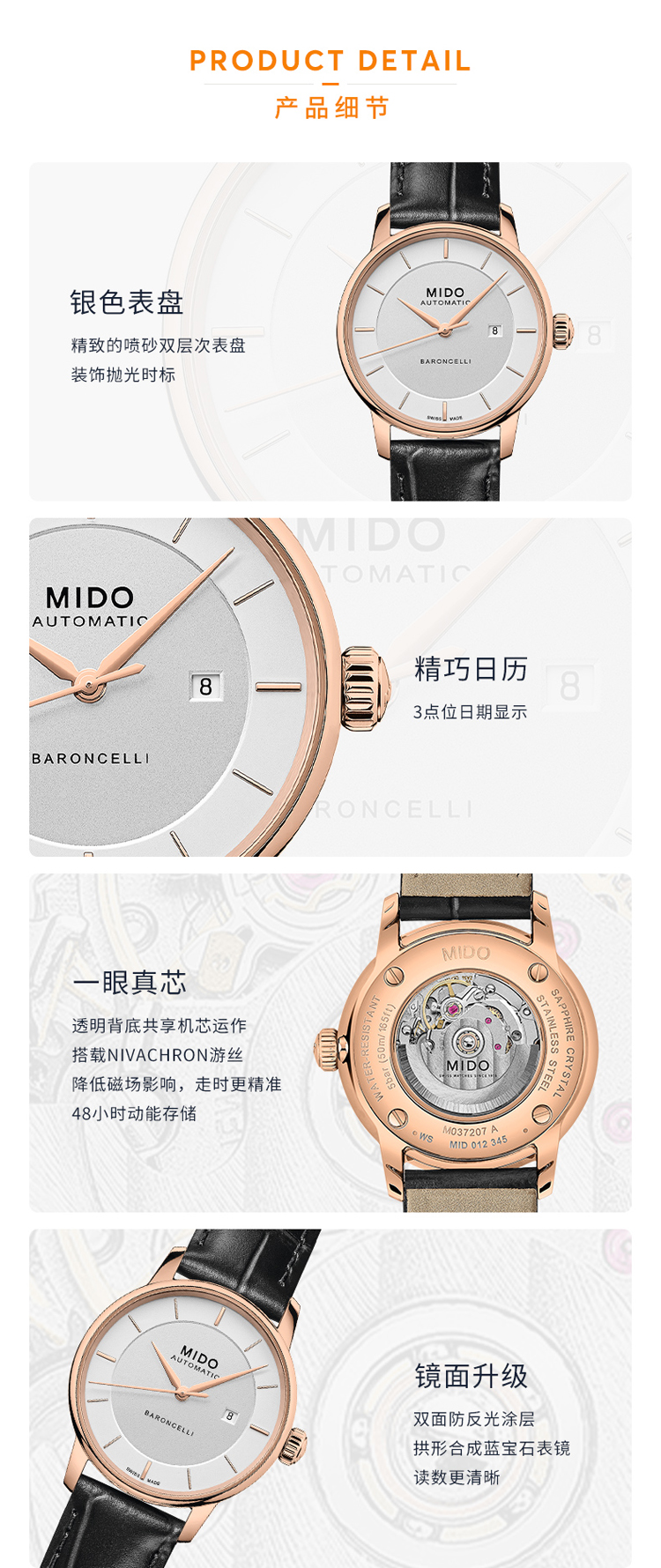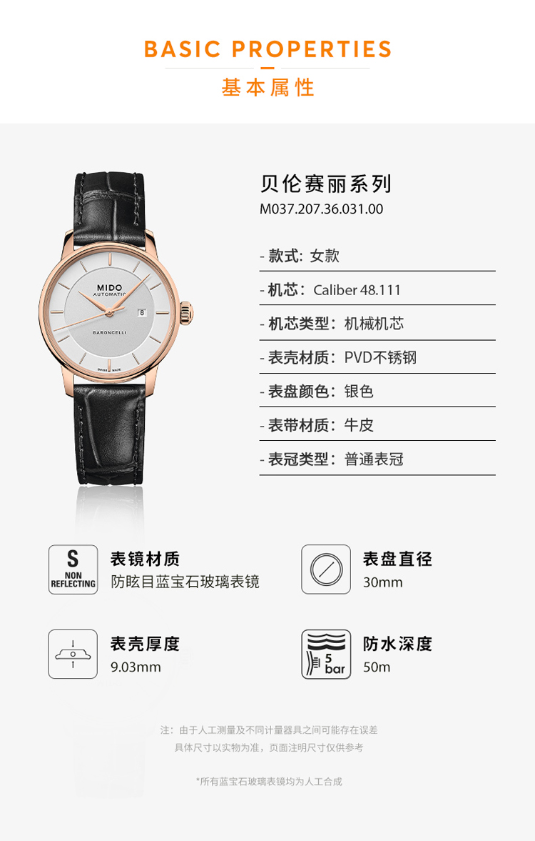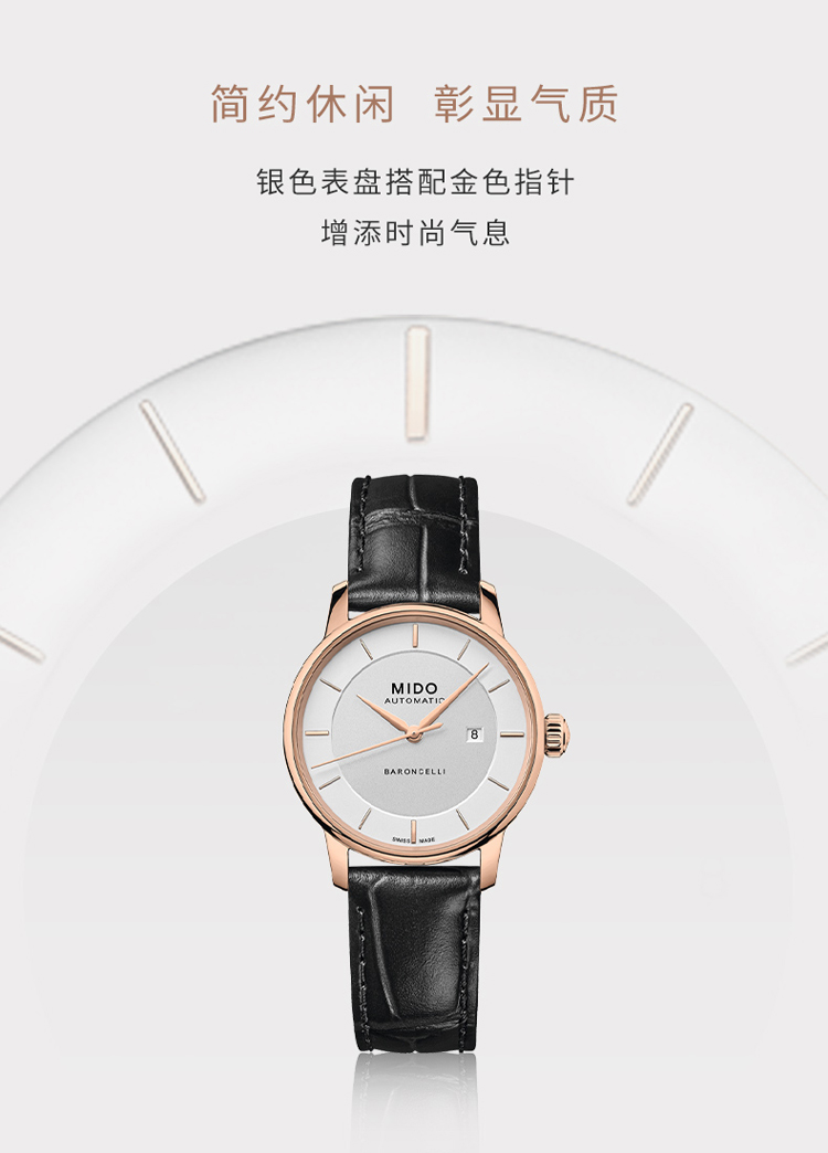 商品名称:Mido美度 贝伦赛丽系列新款休闲机械女士腕表(不支持无理由退换货)