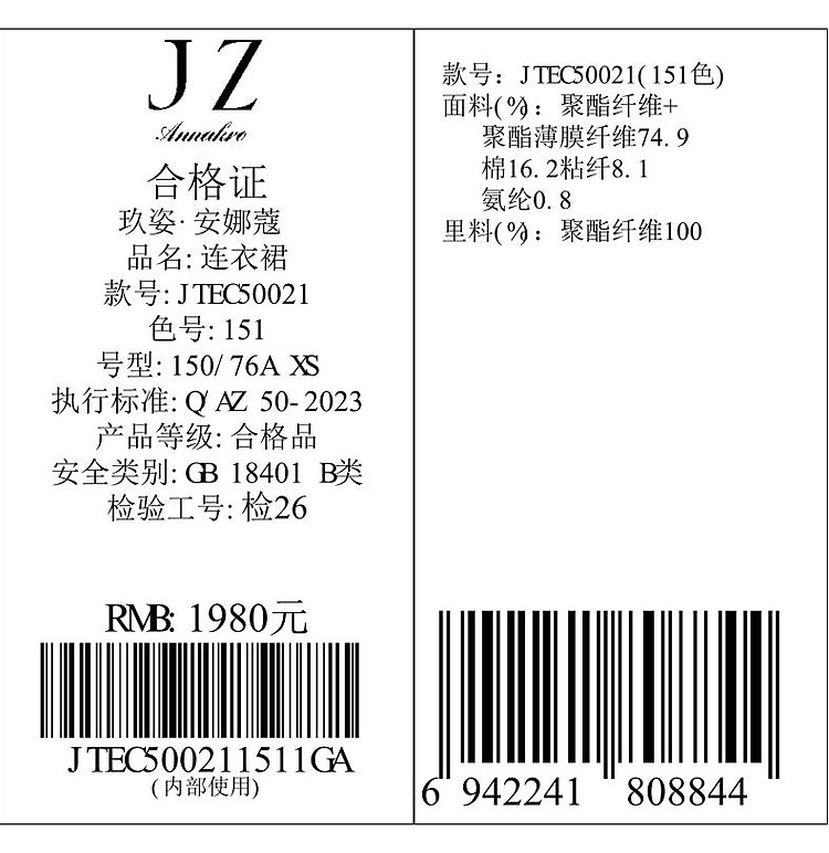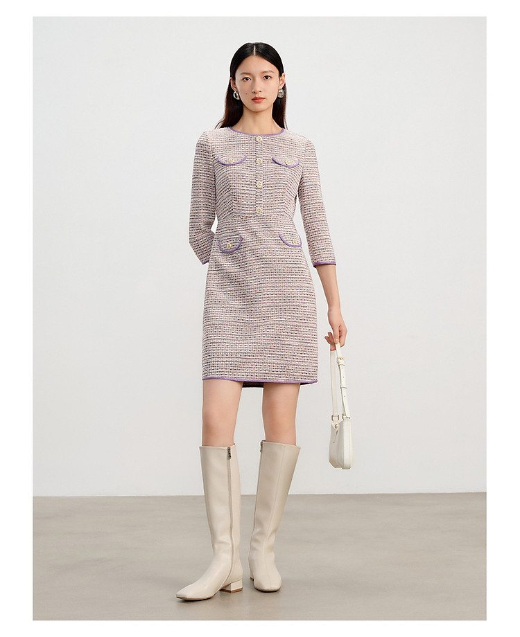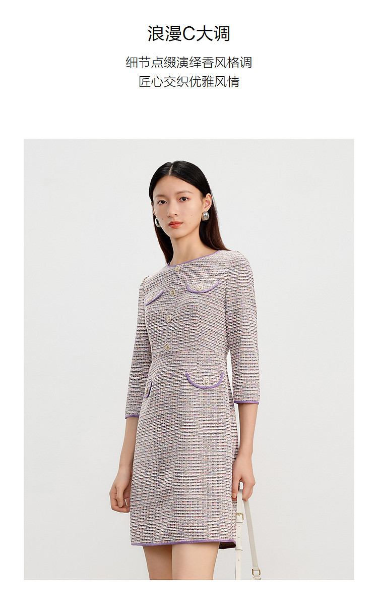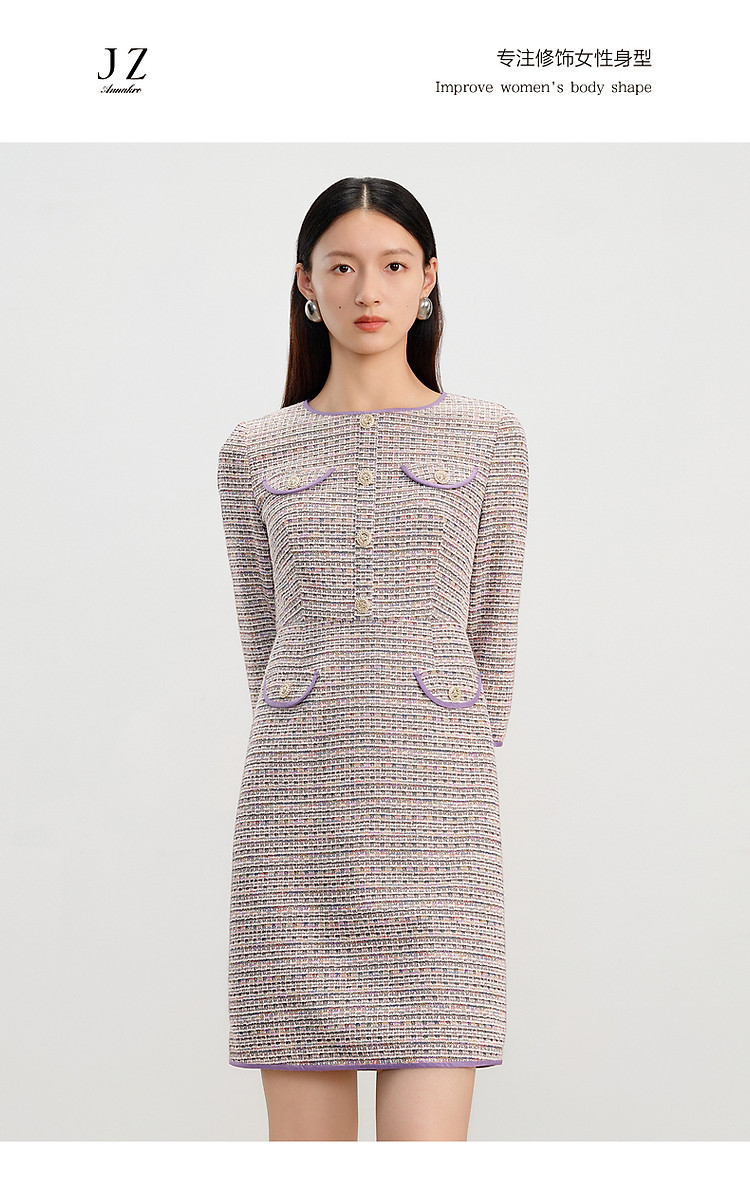商品名称:玖姿旗下安娜蔻系列小香风气质优雅H型连衣裙女春季 818380