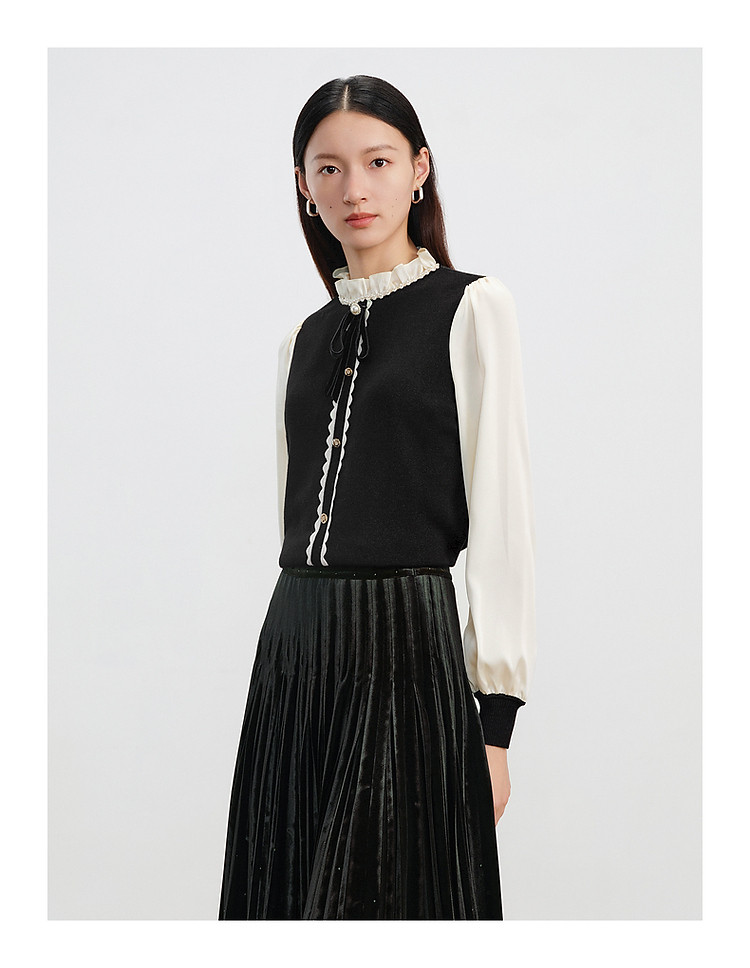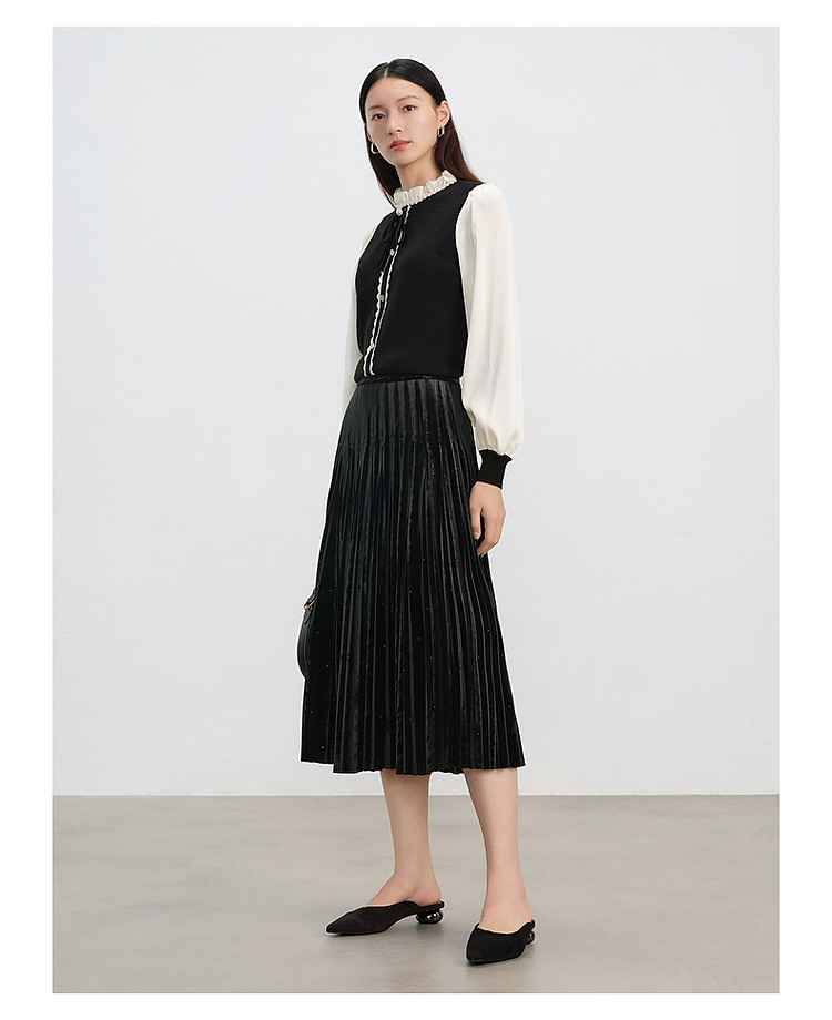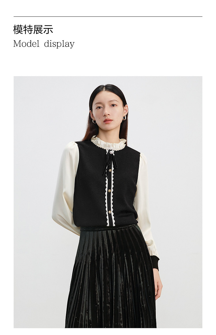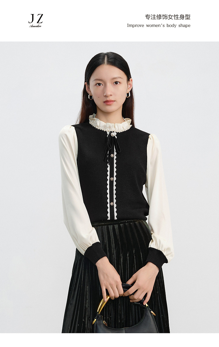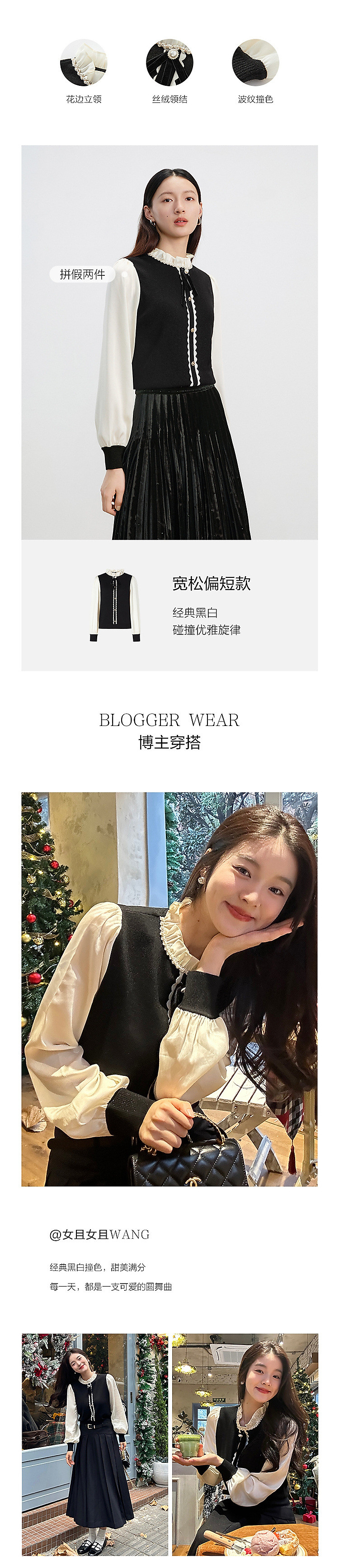 玖姿旗下安娜蔻系列宫廷风小香风气质优雅假两件H型毛衫女春季 578636