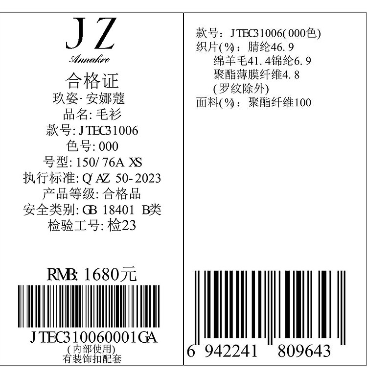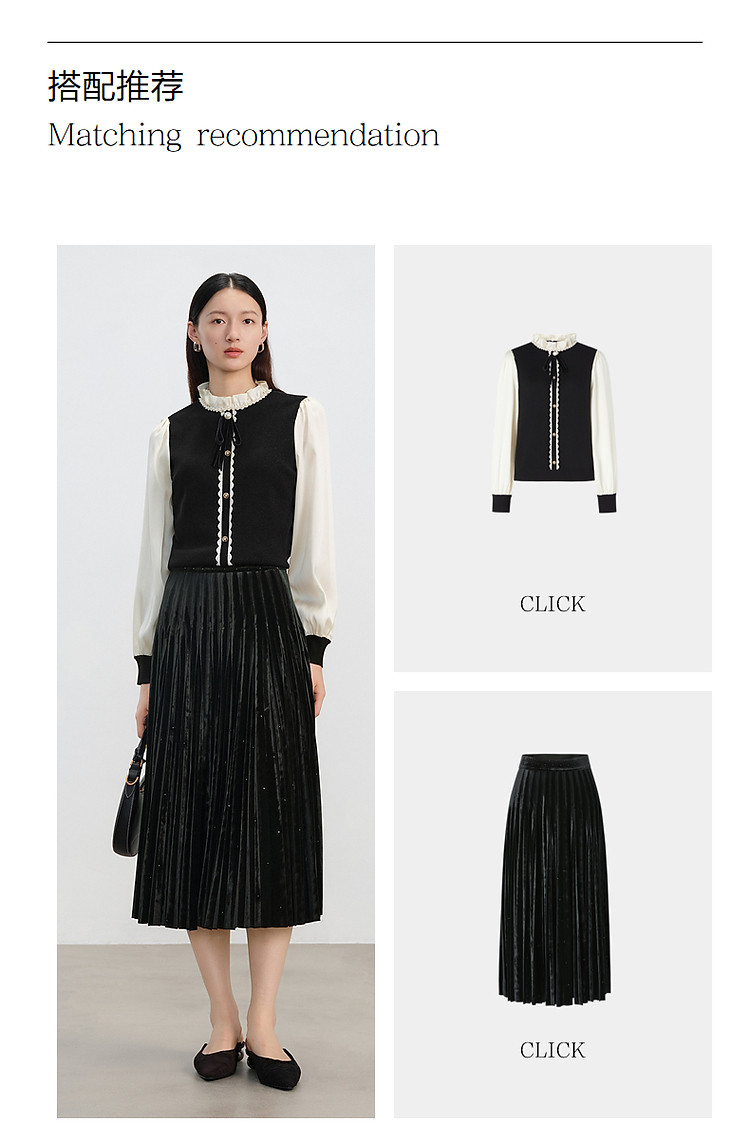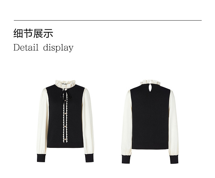 商品名称:玖姿旗下安娜蔻系列宫廷风小香风气质优雅假两件H型毛衫女春季 578636