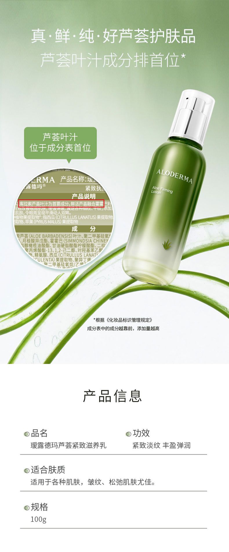 商品名称:瑷露德玛 芦荟紧致滋养乳 100g