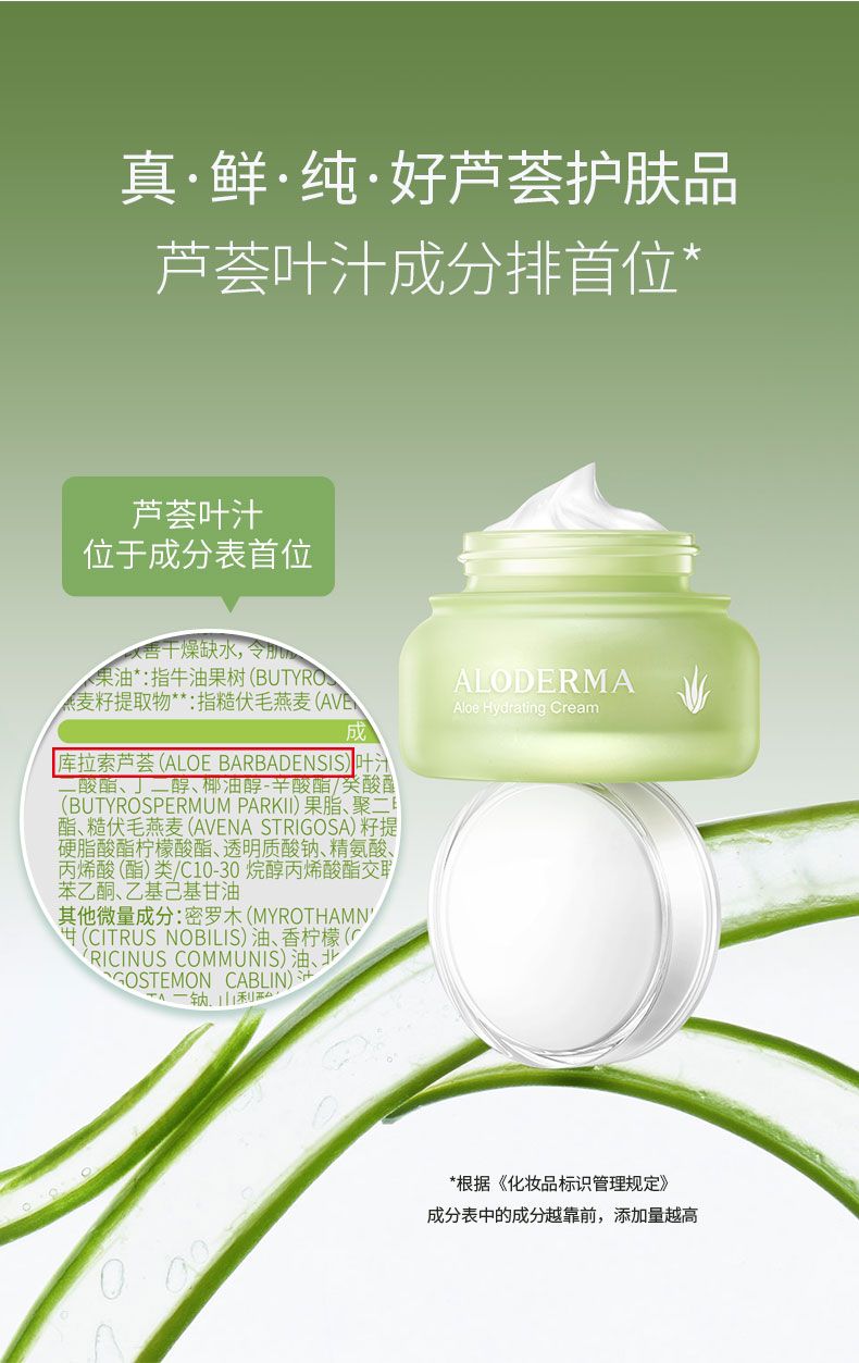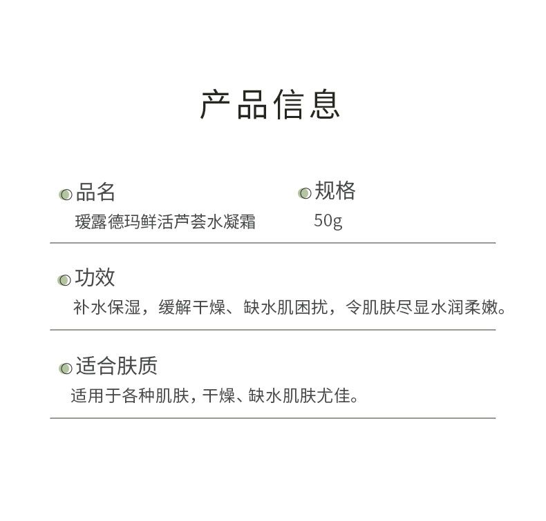 商品名称:瑷露德玛 鲜活芦荟水凝霜 50g 补水保湿滋润面霜