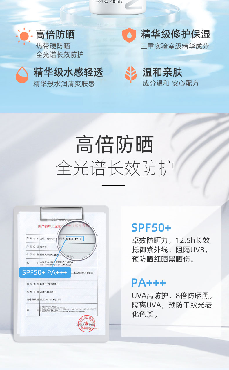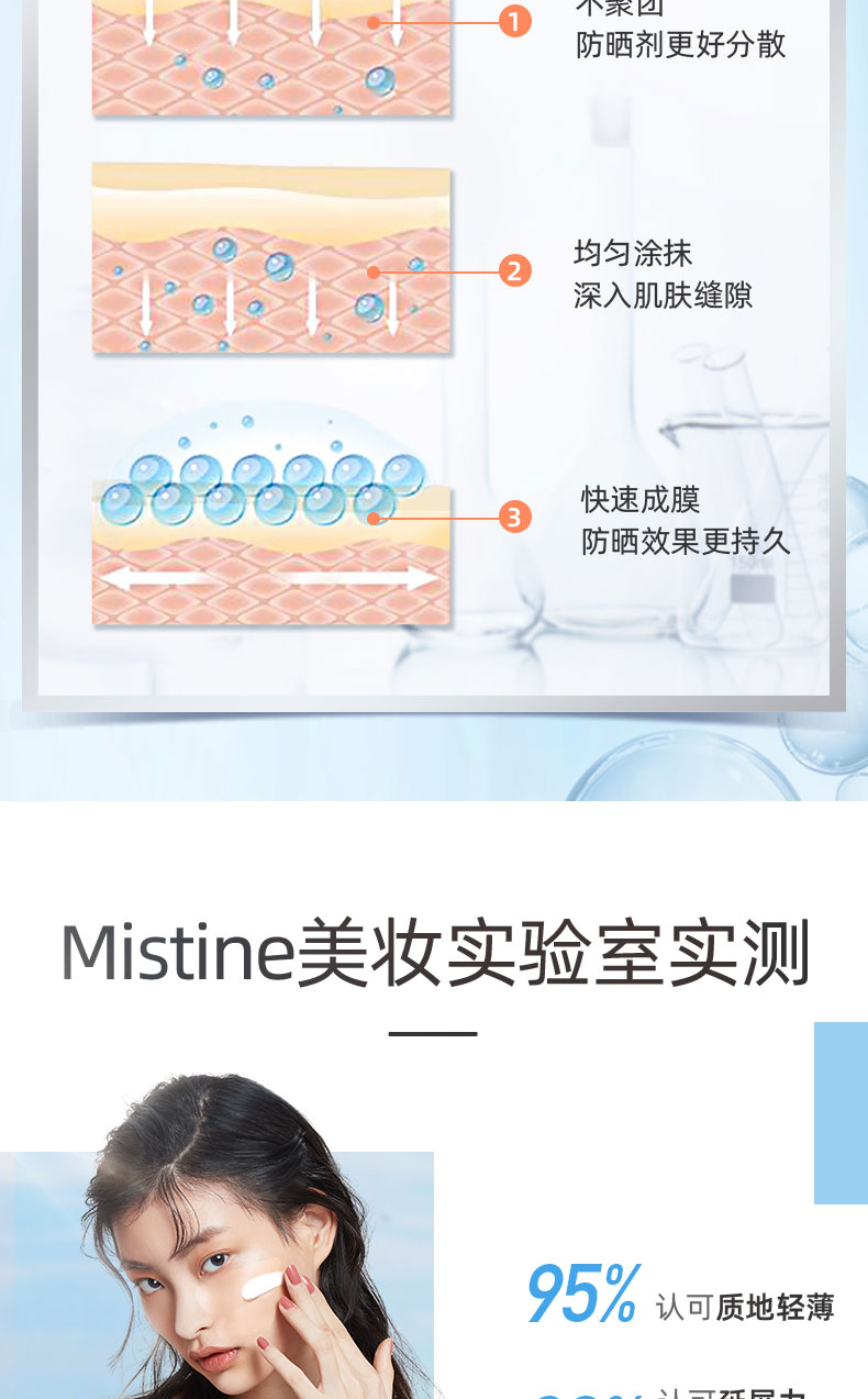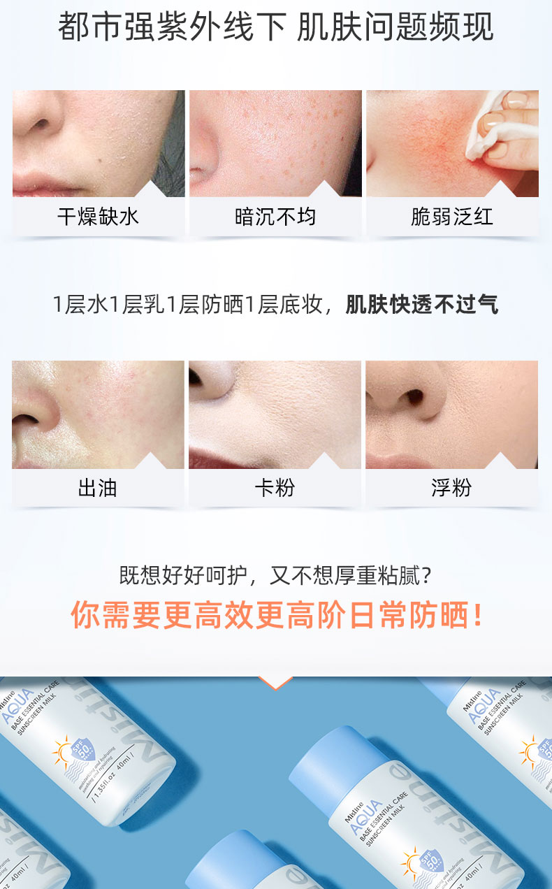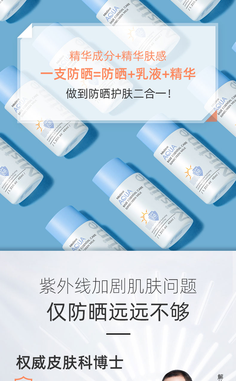 商品名称:Mistine/蜜丝婷 小蓝帽精华水感防晒霜乳 40ml 防紫外线隔离三合一