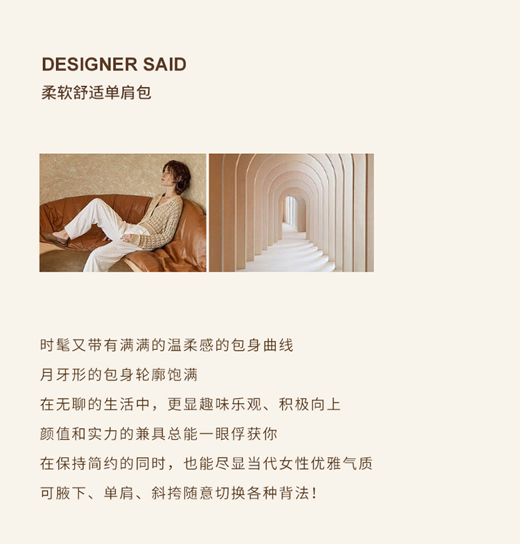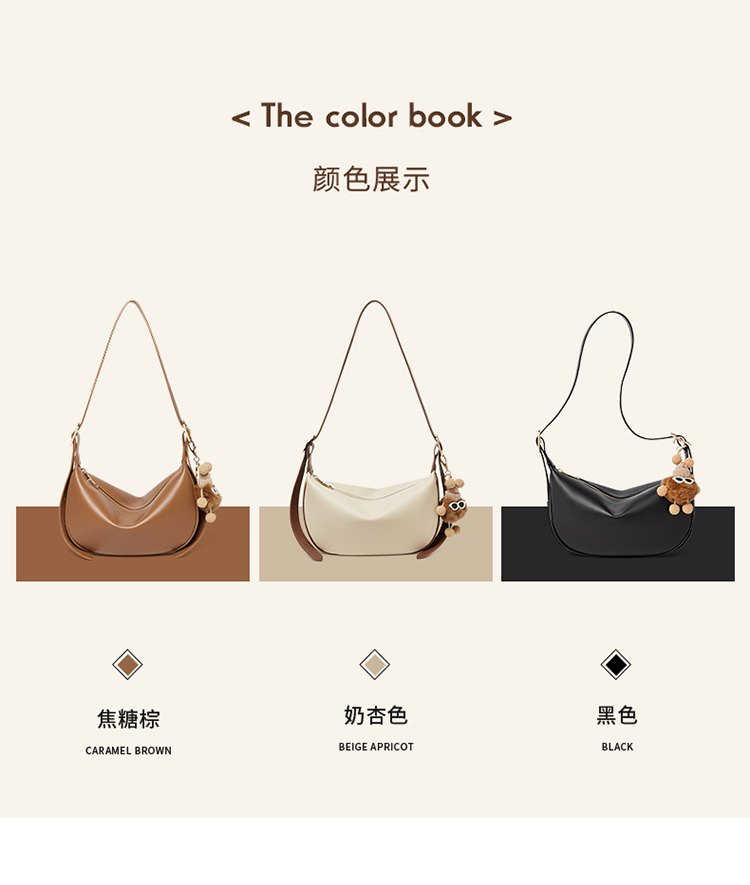 商品名称:纳兰杜女包斜挎包女软皮饺子包真皮腋下包月牙包612231099