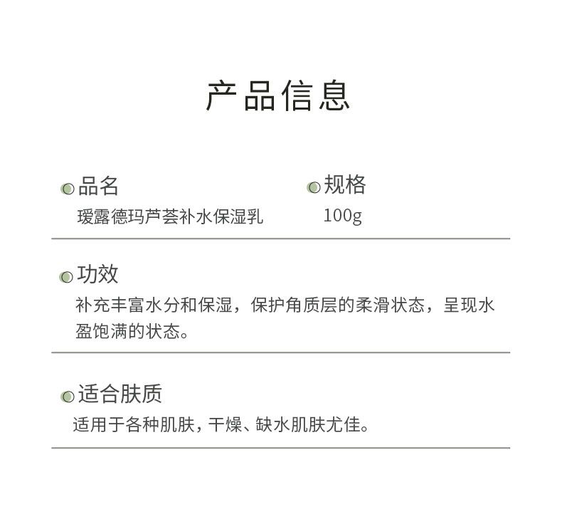 商品名称:瑷露德玛 芦荟补水保湿乳 100g 滋润水乳