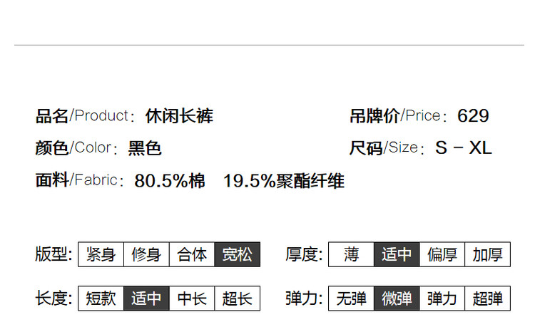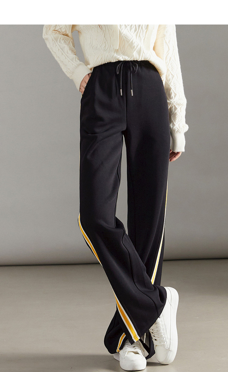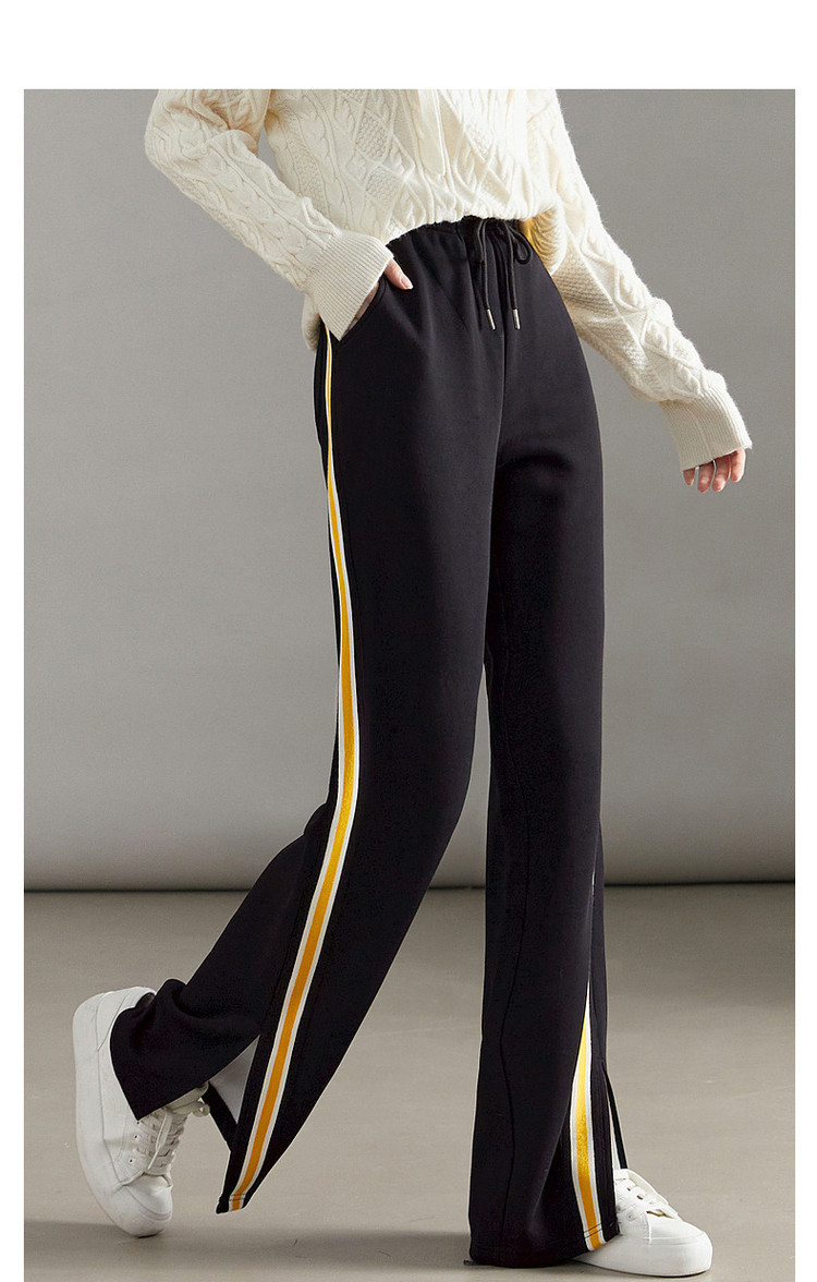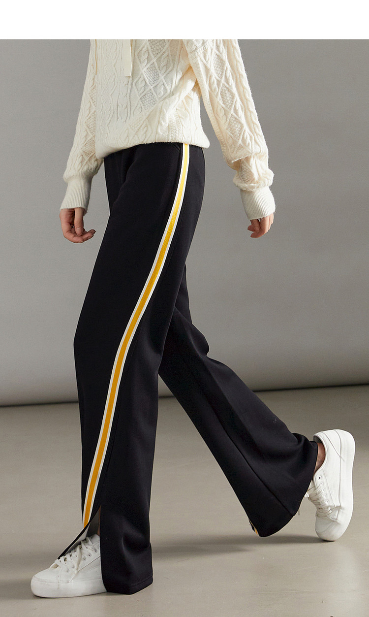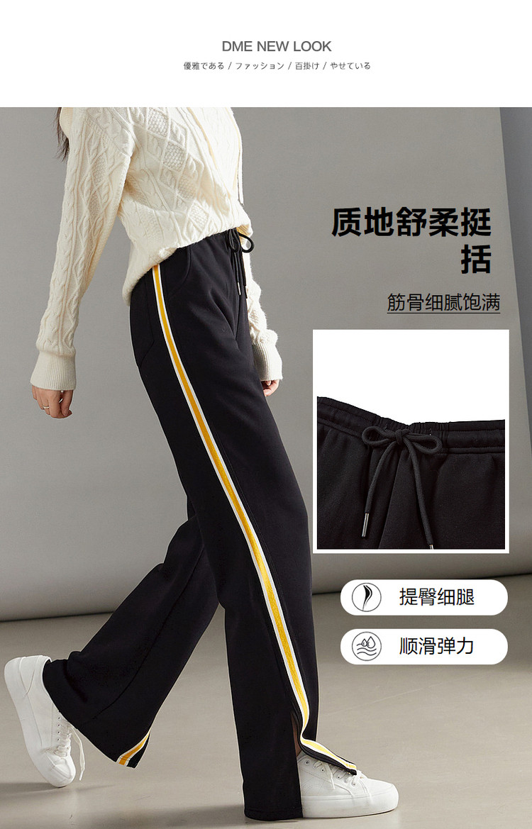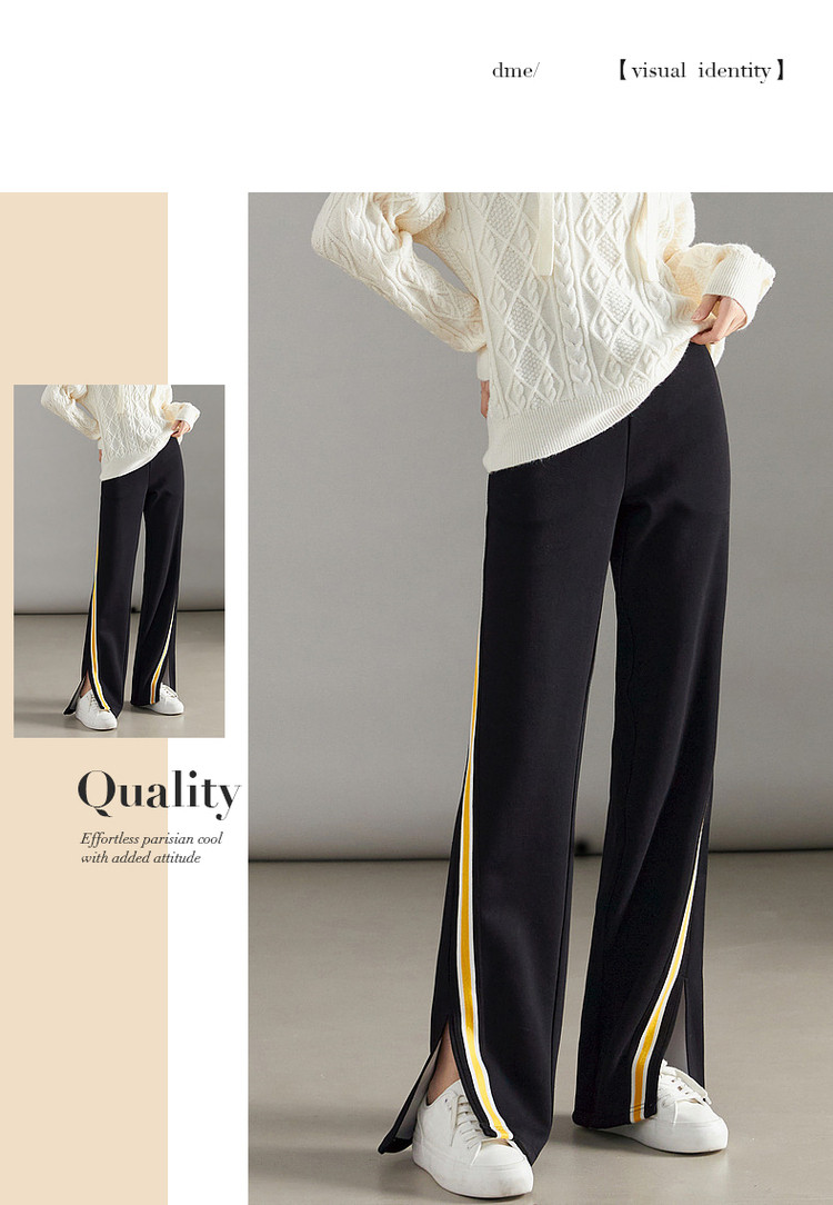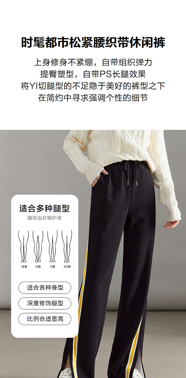 商品名称:【美拉德时髦都市】春秋直筒松紧腰女裤长裤开衩织带休闲裤子女 929409