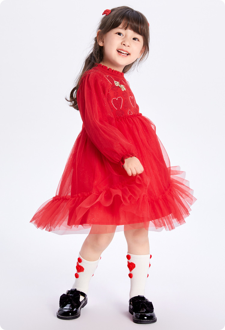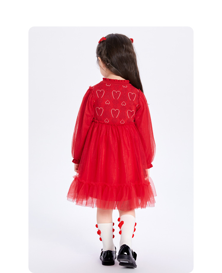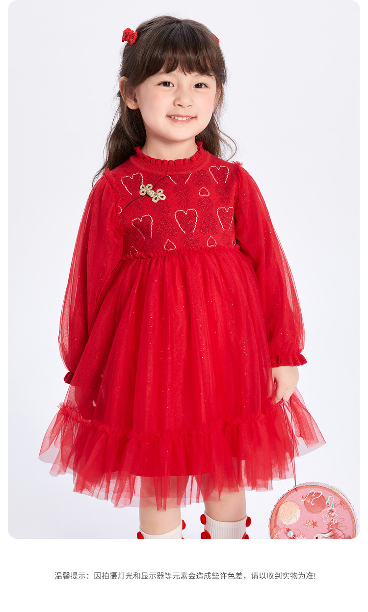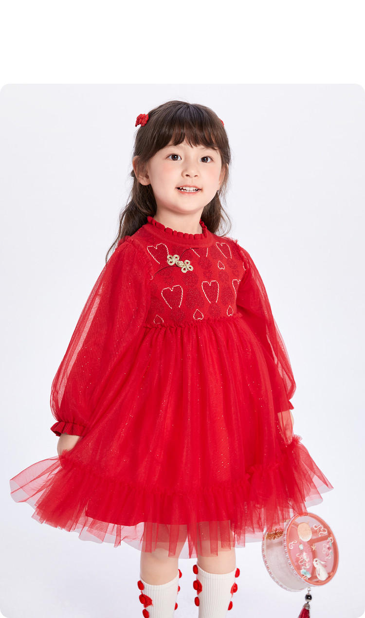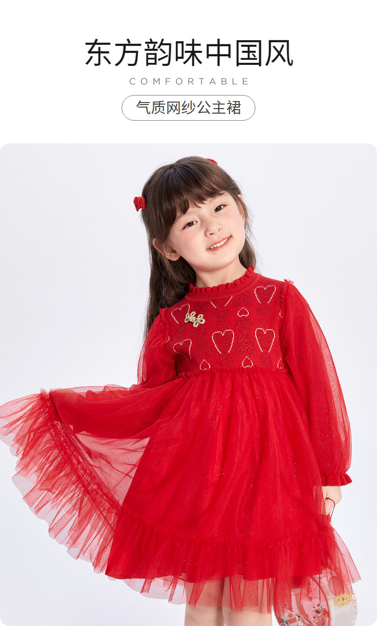 新中式国风公主裙儿童连衣裙女童裙子女小童红色网高级感裙子宝宝 068933