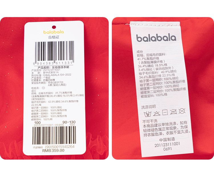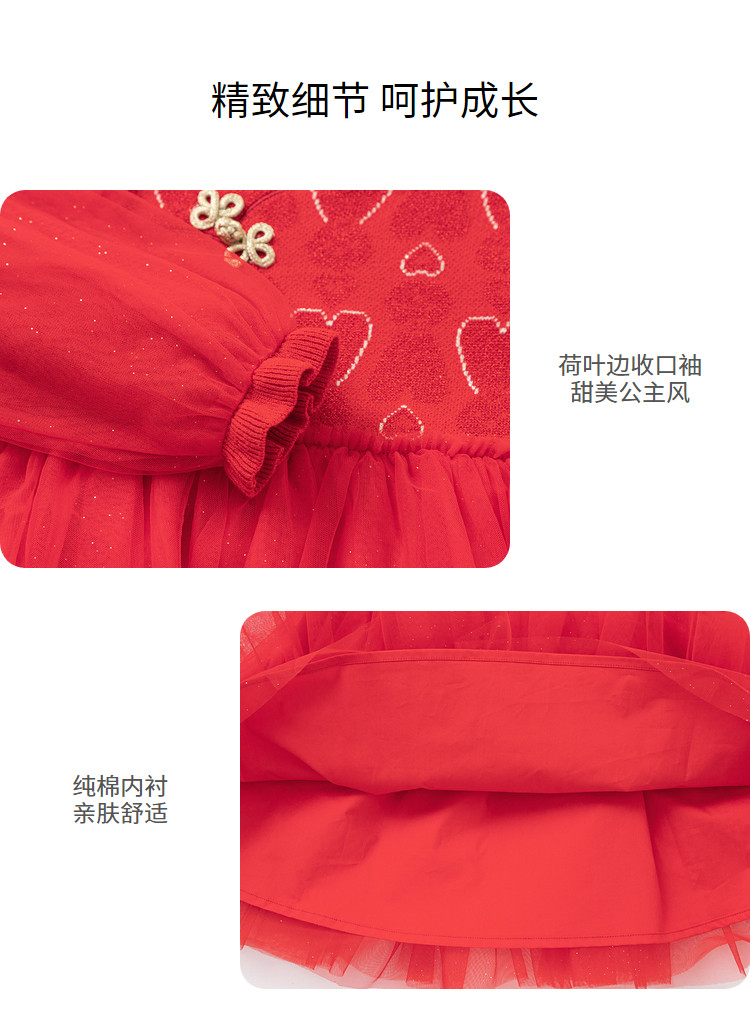 商品名称:新中式国风公主裙儿童连衣裙女童裙子女小童红色网高级感裙子宝宝 068933