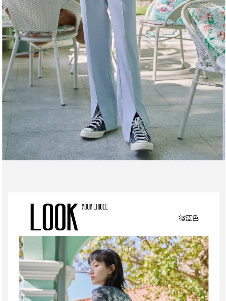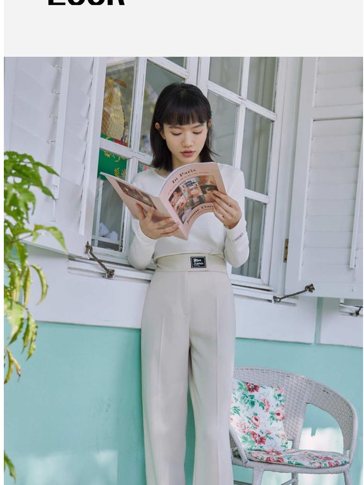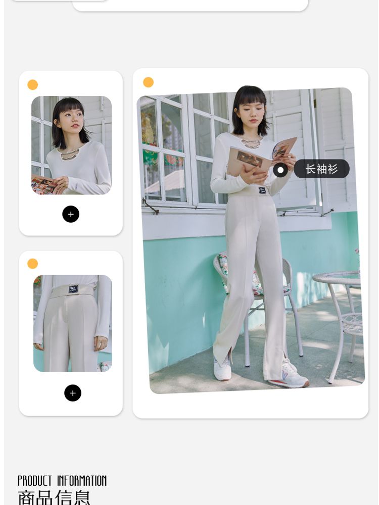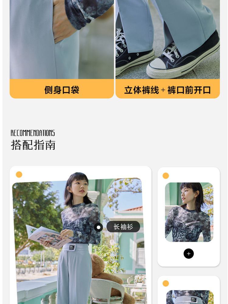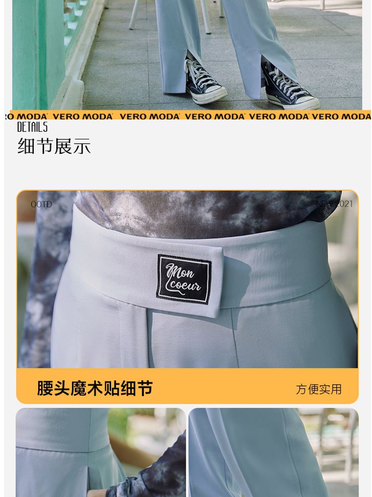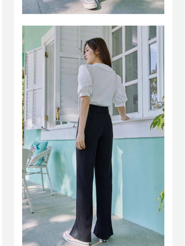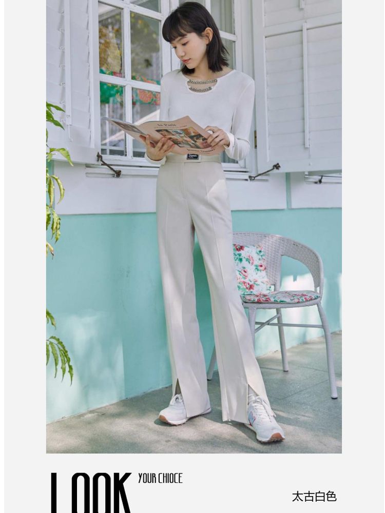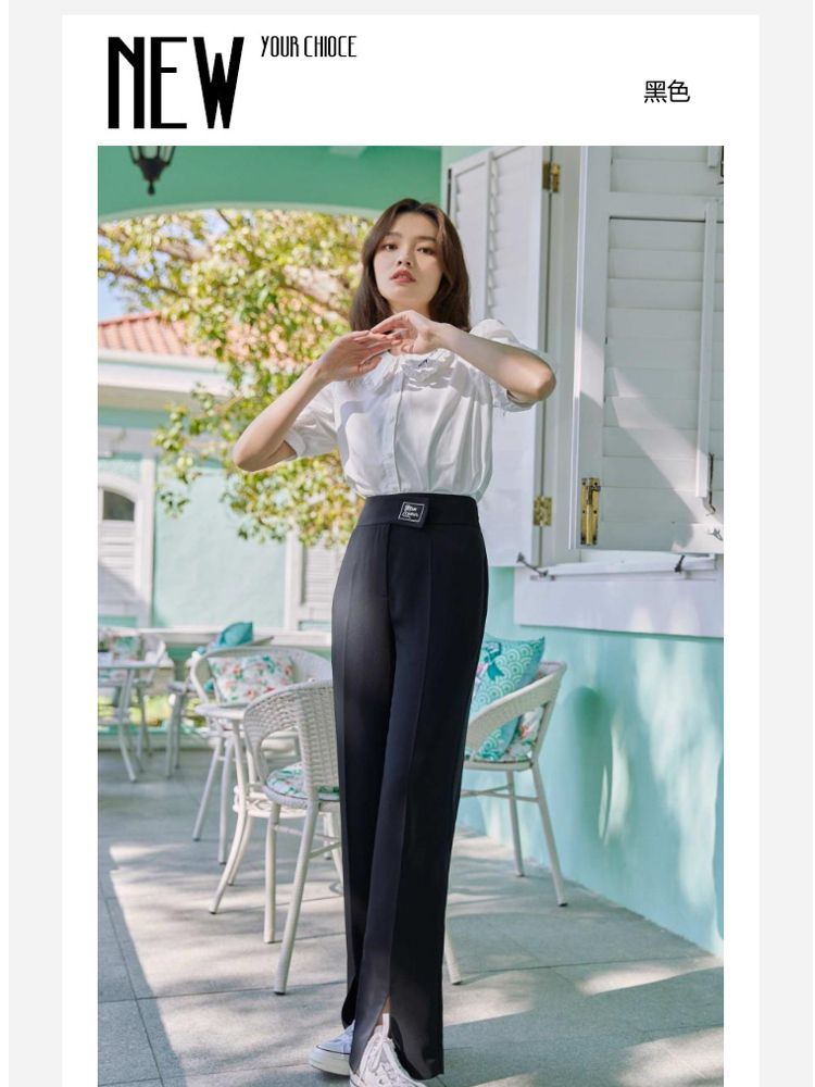 商品名称:【直筒裤】脚前开叉腰部装饰显瘦长裤女 855505
