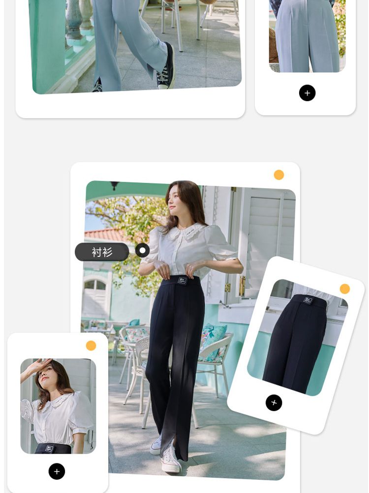 【直筒裤】脚前开叉腰部装饰显瘦长裤女 855505