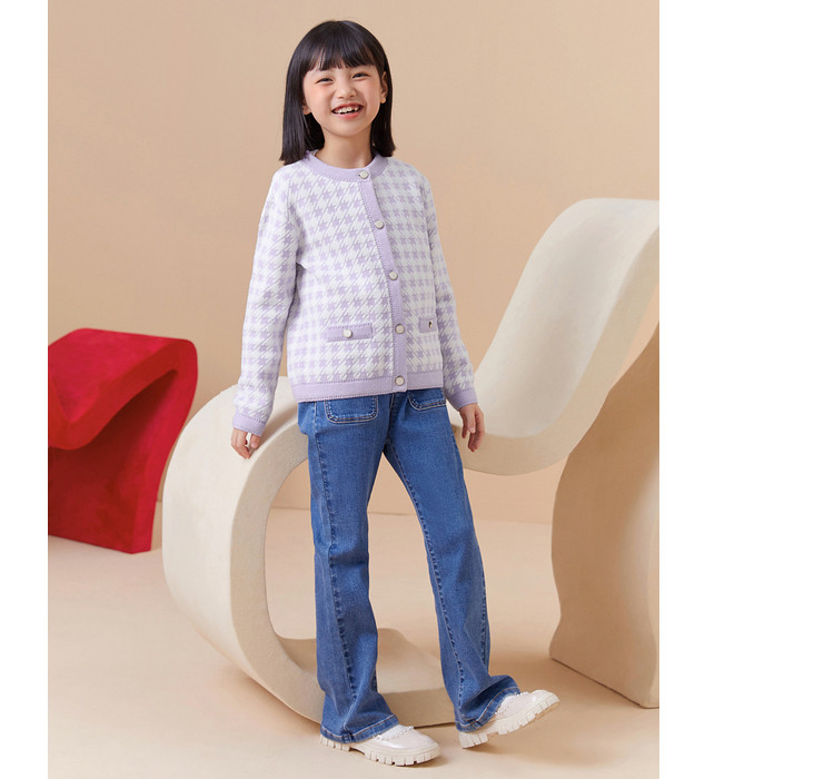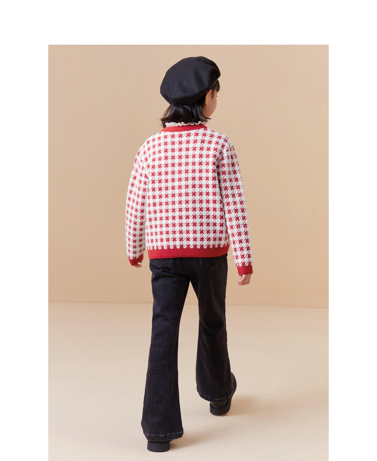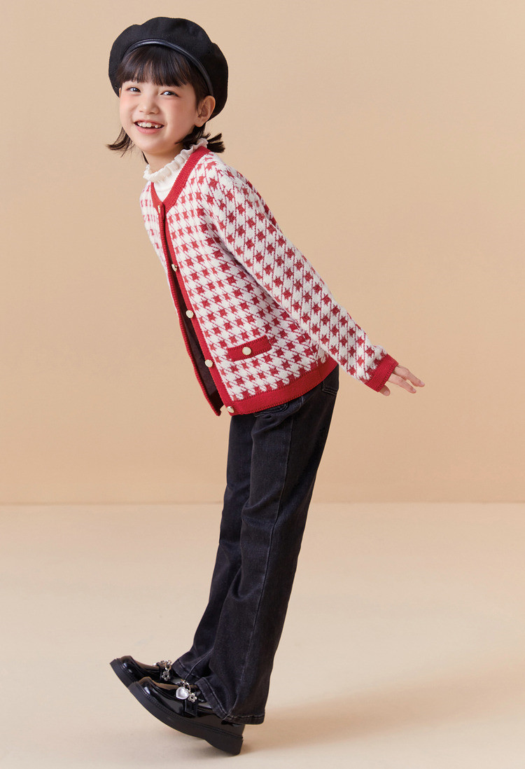 经典小香风针织外套女童开衫儿童春秋款女童红色儿童毛衣百搭时尚 305221