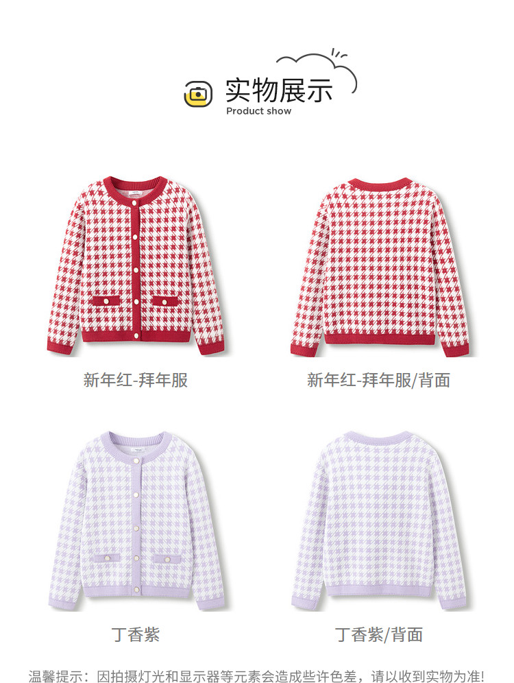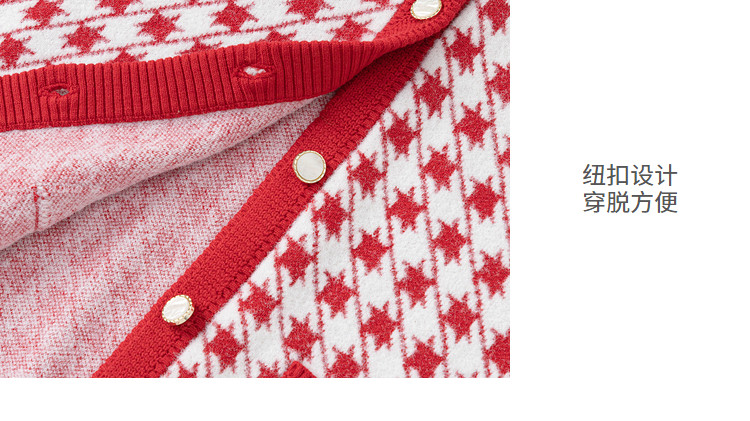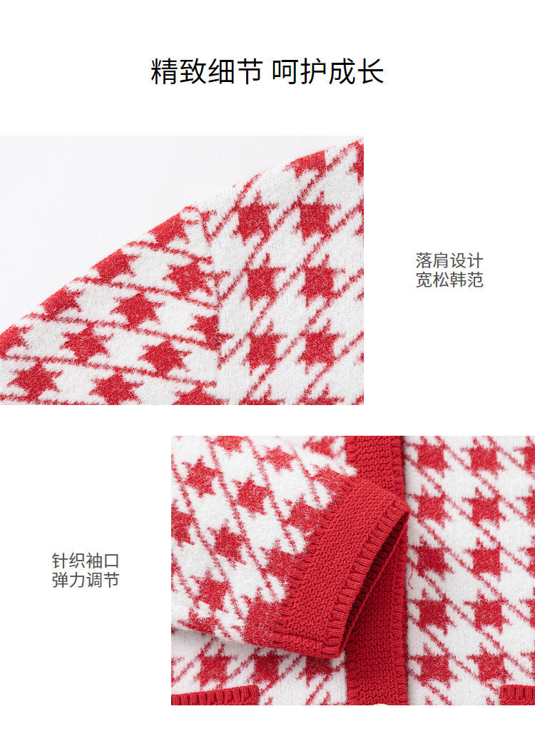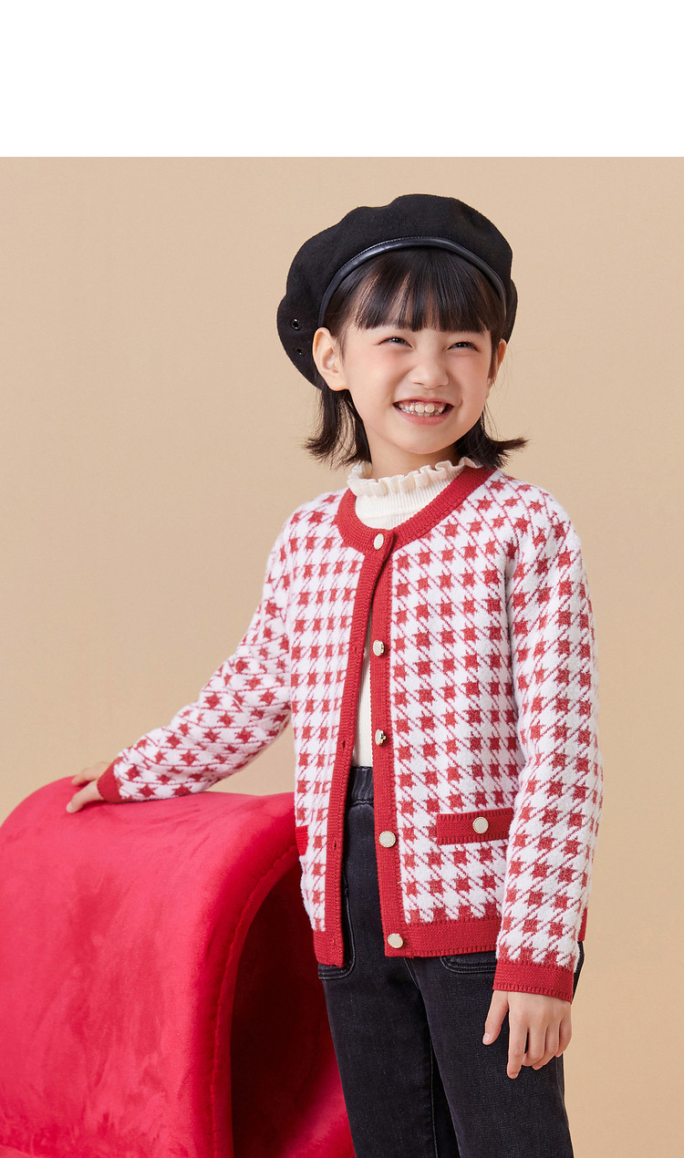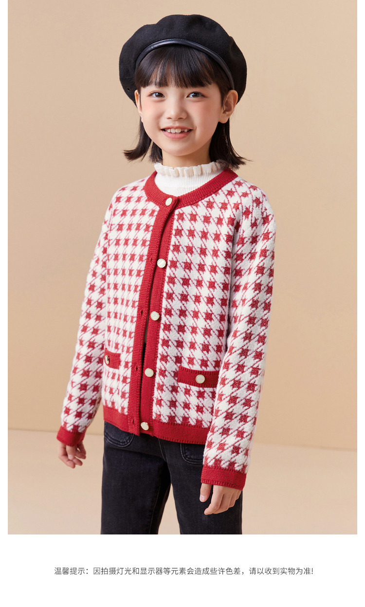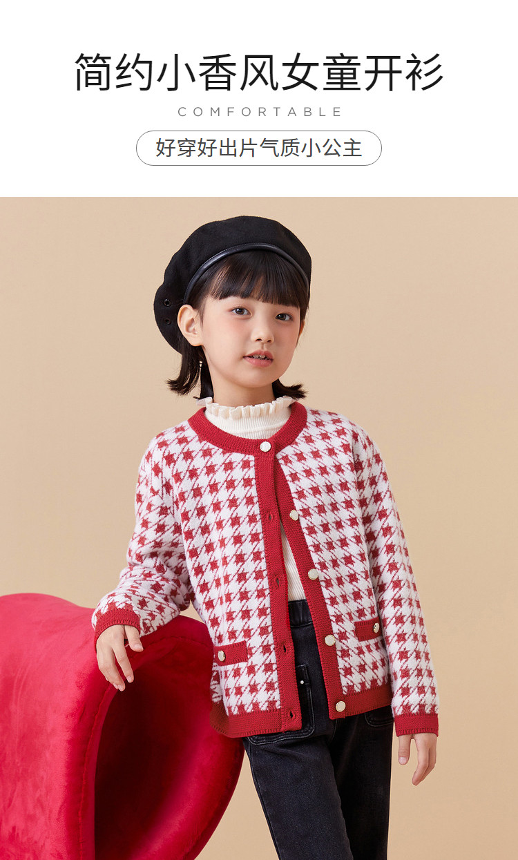 商品名称:经典小香风针织外套女童开衫儿童春秋款女童红色儿童毛衣百搭时尚 305221