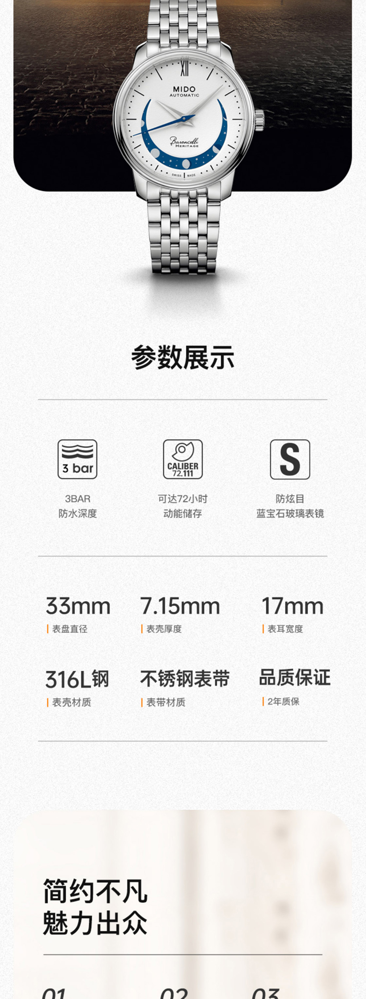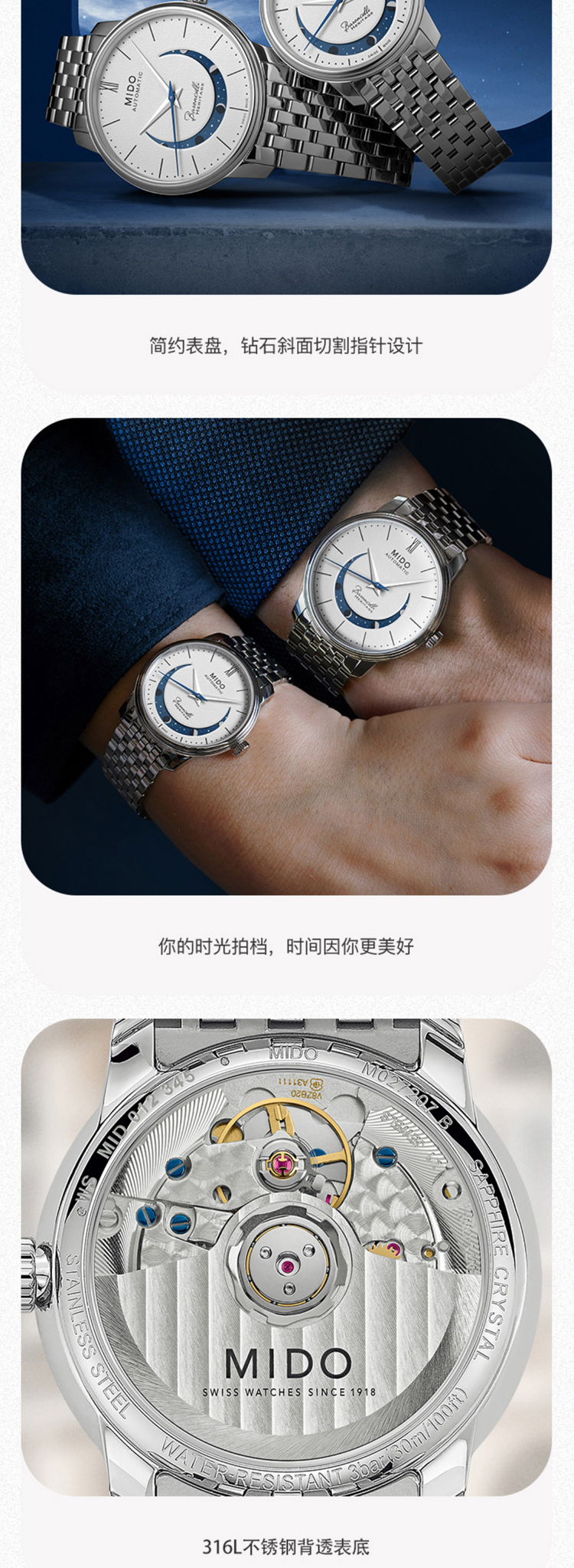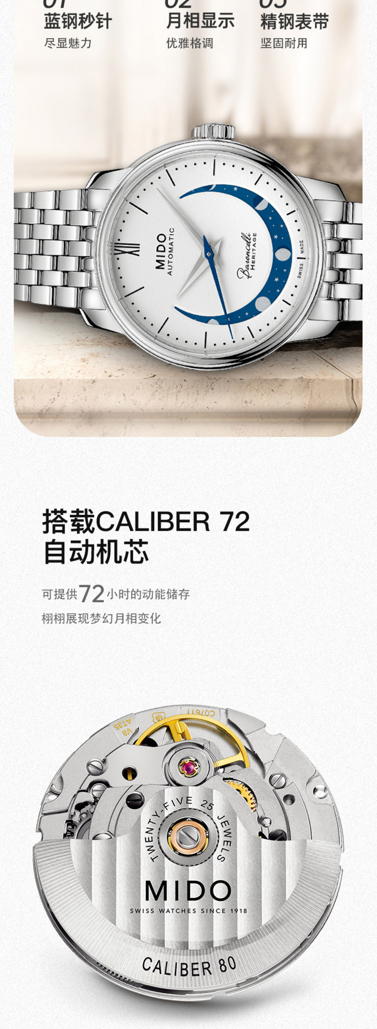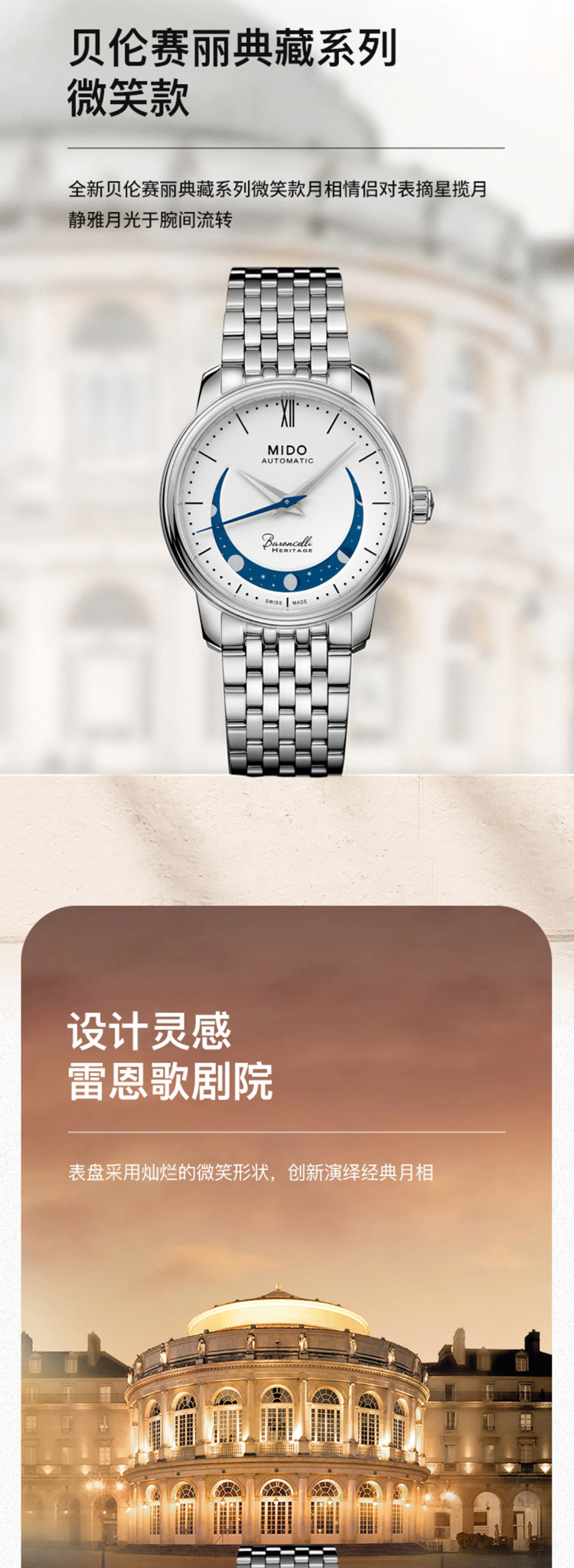 商品名称:MIDO美度 贝伦赛丽典藏系列微笑款月相机械女士腕表 (不支持无理由退换货)