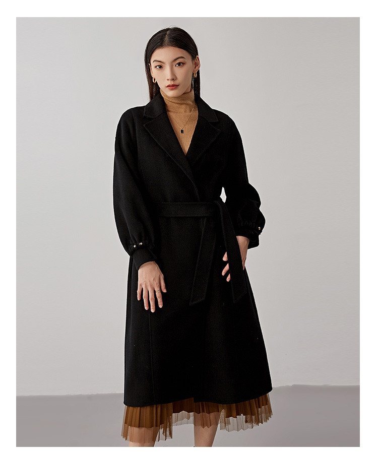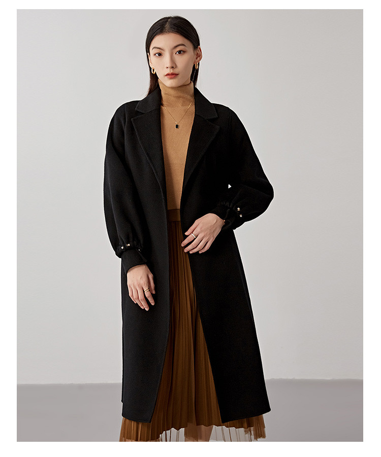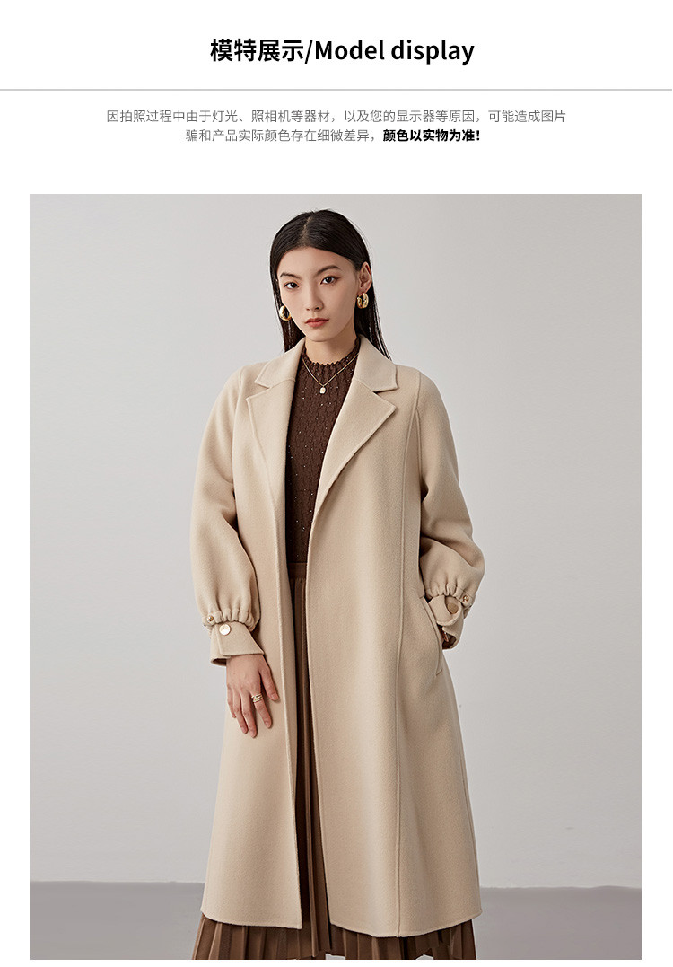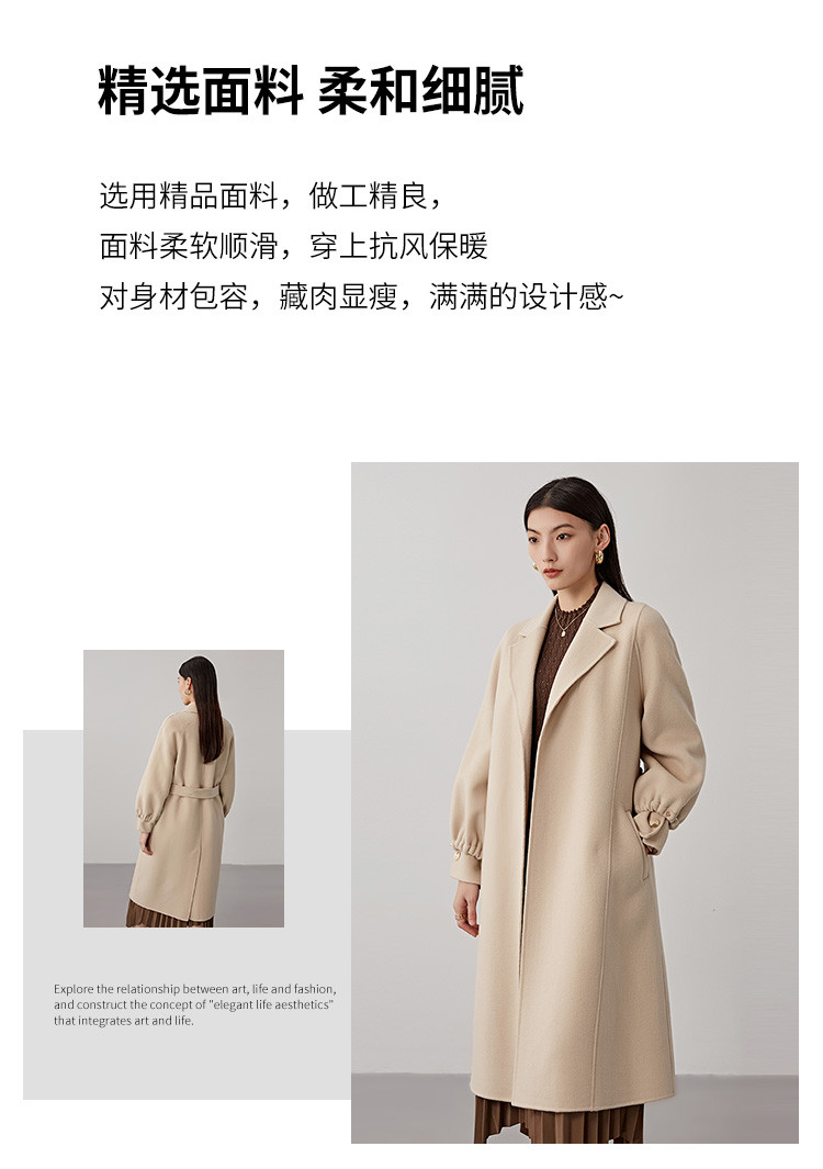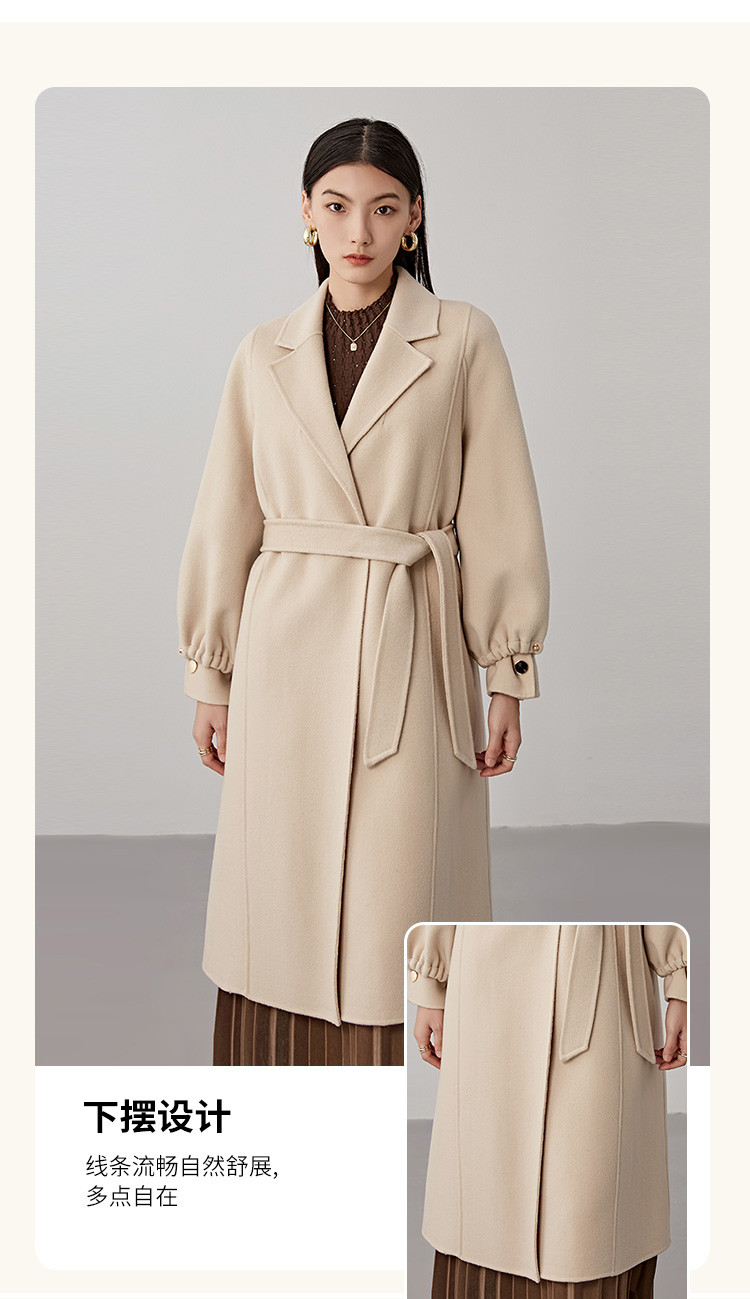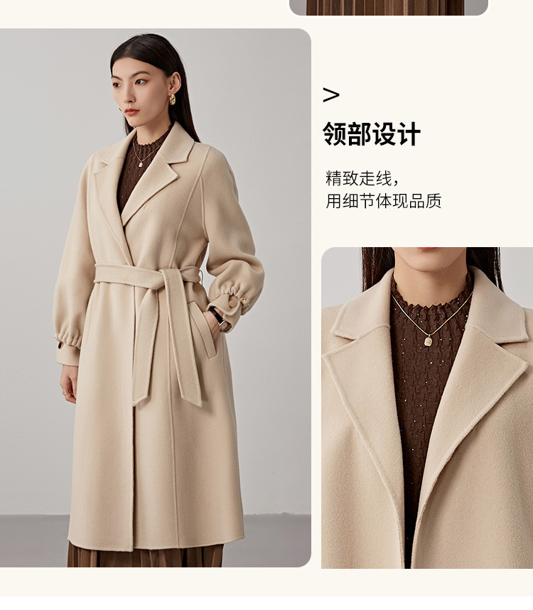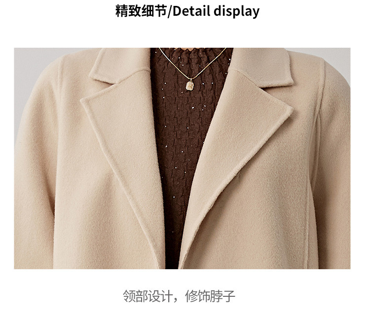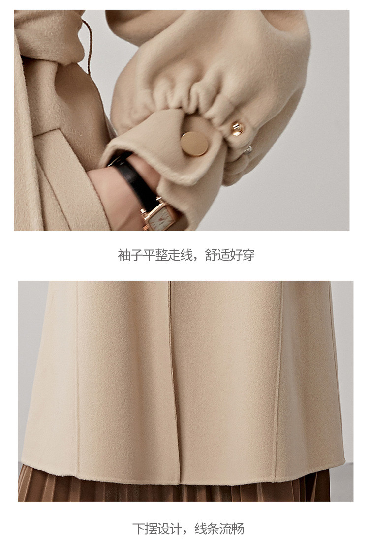 秋冬减龄时尚羊毛大衣女式100%绵羊毛休闲双面呢外套 941471