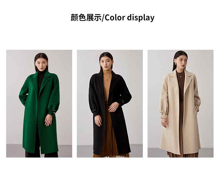 商品名称:秋冬减龄时尚羊毛大衣女式100%绵羊毛休闲双面呢外套 941471