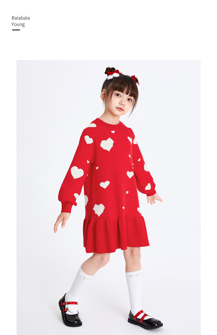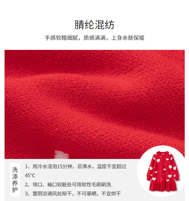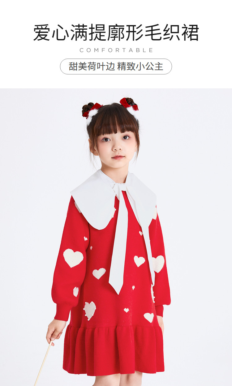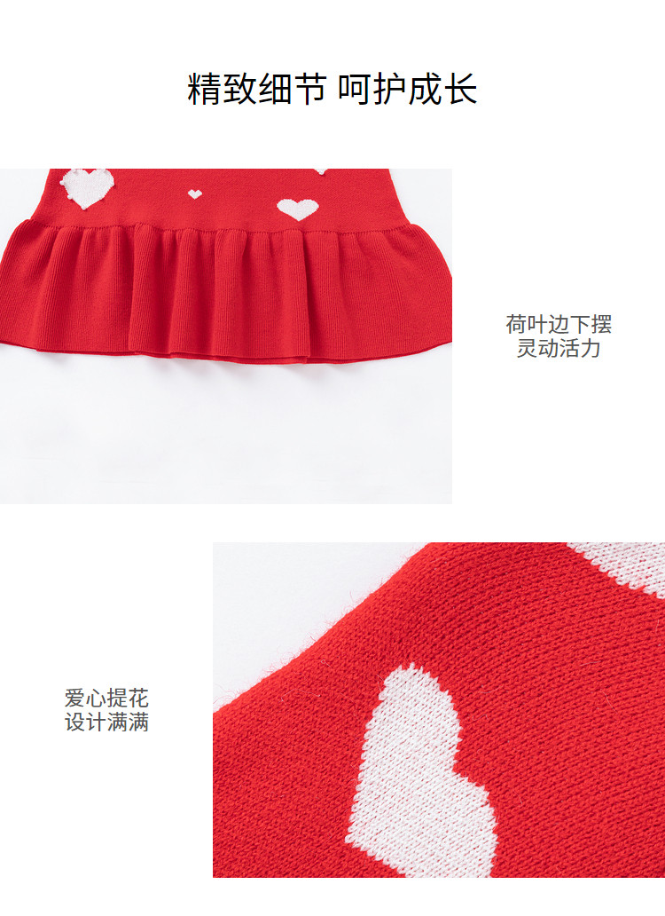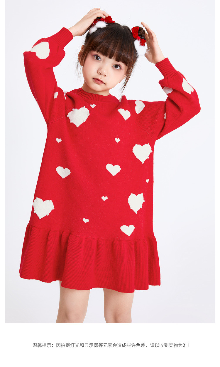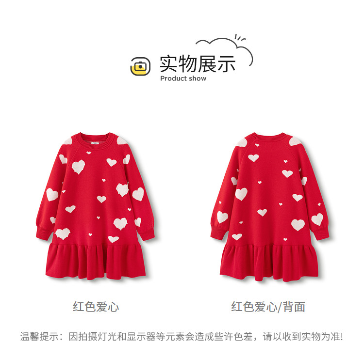 商品名称:爱心提花连衣裙春秋女童中长款儿童裙子中大童荷叶边保暖撞色国风 866373