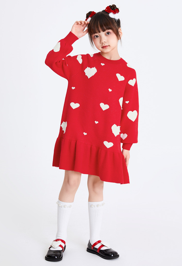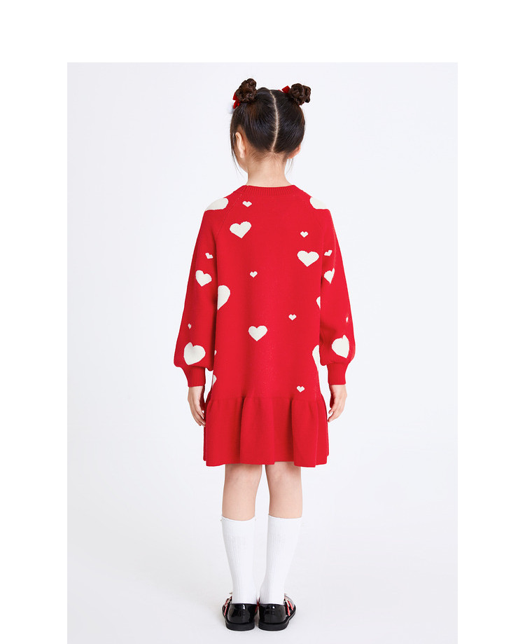 爱心提花连衣裙春秋女童中长款儿童裙子中大童荷叶边保暖撞色国风 866373
