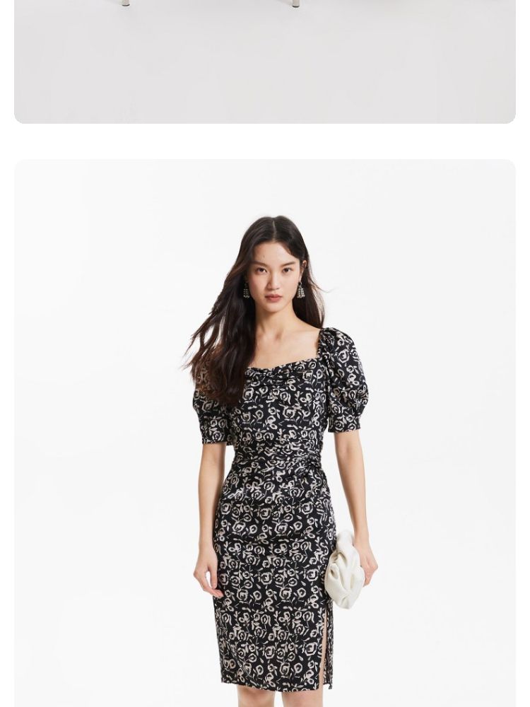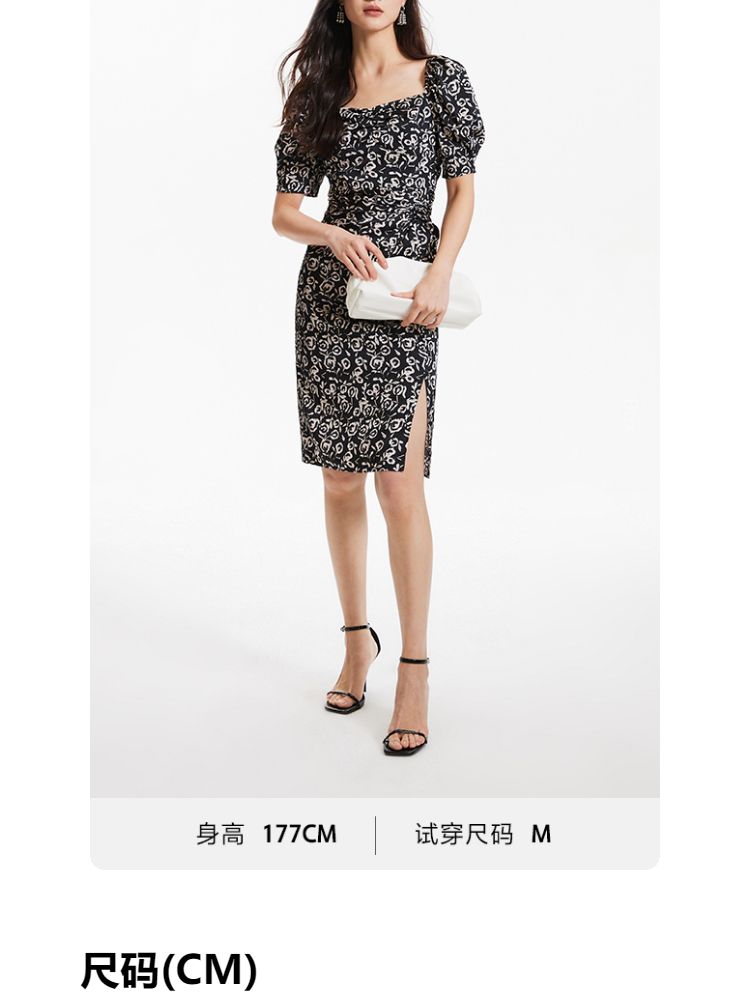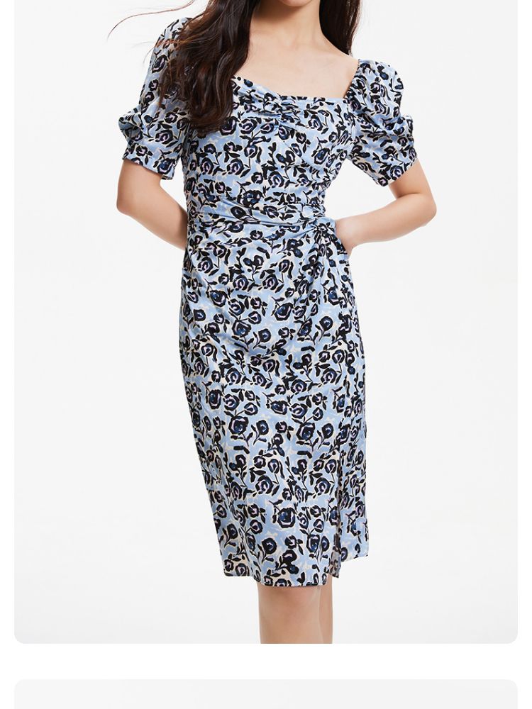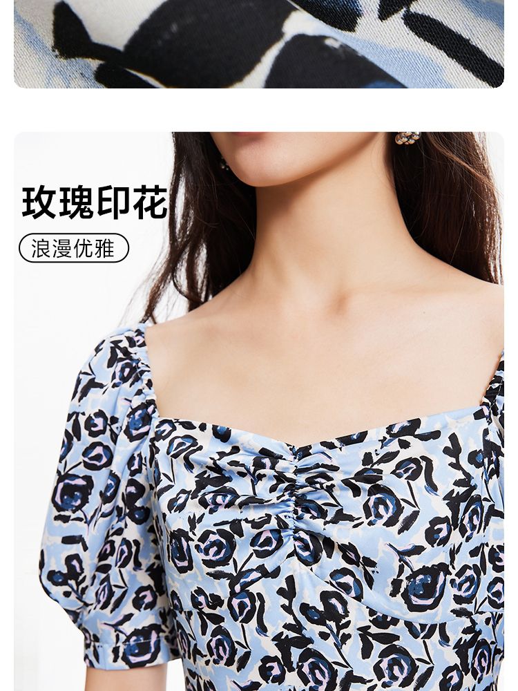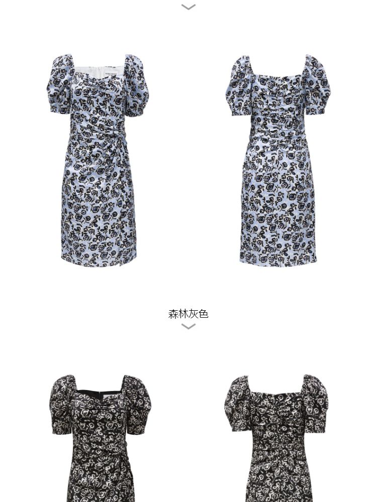 商品名称:【印花】连衣裙2024早春新款玫瑰直筒泡泡袖方领优雅气质 591697