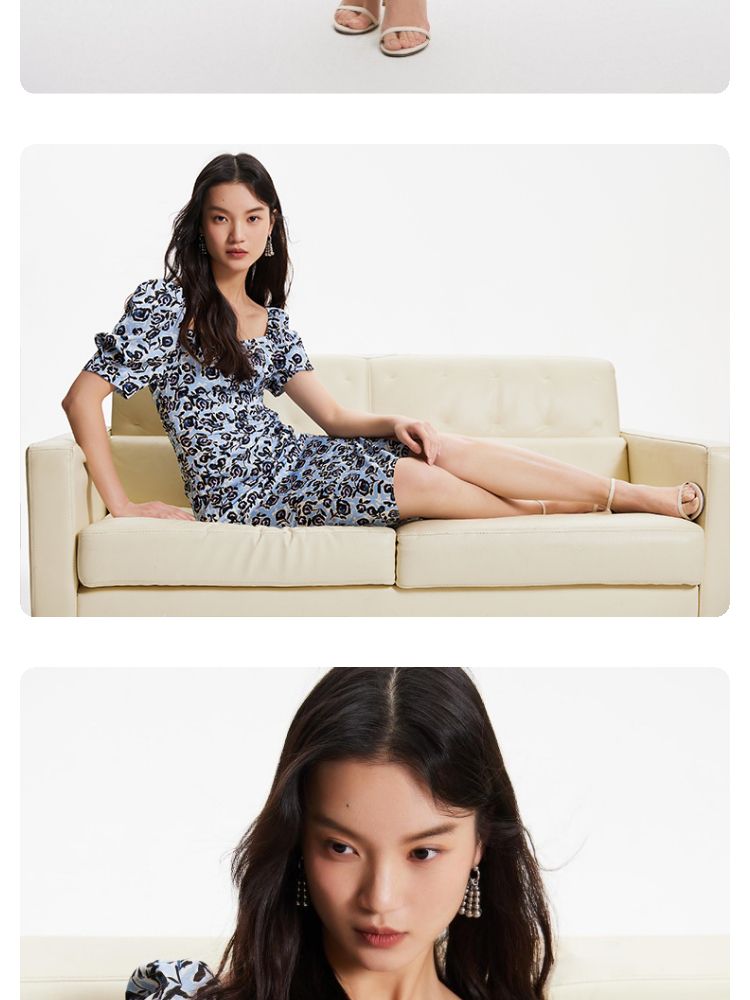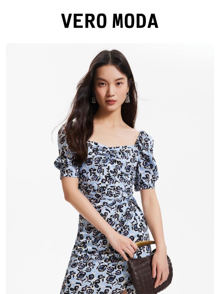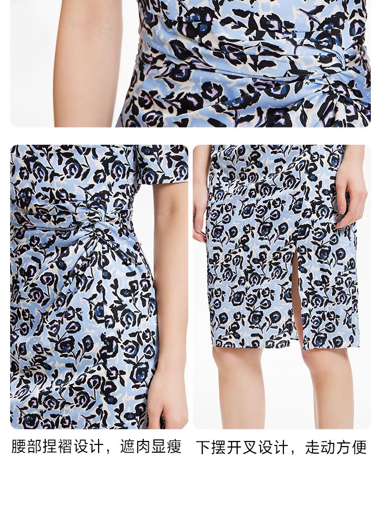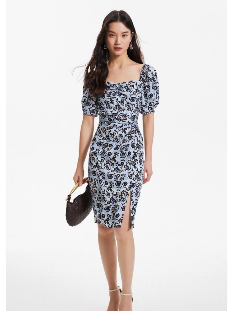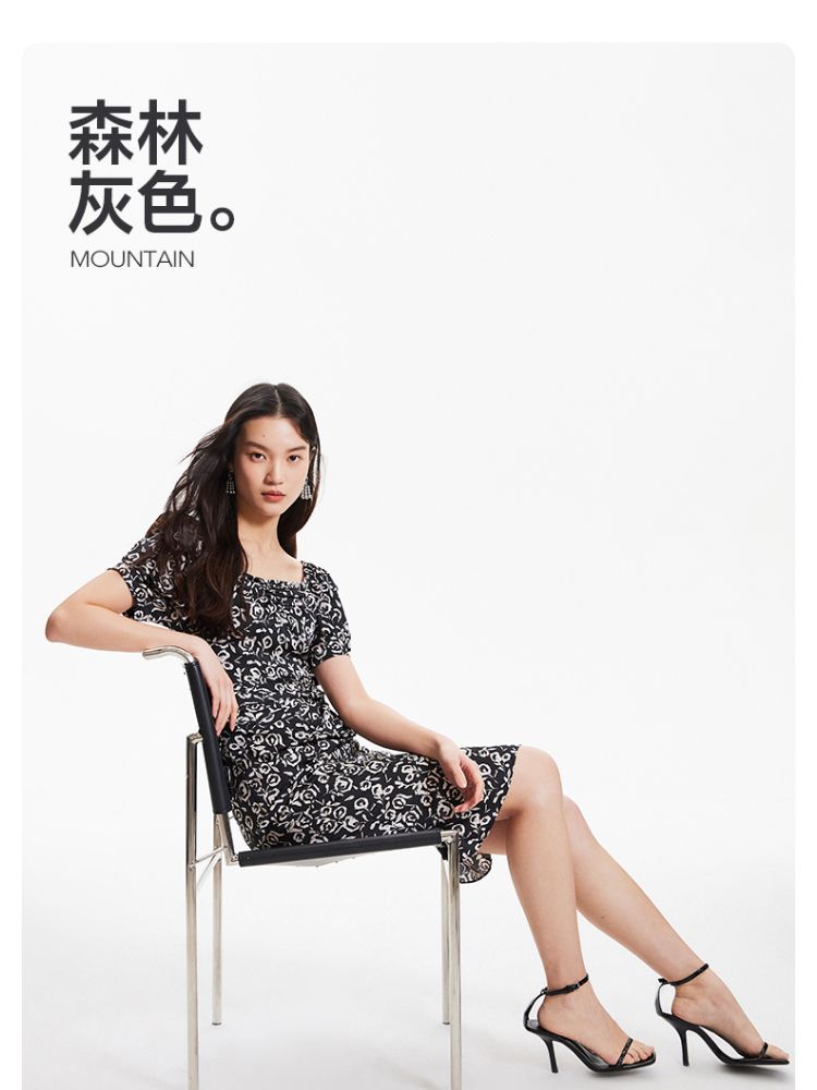 商品名称:【印花】连衣裙2024早春新款玫瑰直筒泡泡袖方领优雅气质 591697