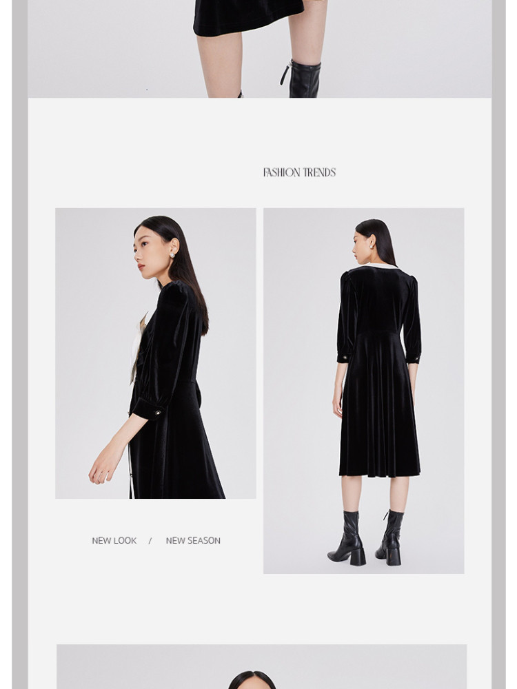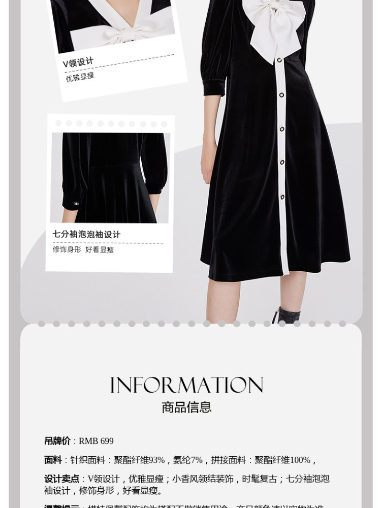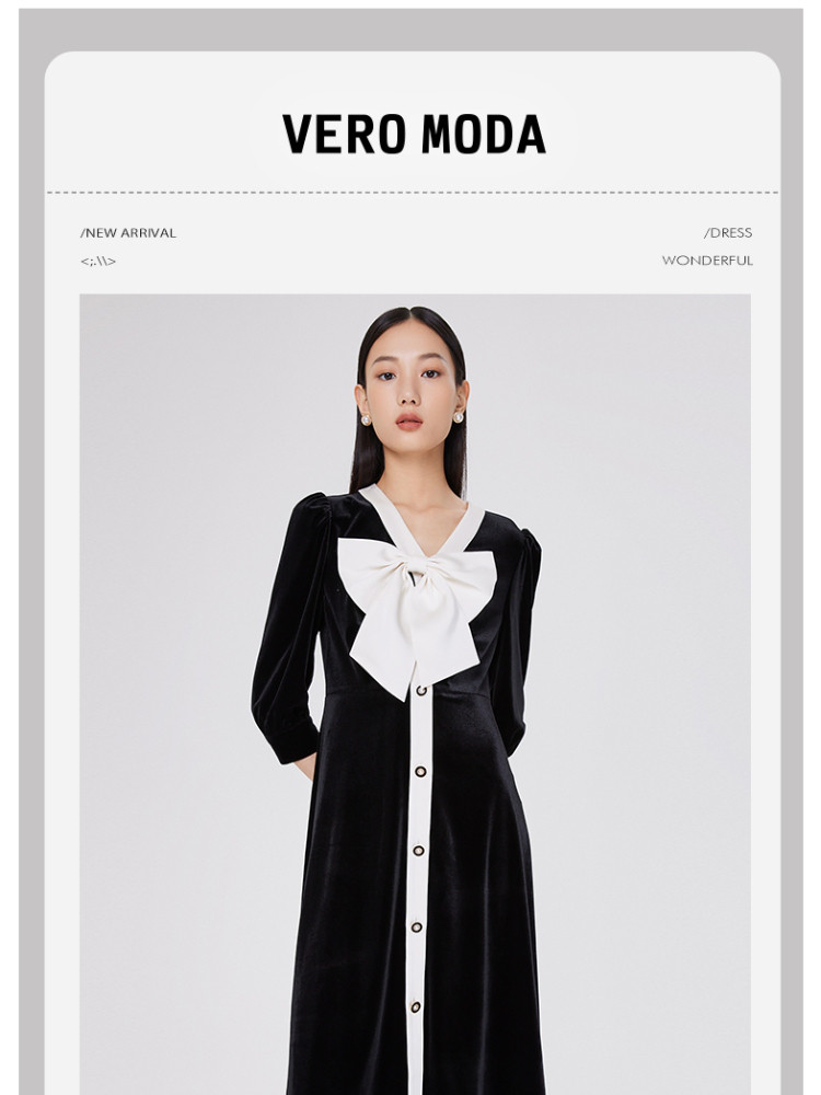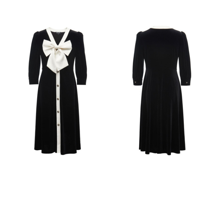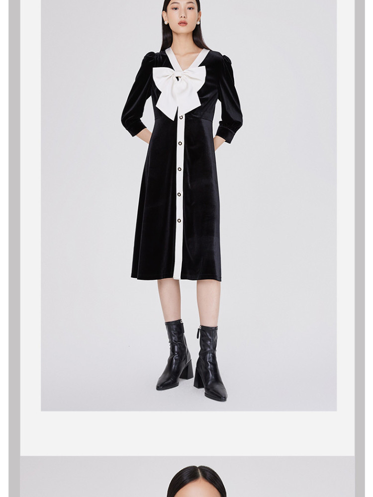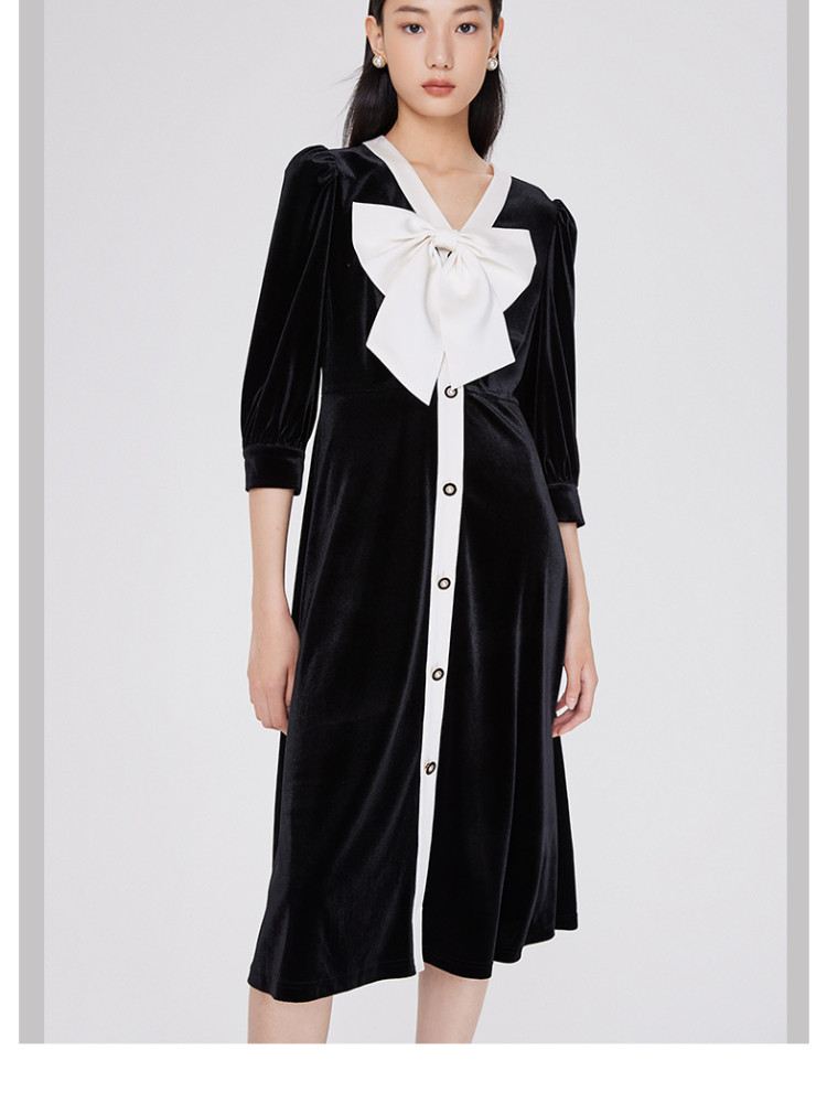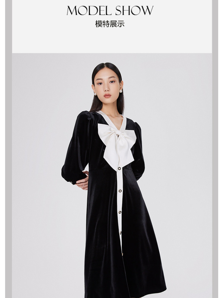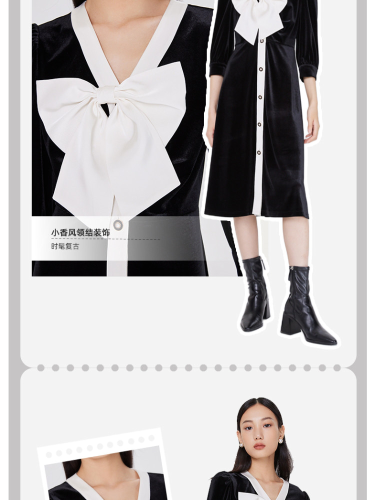 商品名称:连衣裙小香风领结装饰复古丝绒裙优雅气质 375441