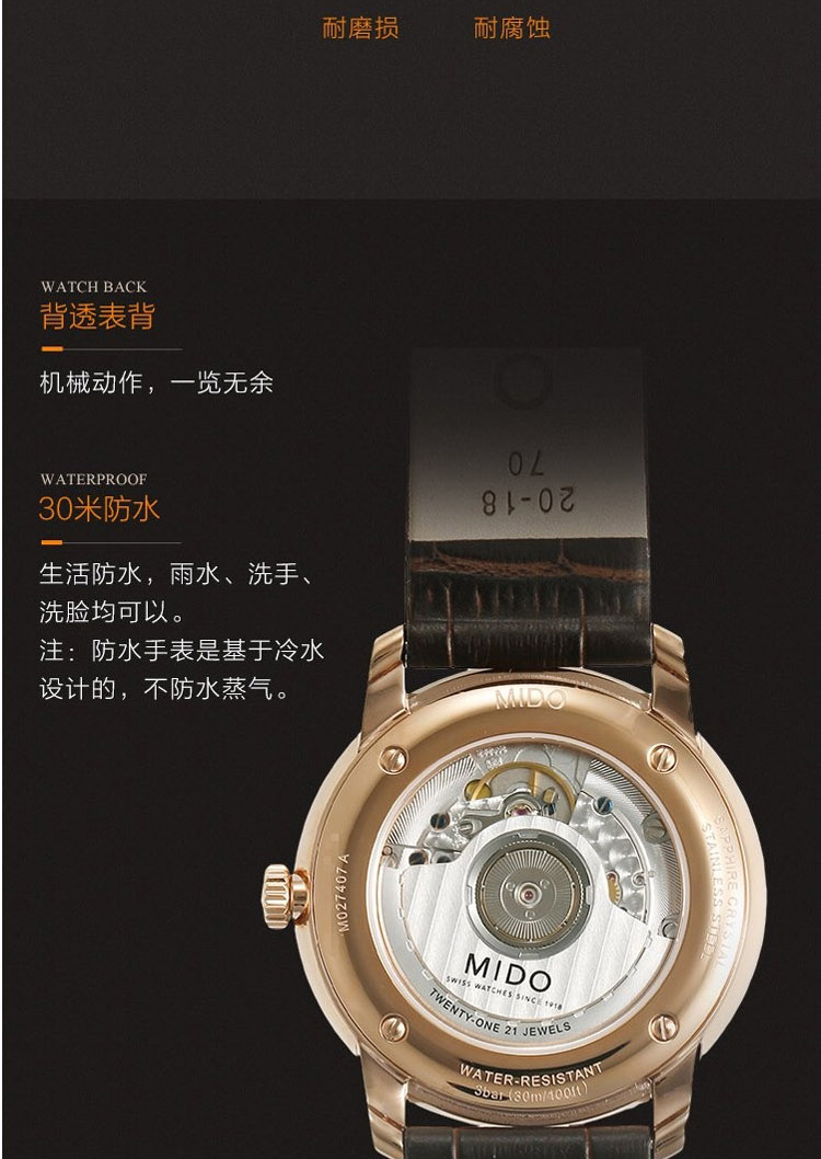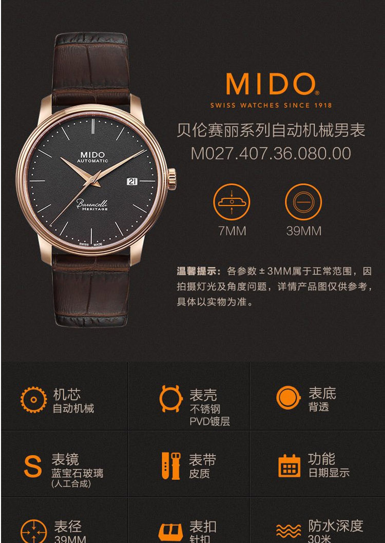 商品名称:MIDO美度 贝伦赛丽典藏系列超薄机械男士腕表 (不支持无理由退换货)