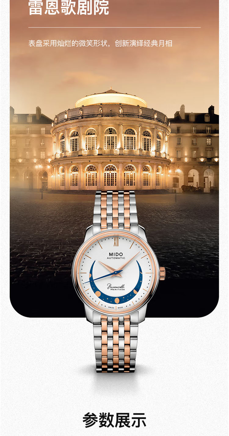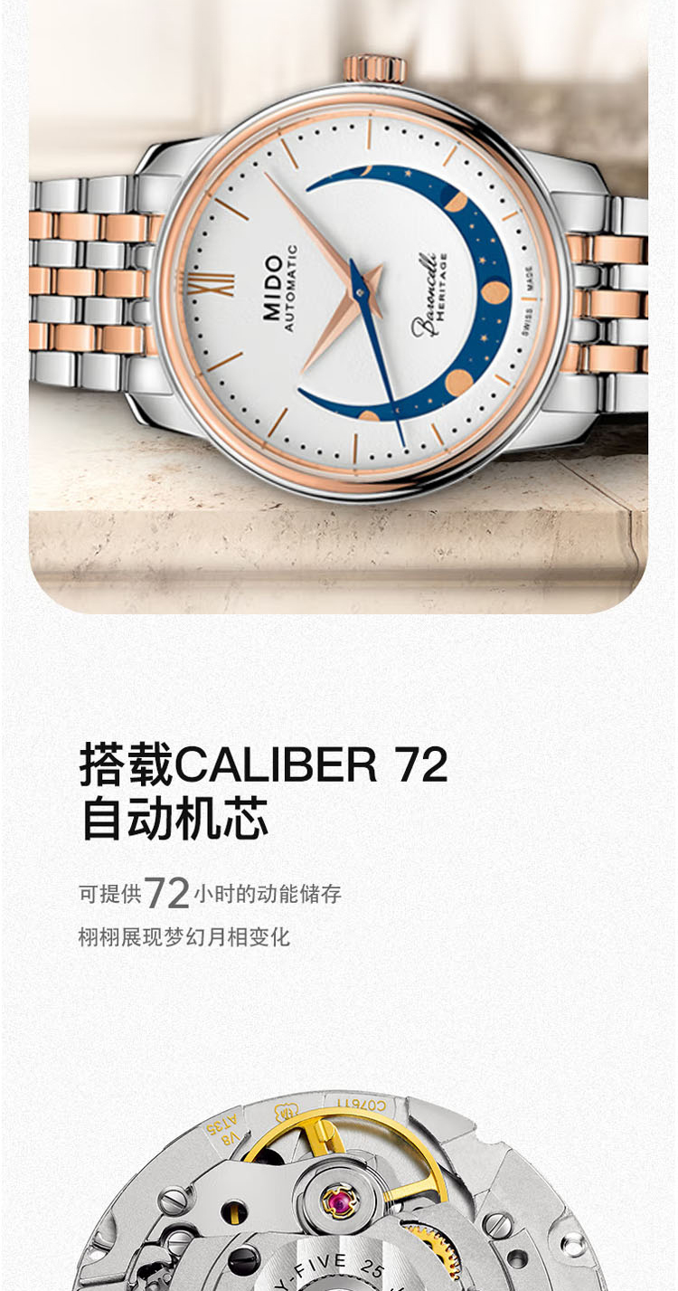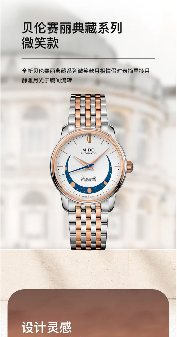 商品名称:MIDO美度 贝伦赛丽典藏系列微笑款月相机械女士腕表 (不支持无理由退换货)
