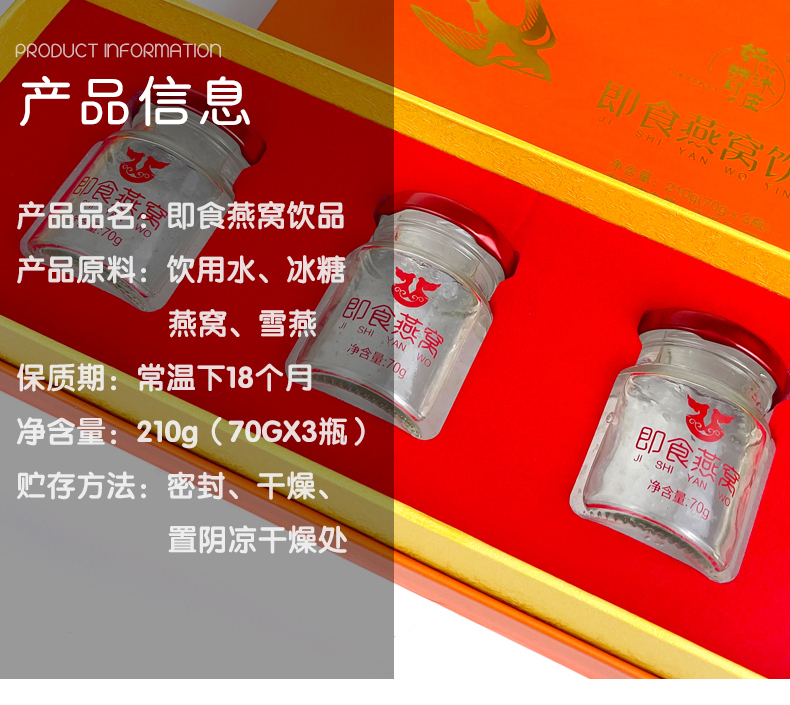 商品名称:轩哲沐庄即食燕窝美容养颜补品70g/瓶*3瓶/盒