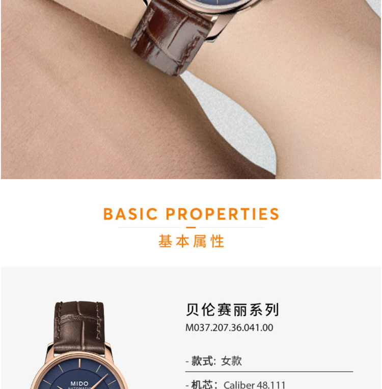 商品名称:MIDO美度 贝伦赛丽系列印记款女士腕表 (不支持无理由退换货)
