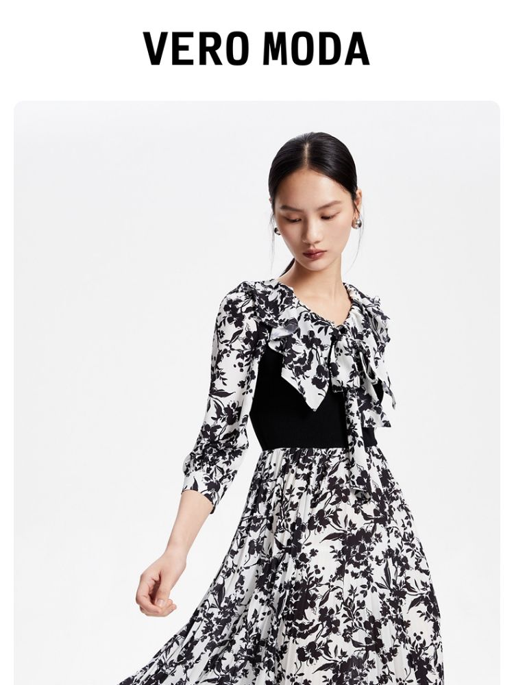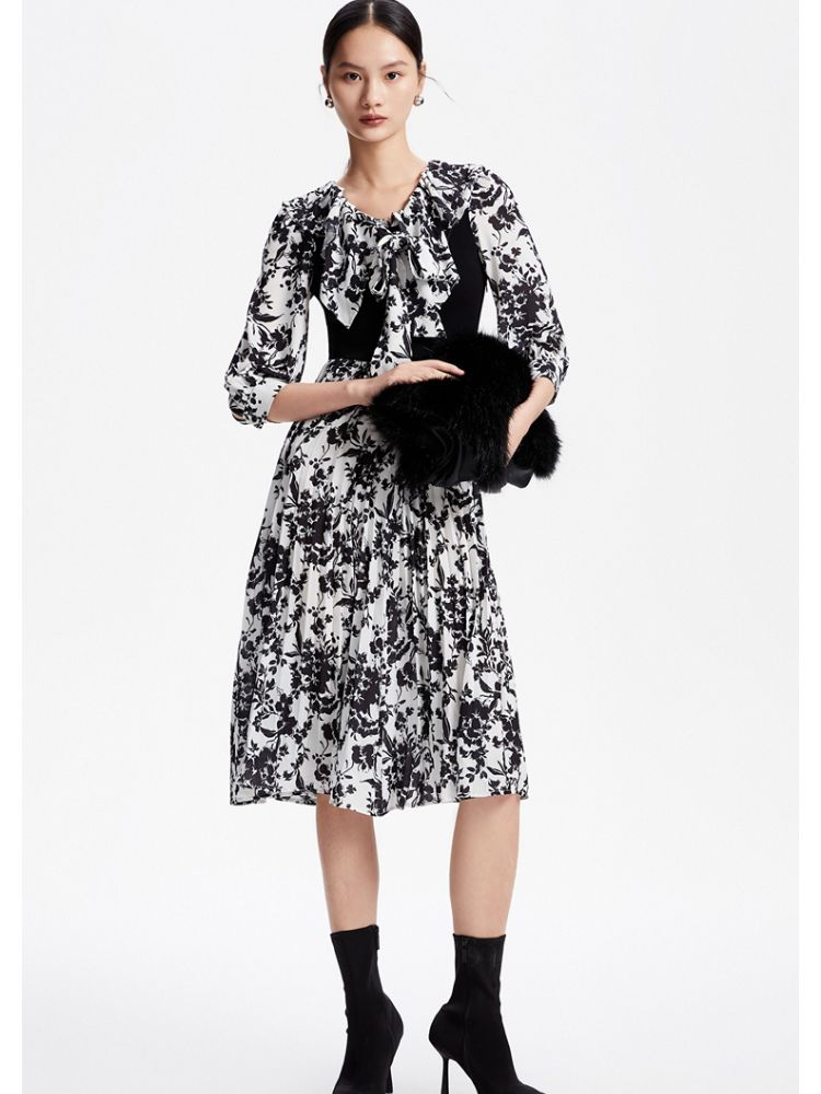 商品名称:【春夏专柜款】优雅时尚七分袖印花连衣裙气质百搭 222865