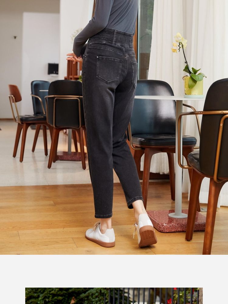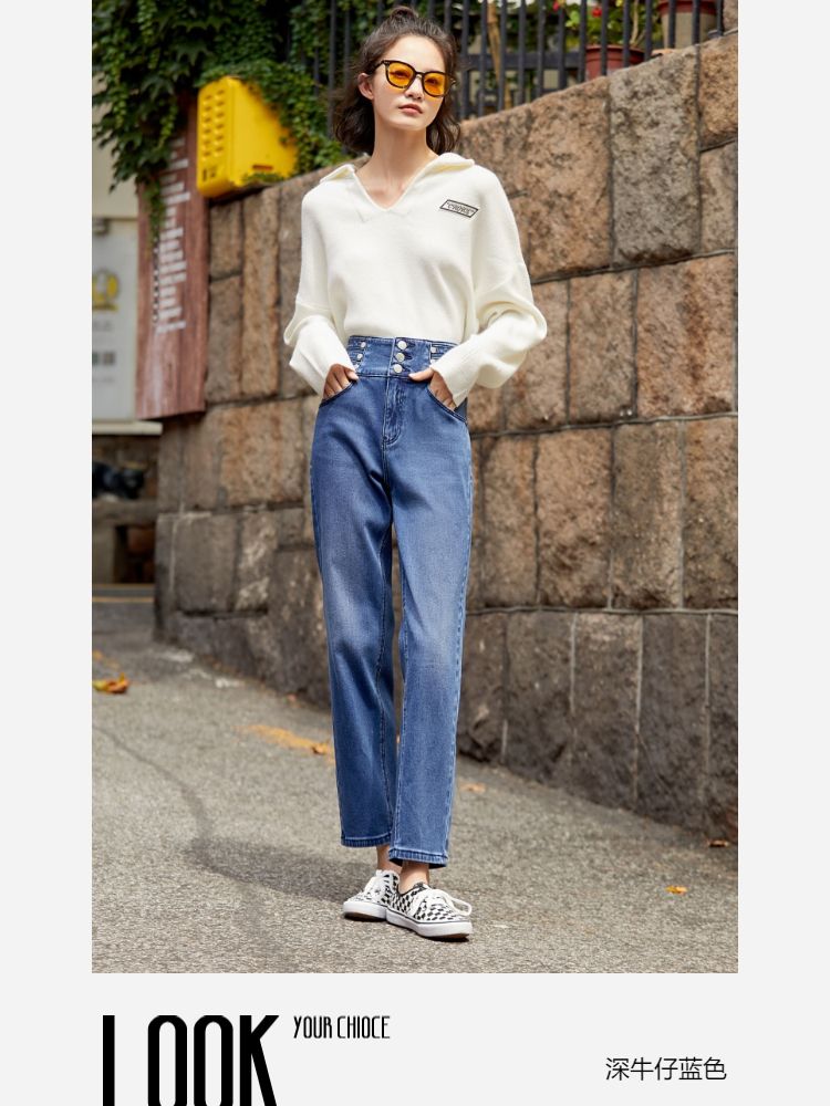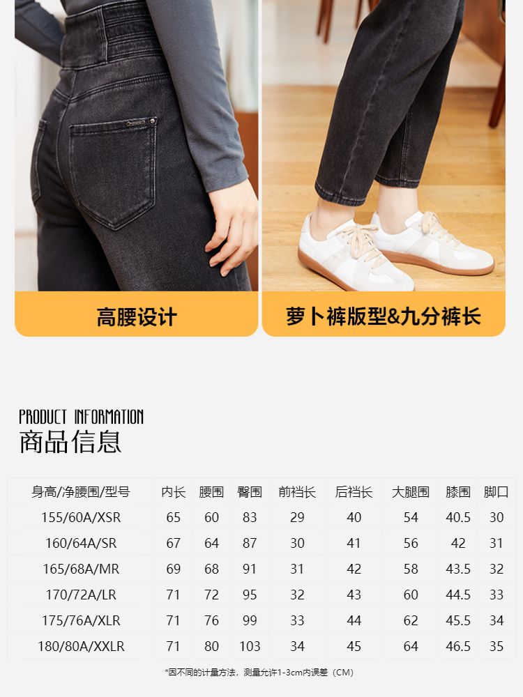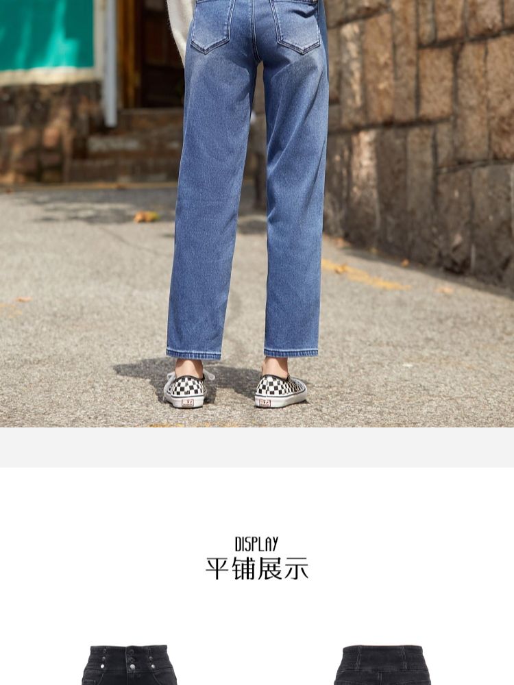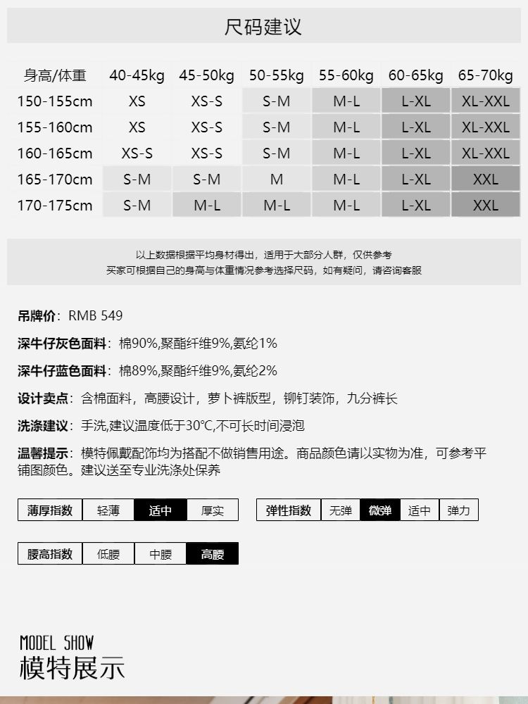 商品名称:【复古九分】牛仔裤春90%含棉高腰萝卜裤时尚九分女 542673