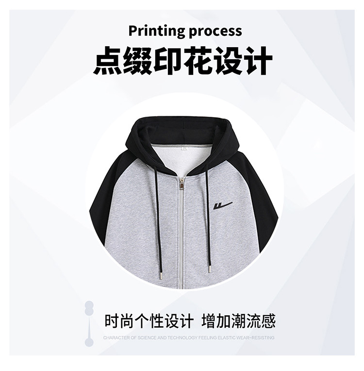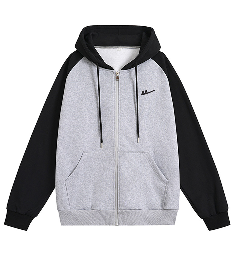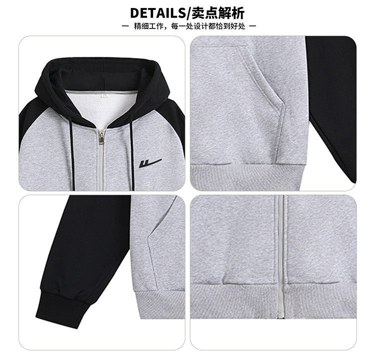 商品名称:运动外套复古撞色插肩袖基础款开衫连帽卫衣男士国潮简约外套男 939155