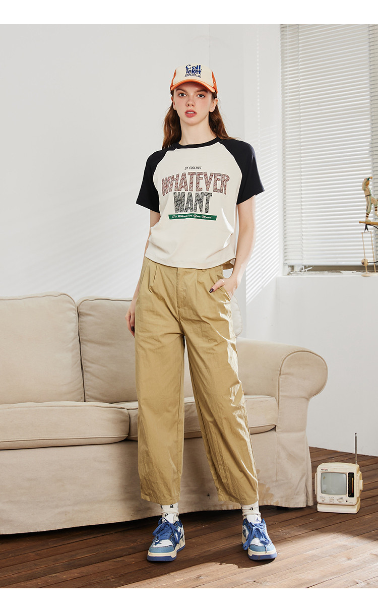 商品名称:多色可选时尚简约女式休闲裤春季纯色九分直筒裤 753821