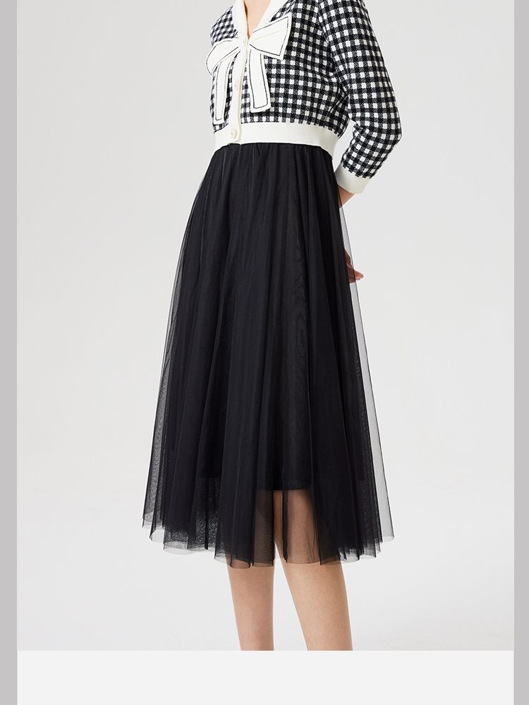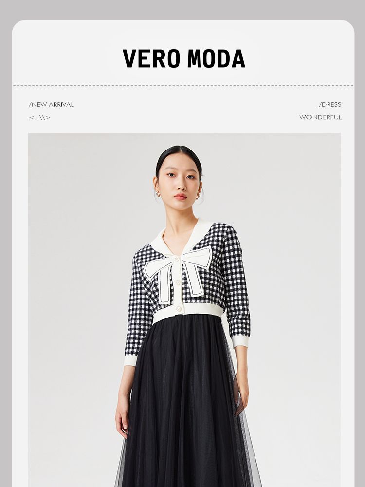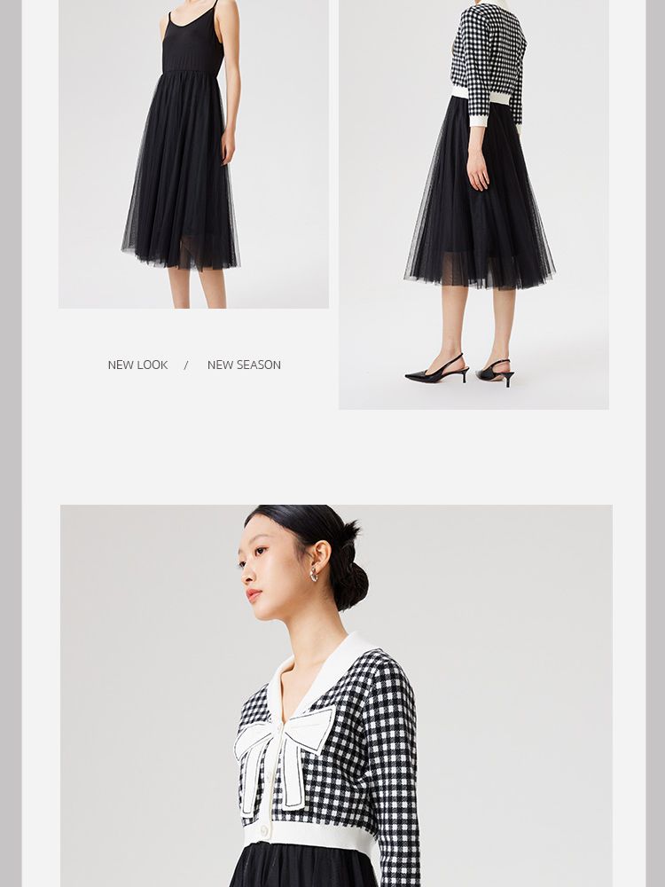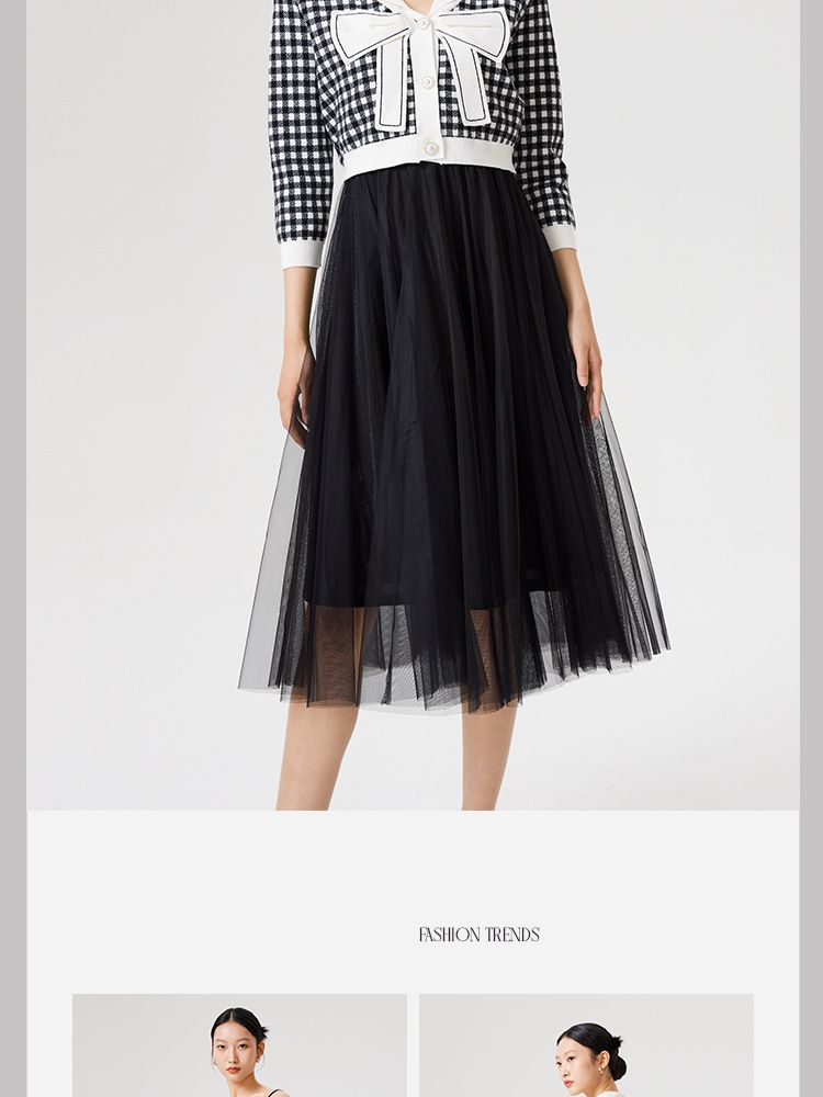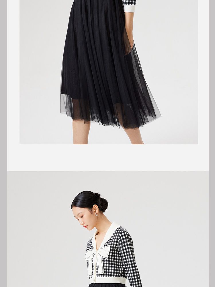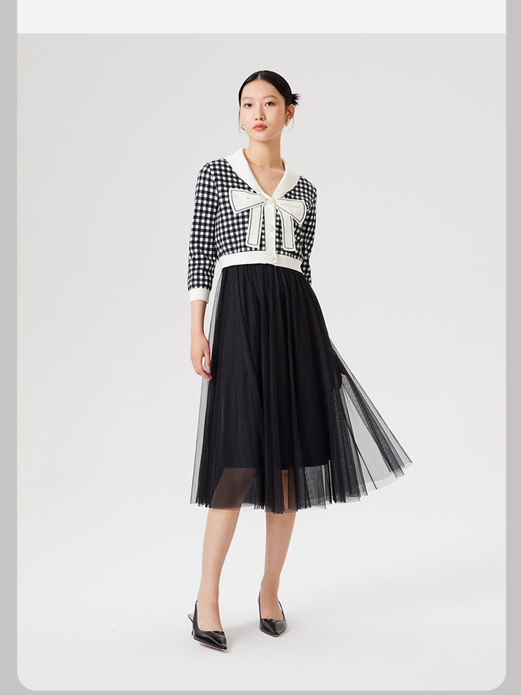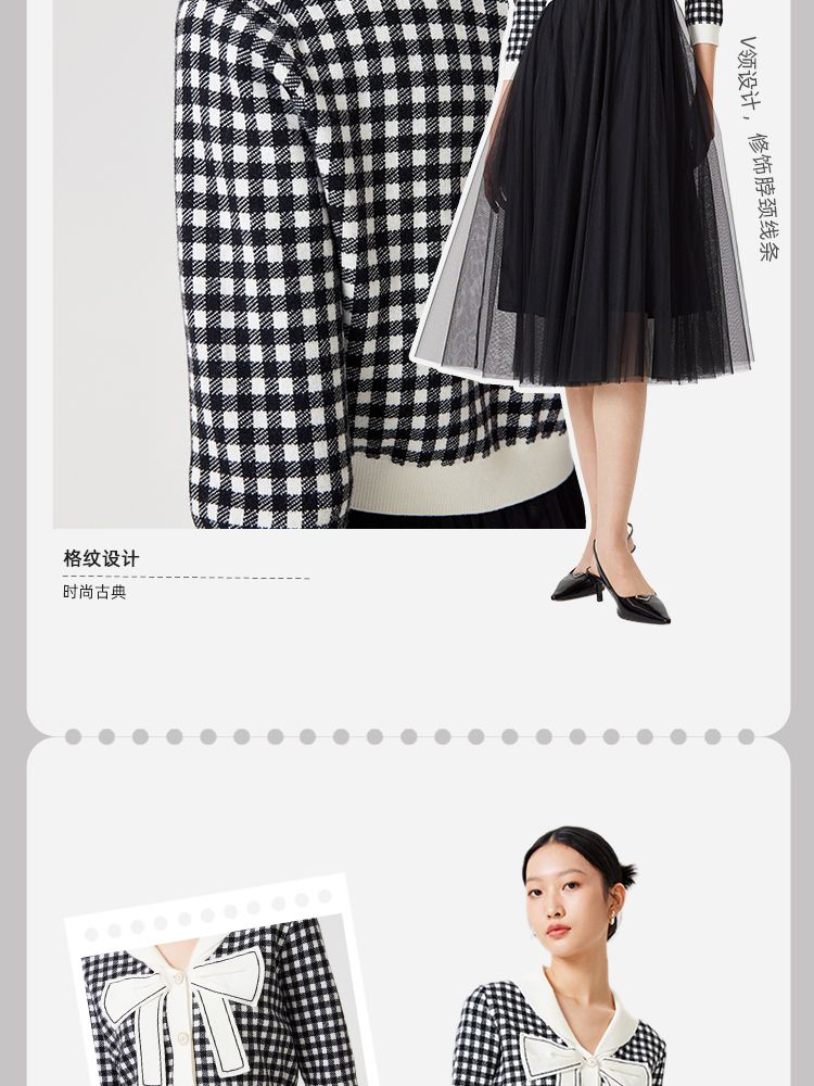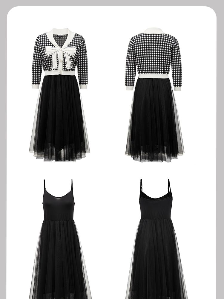 【两件套专柜同款】立体蝴蝶结减龄设计格纹针织连衣裙 999697