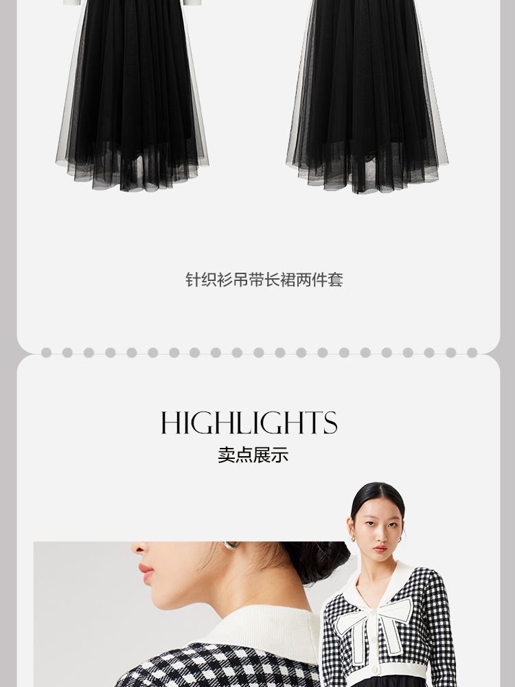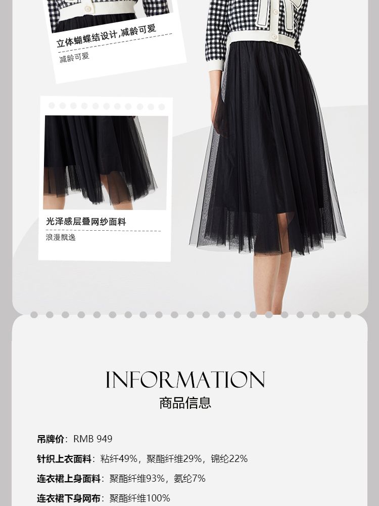 商品名称:【两件套专柜同款】立体蝴蝶结减龄设计格纹针织连衣裙 999697