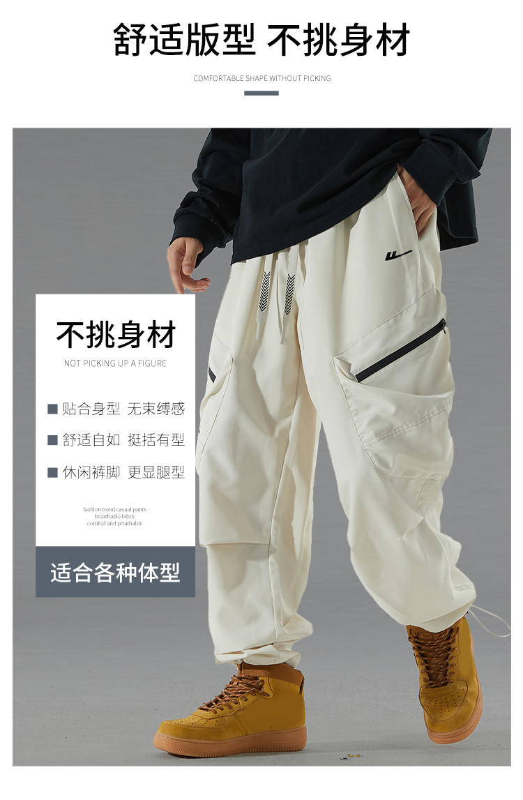 商品名称:青少年运动工装裤男春秋季宽松潮流痞帅工装机能潮伞兵裤休闲长裤 063251