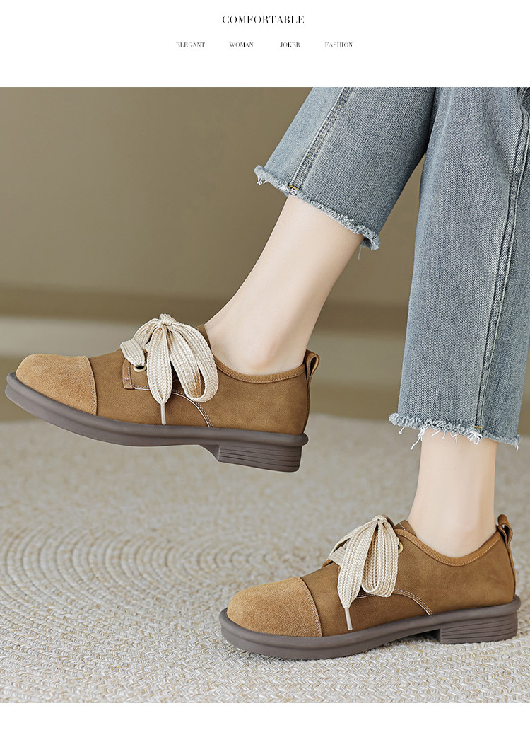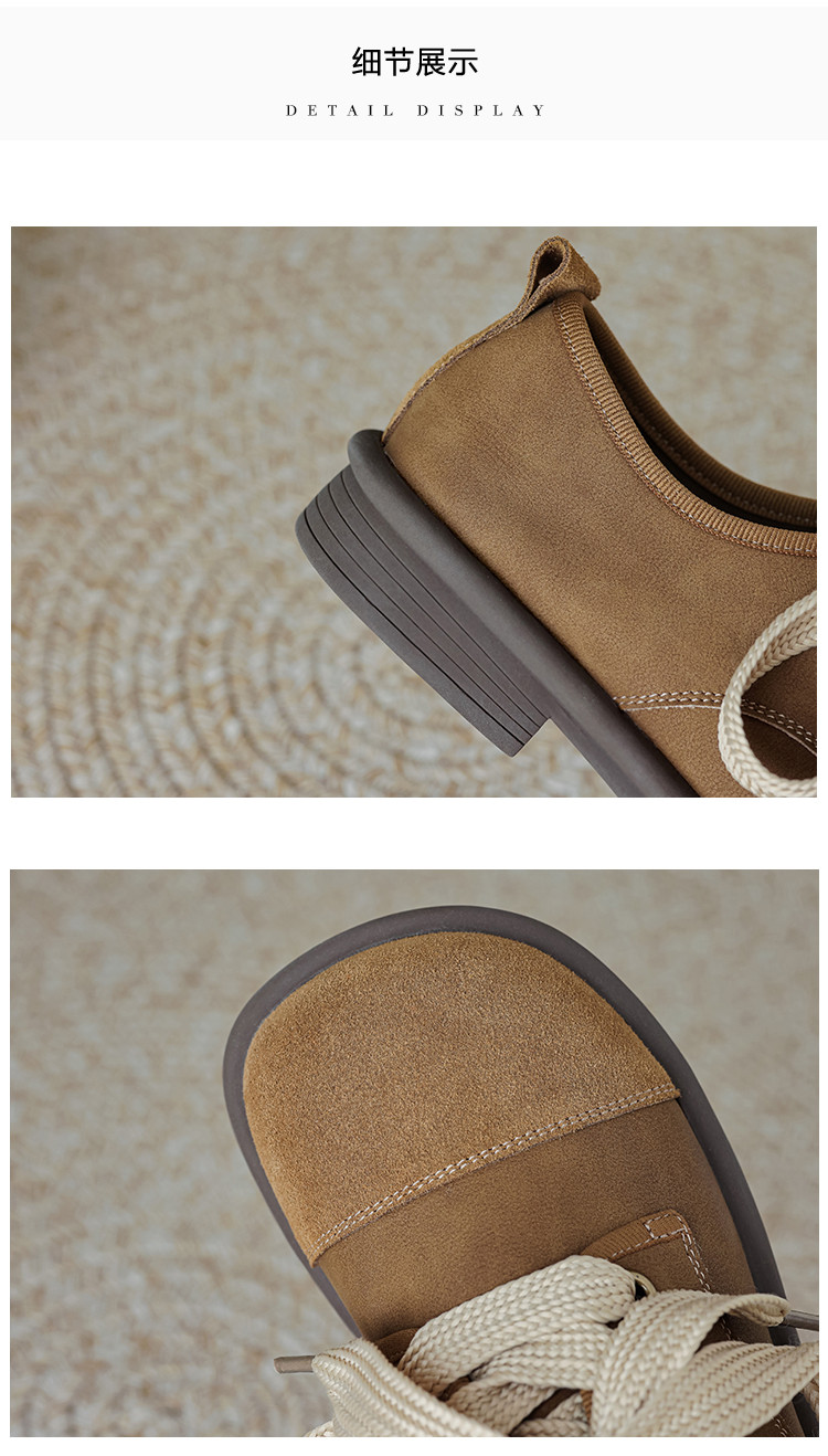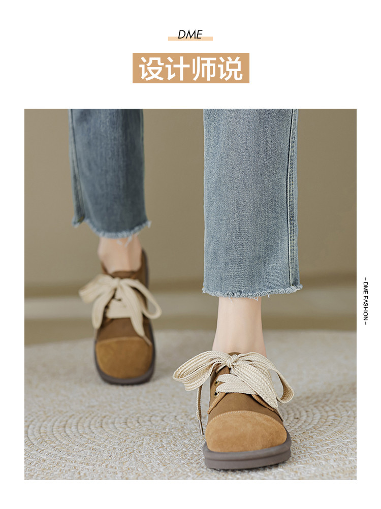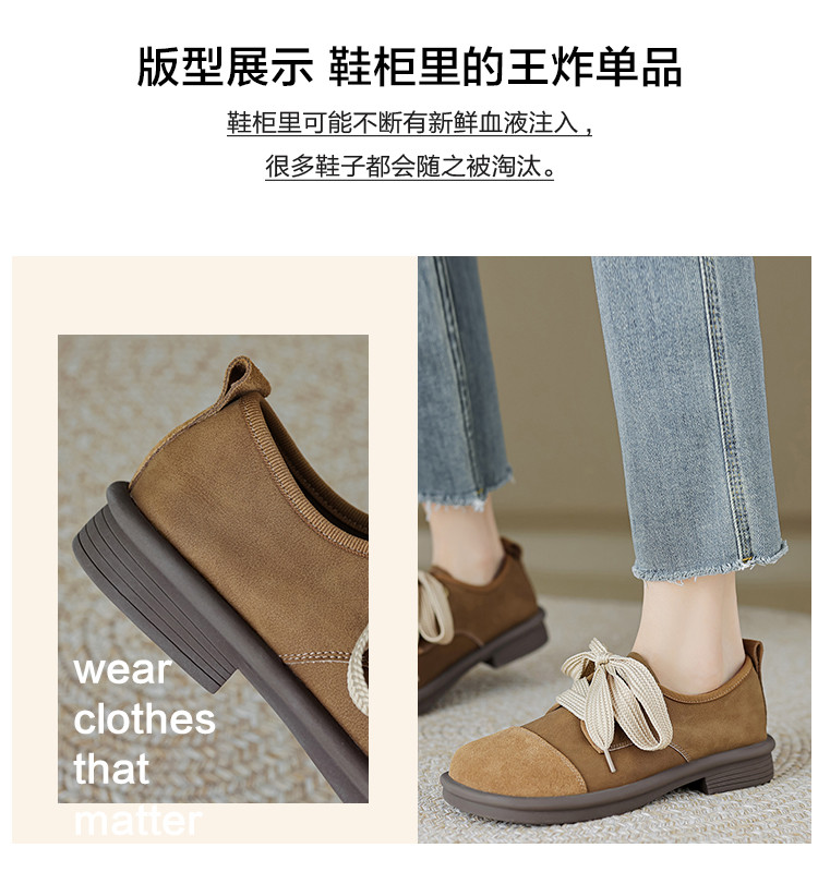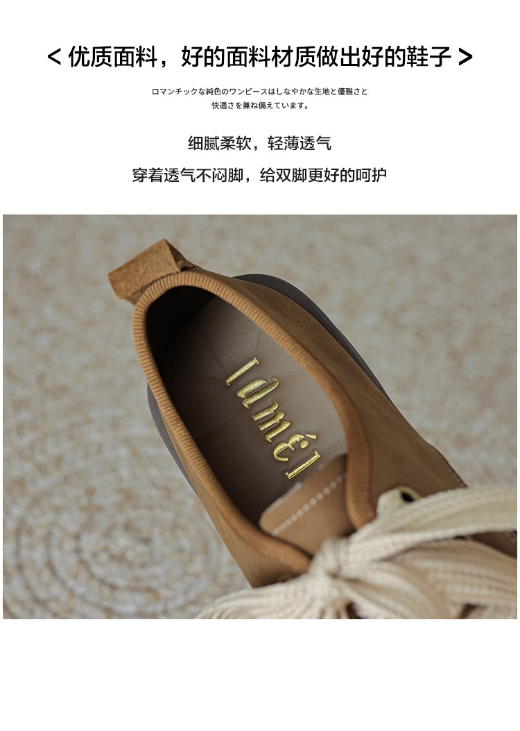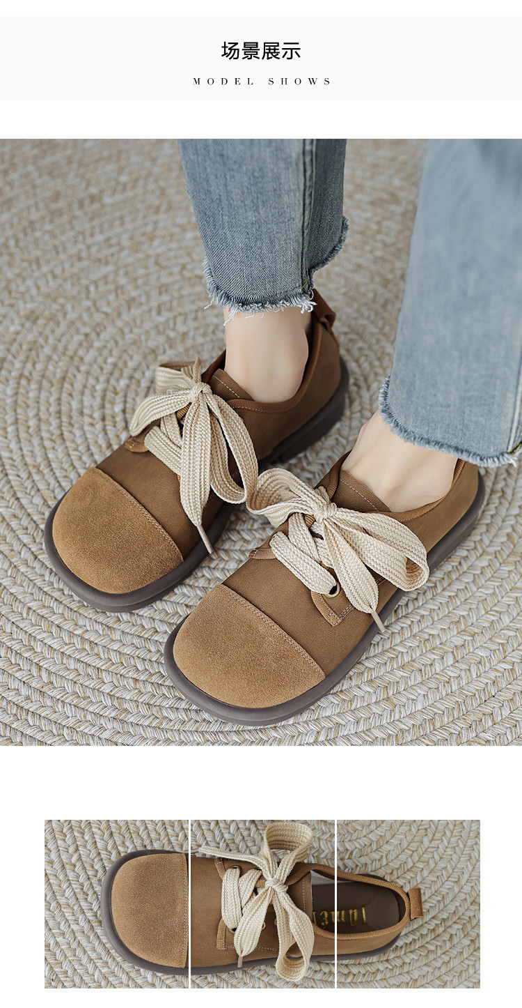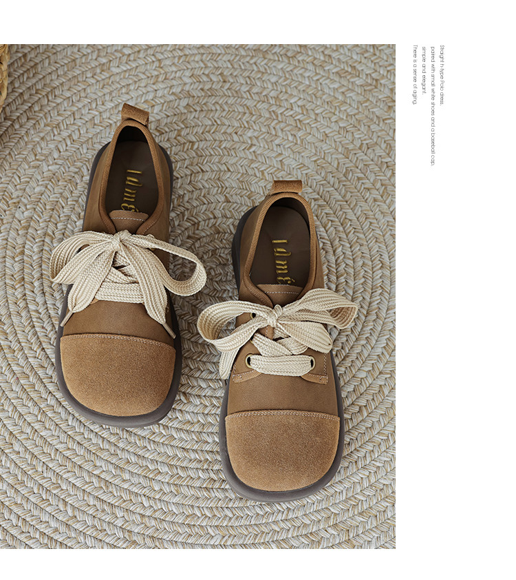 商品名称:春秋潮流复古百搭美拉德风拼接扁鞋带娃娃头女单鞋 281665