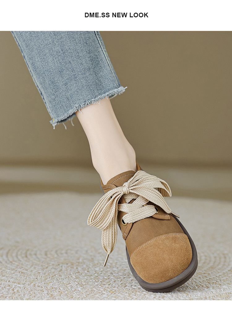 春秋潮流复古百搭美拉德风拼接扁鞋带娃娃头女单鞋 281665