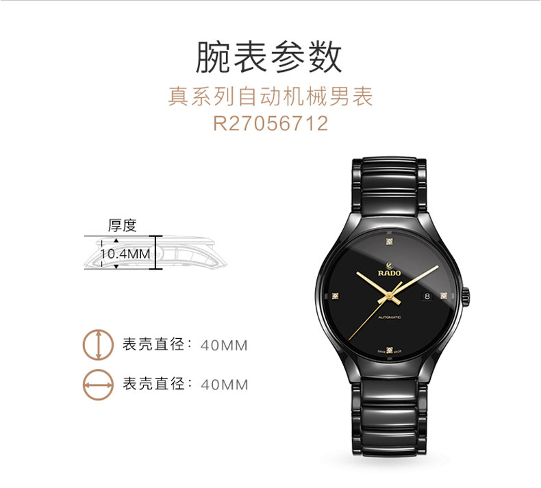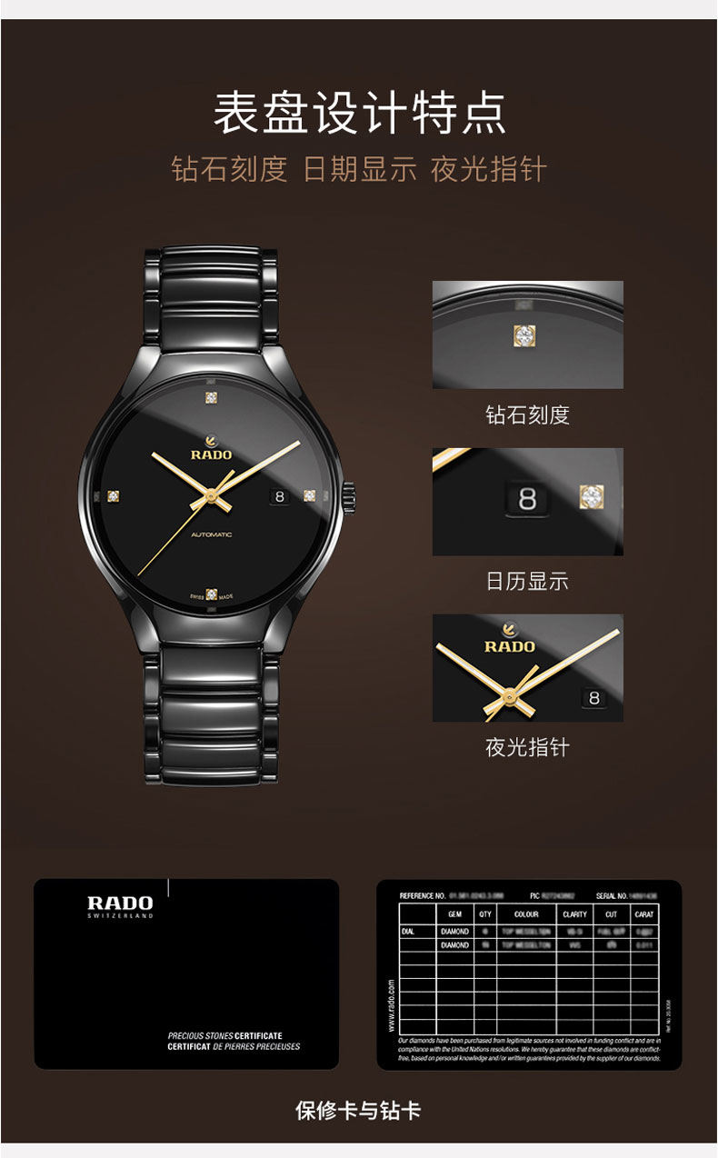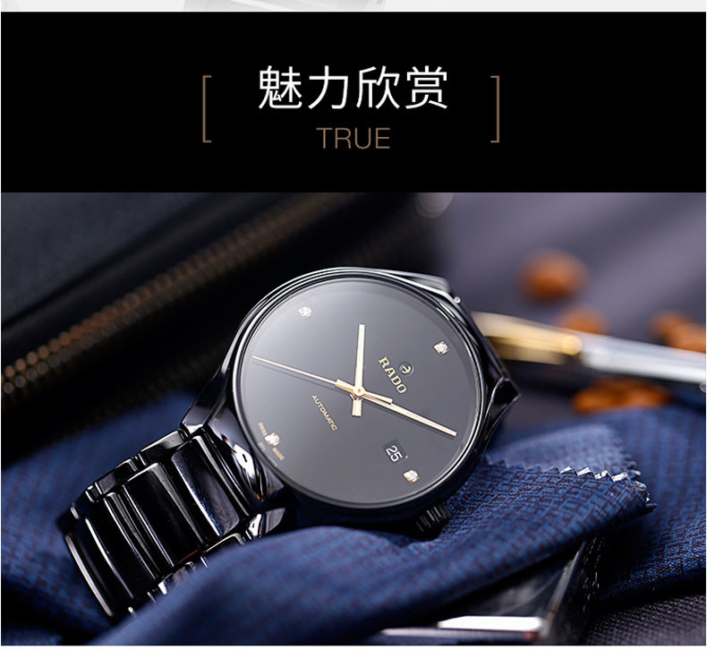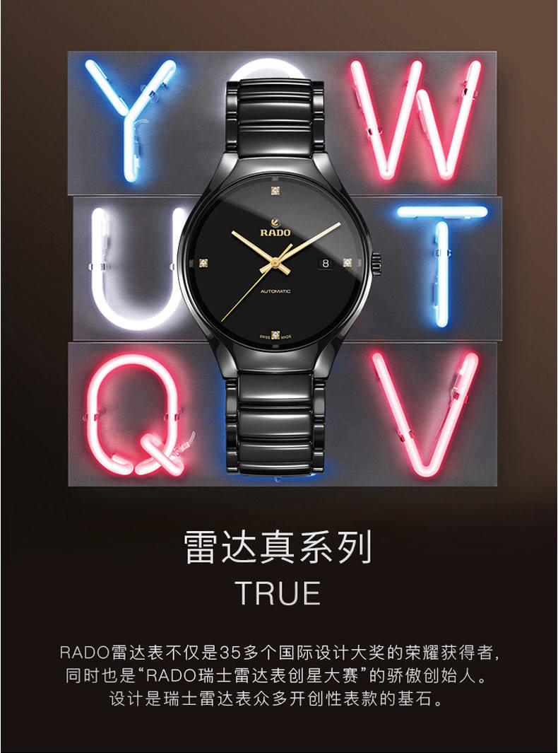 商品名称:雷达RADO 真系列男士高科技陶瓷表带情侣机械钻表 R27056712